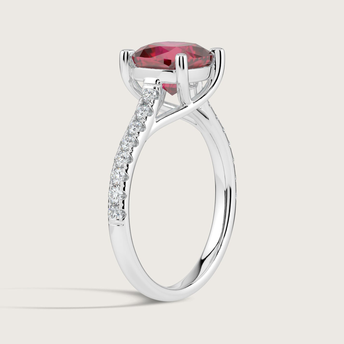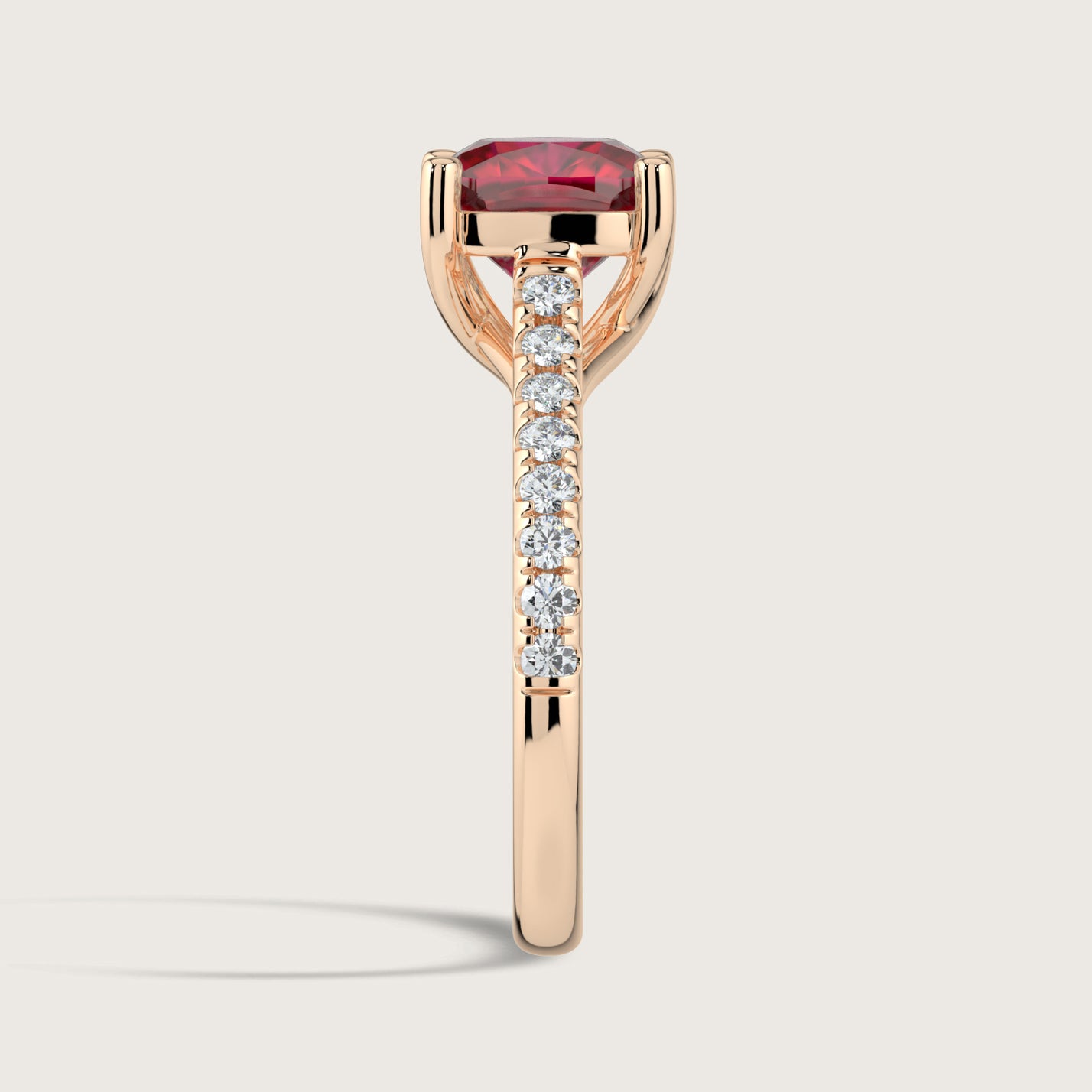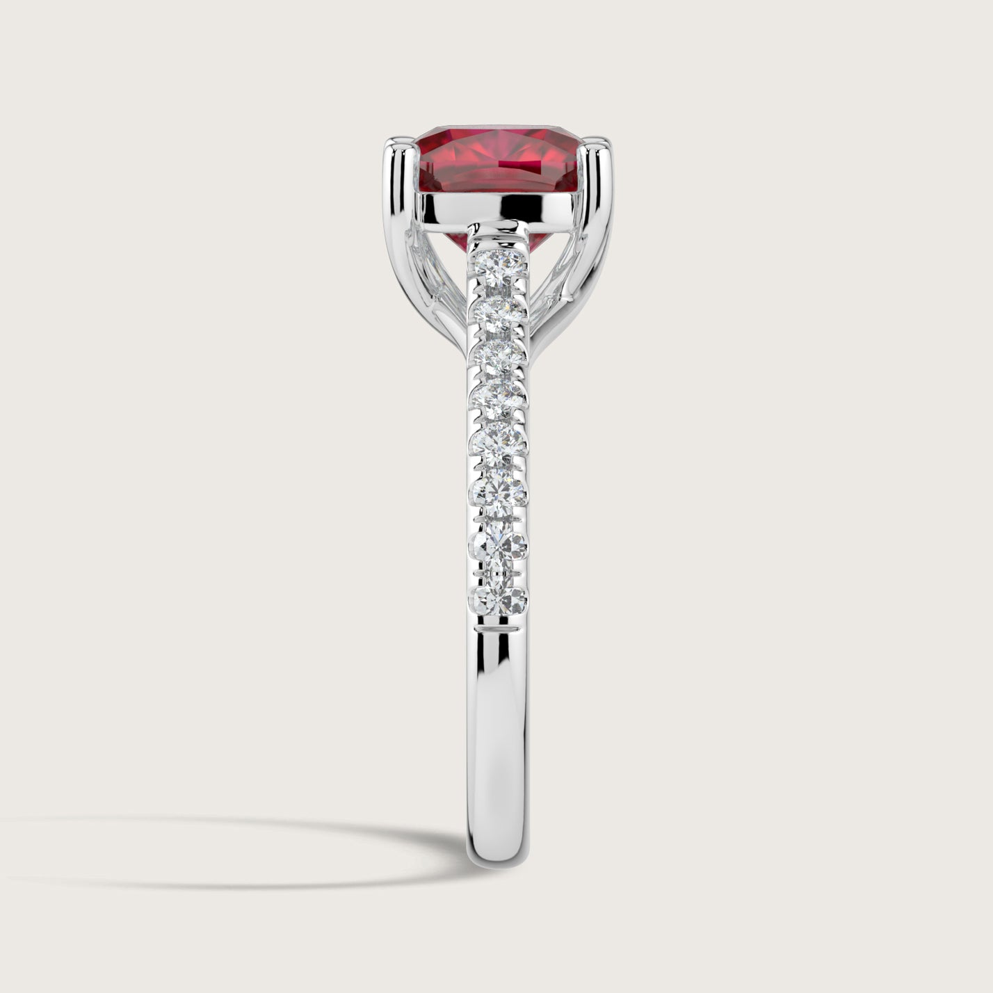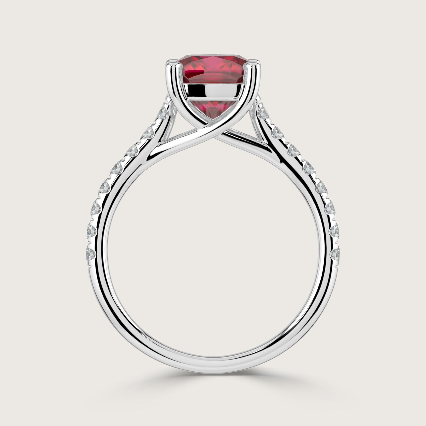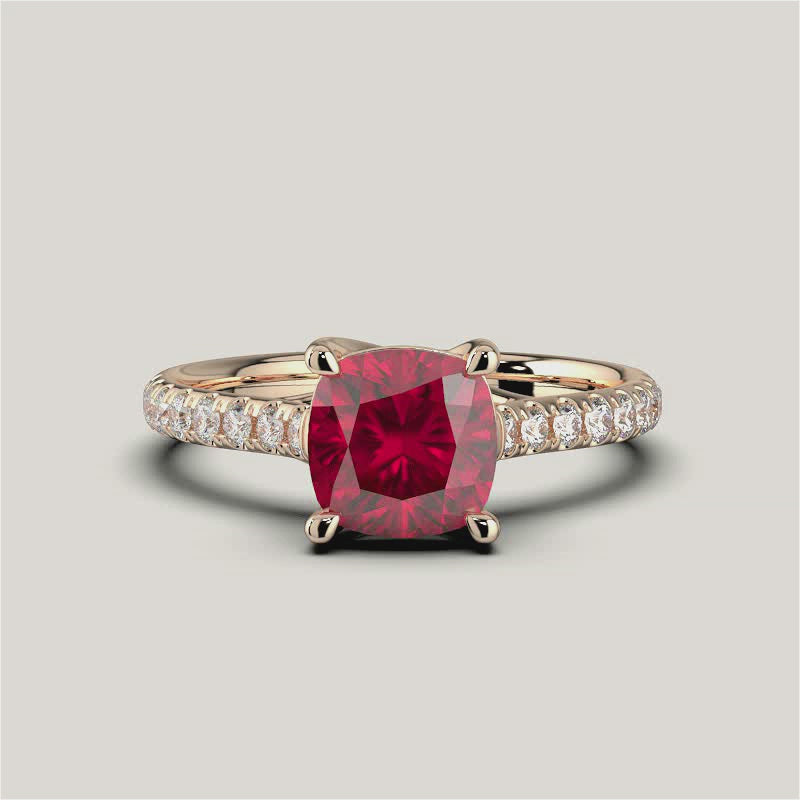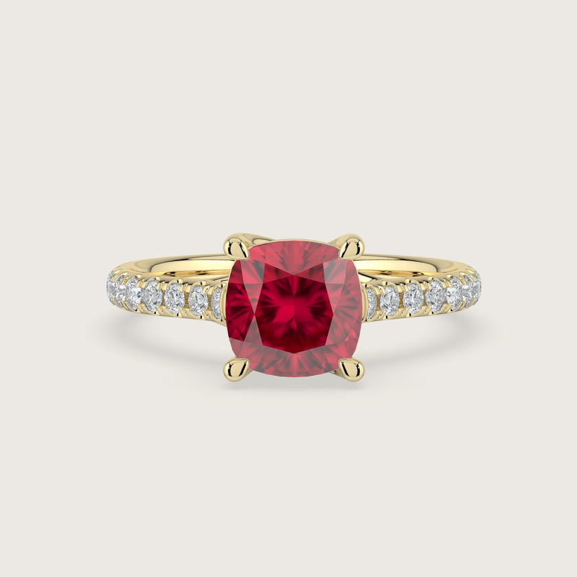 Elizabeth, Cushion Cut Ruby Pavé Ring