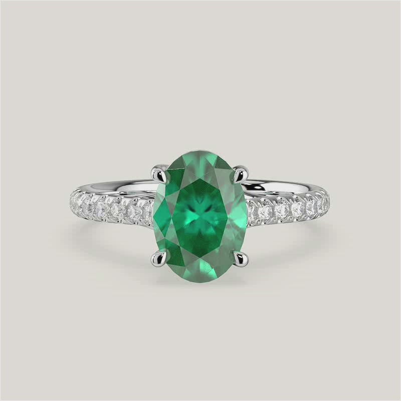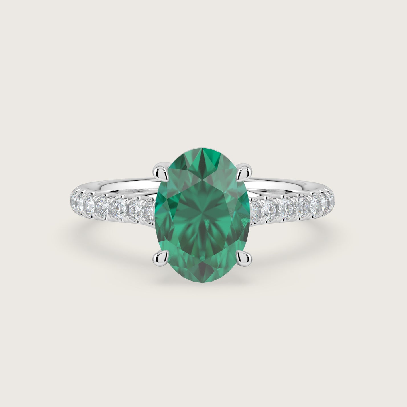 Elizabeth, Oval Cut Emerald Pavé Ring