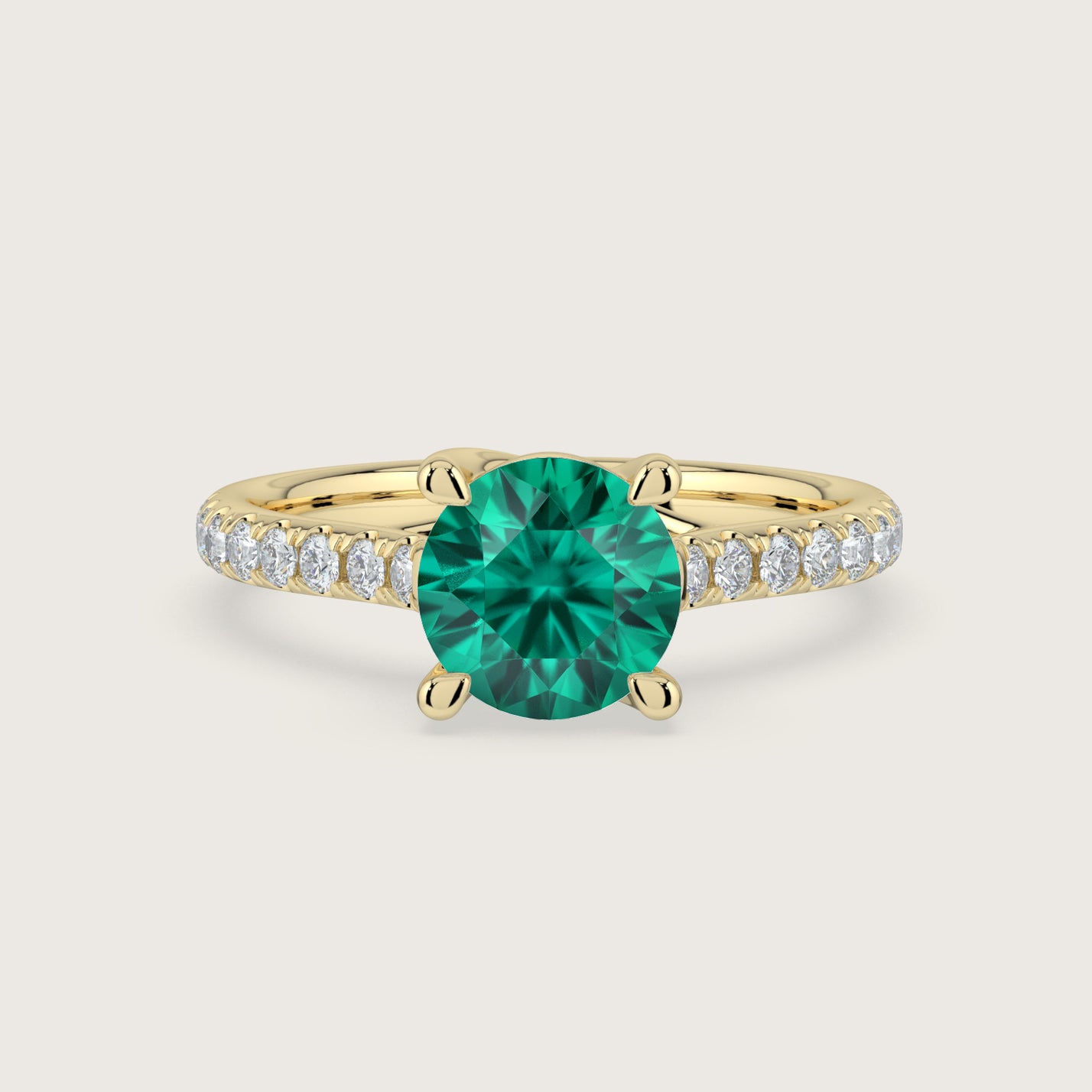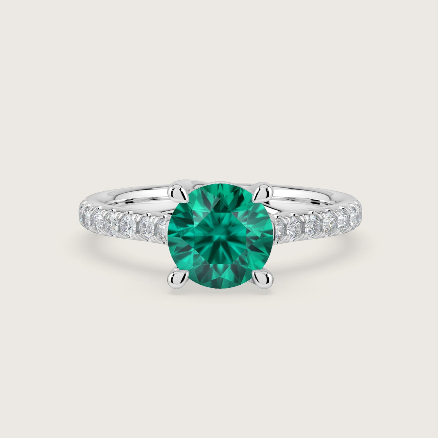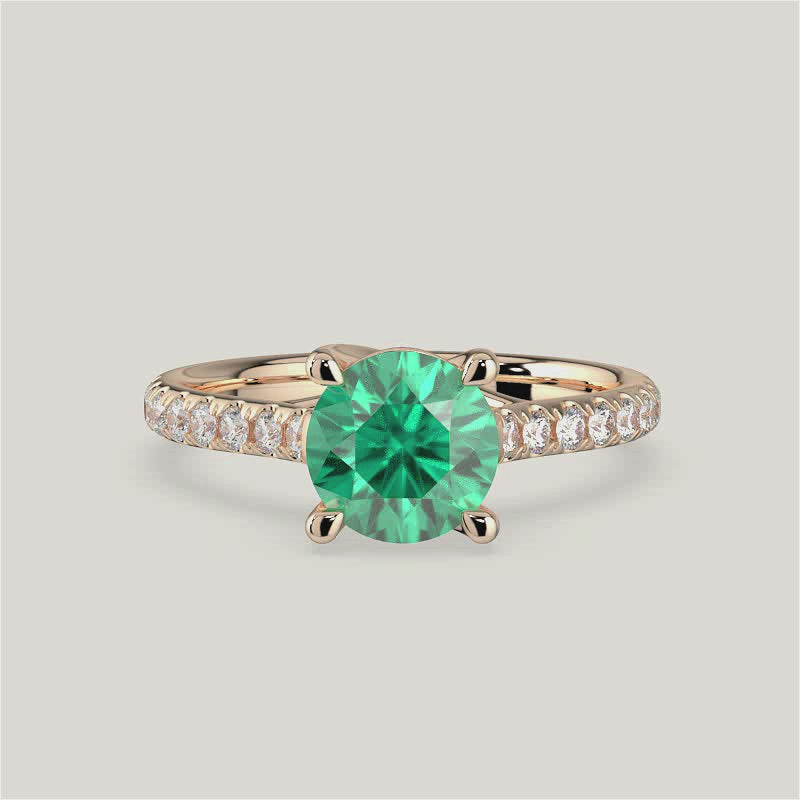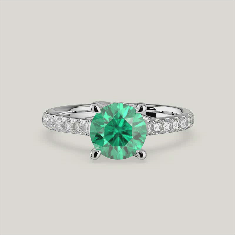 Elizabeth, Round Brilliant Emerald Pavé Ring