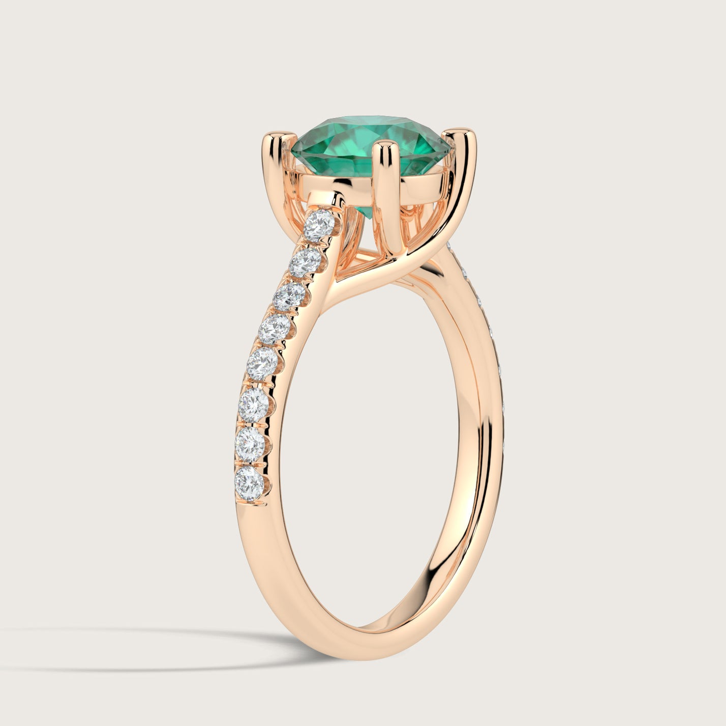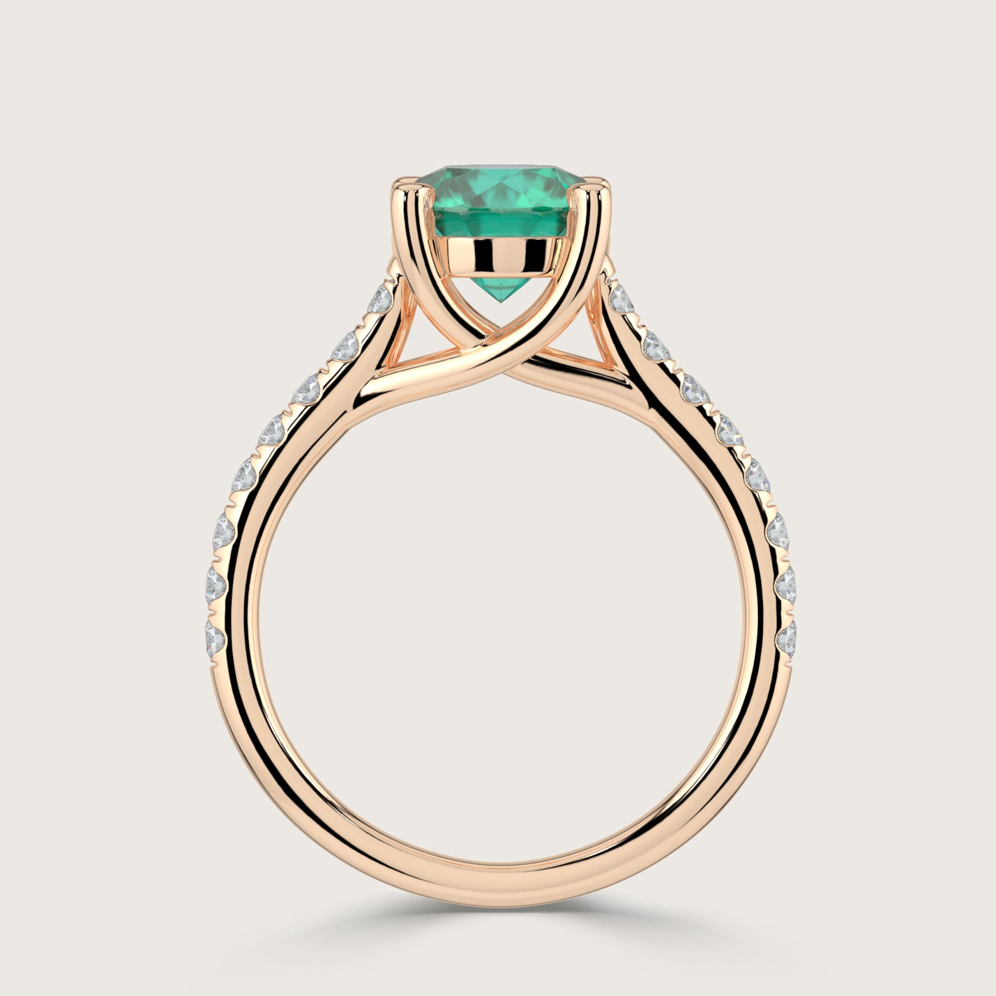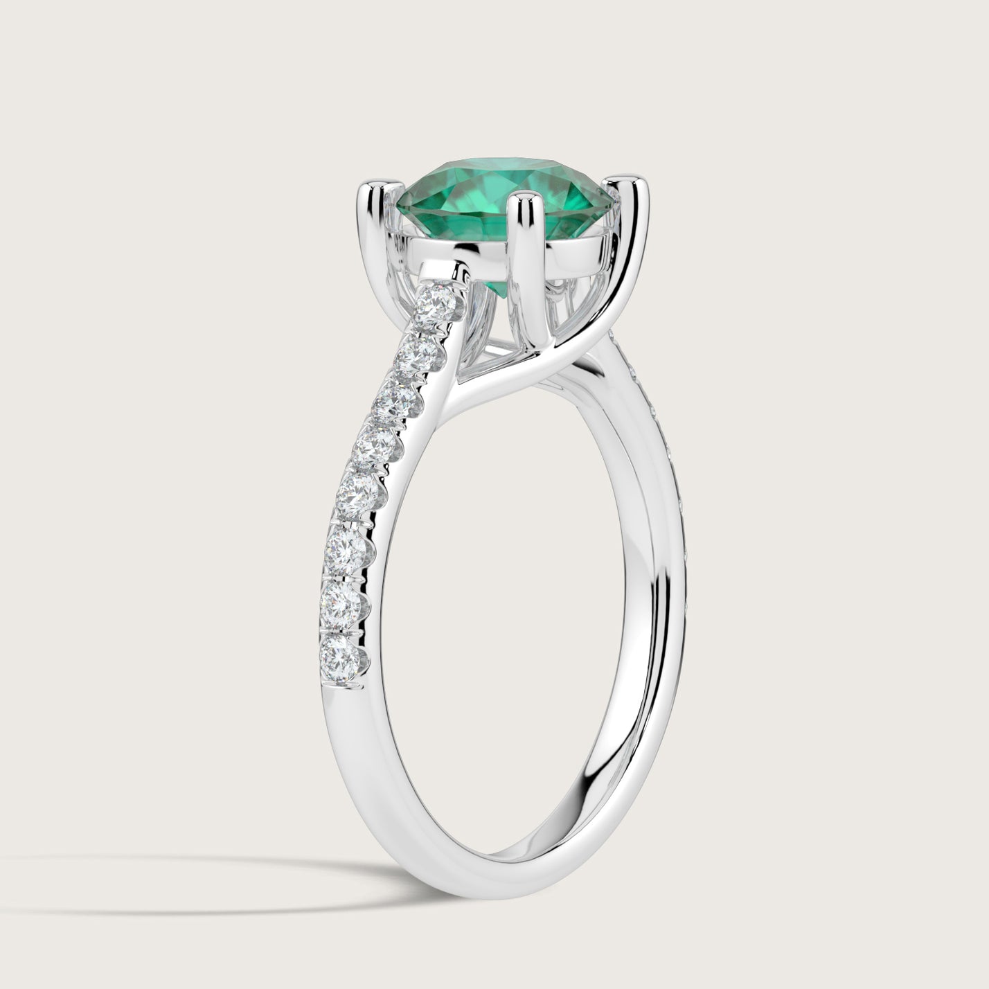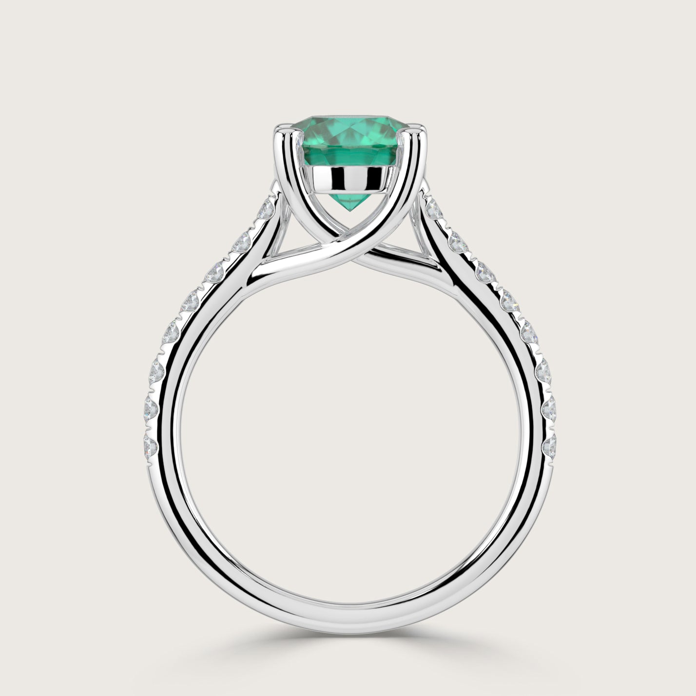 Elizabeth, Round Brilliant Emerald Pavé Ring