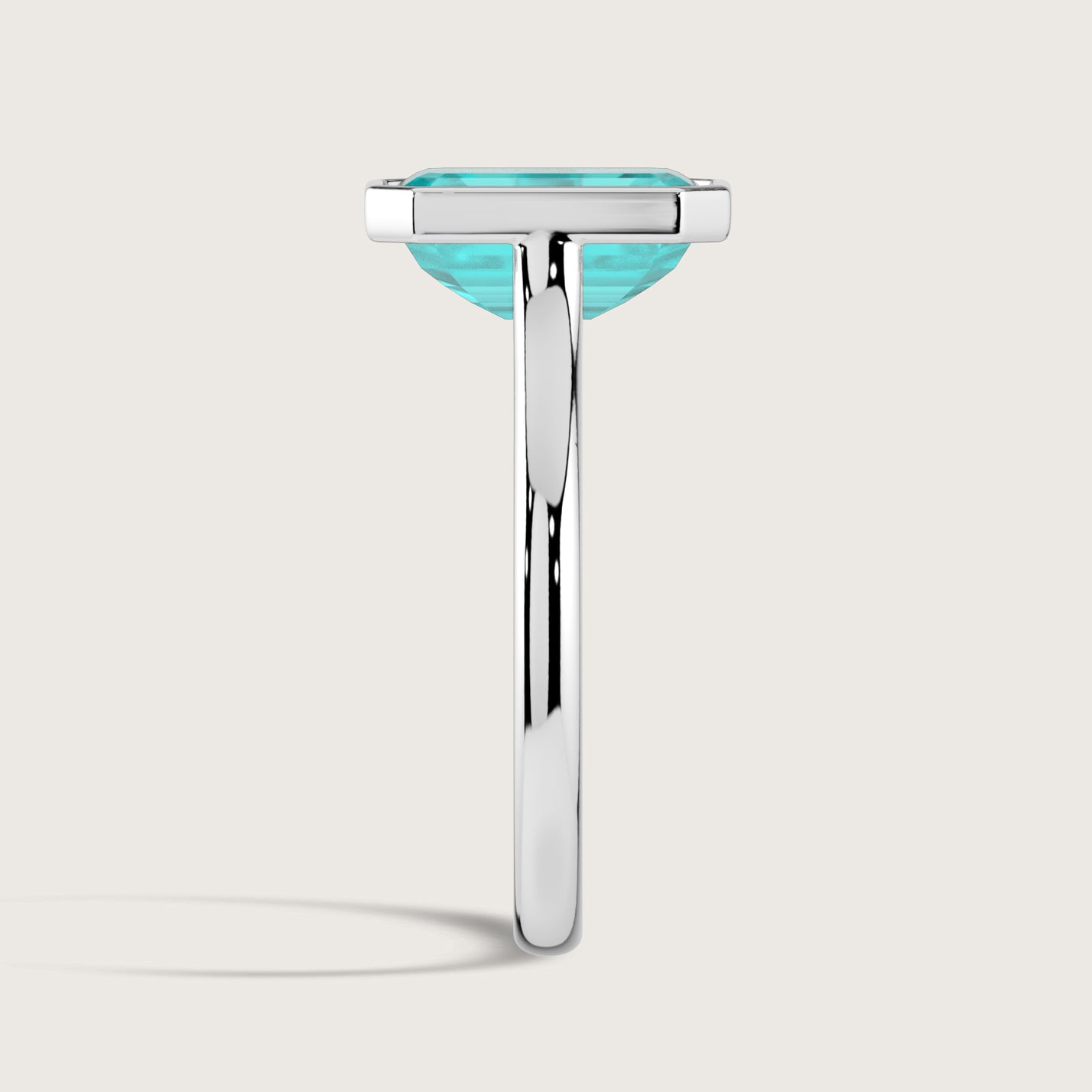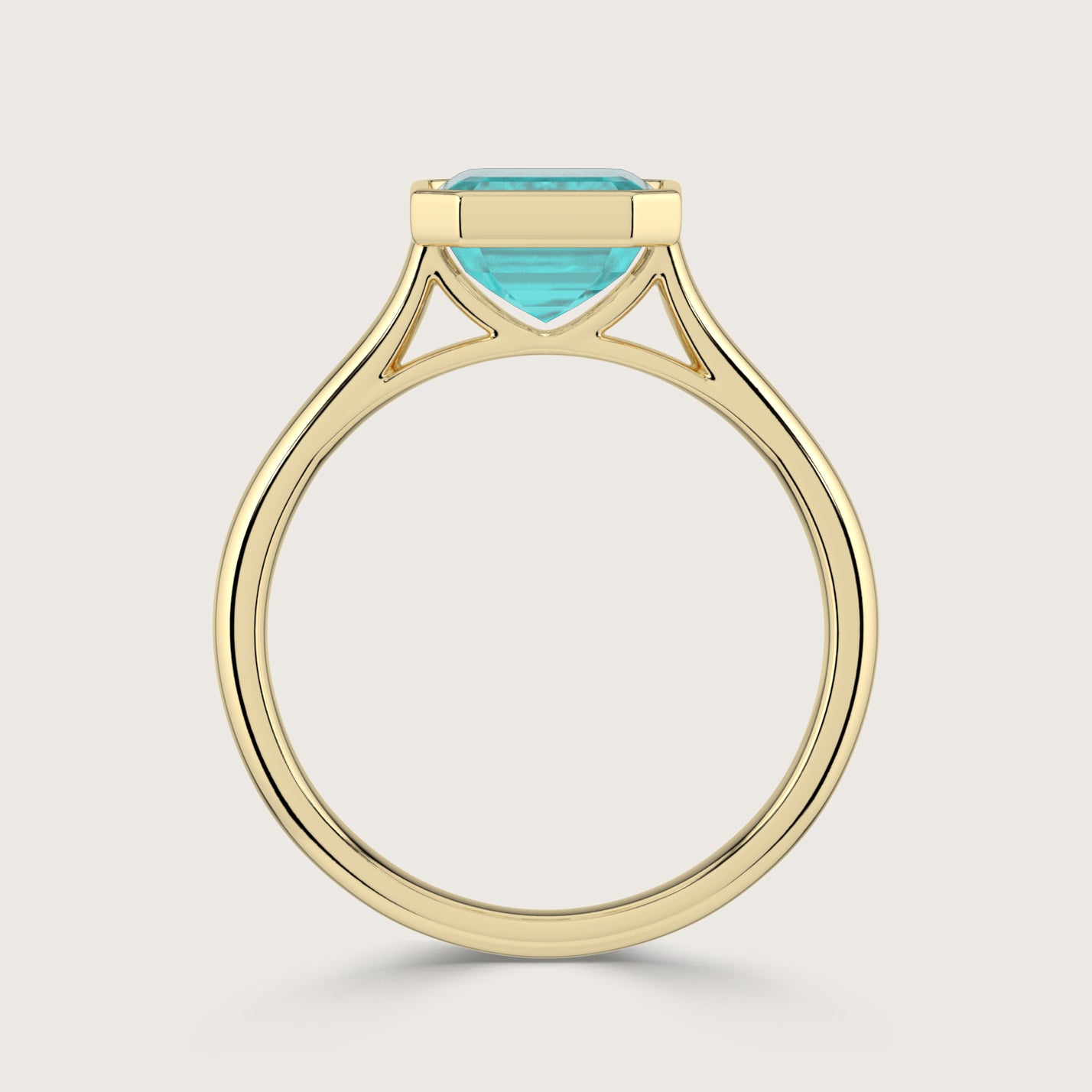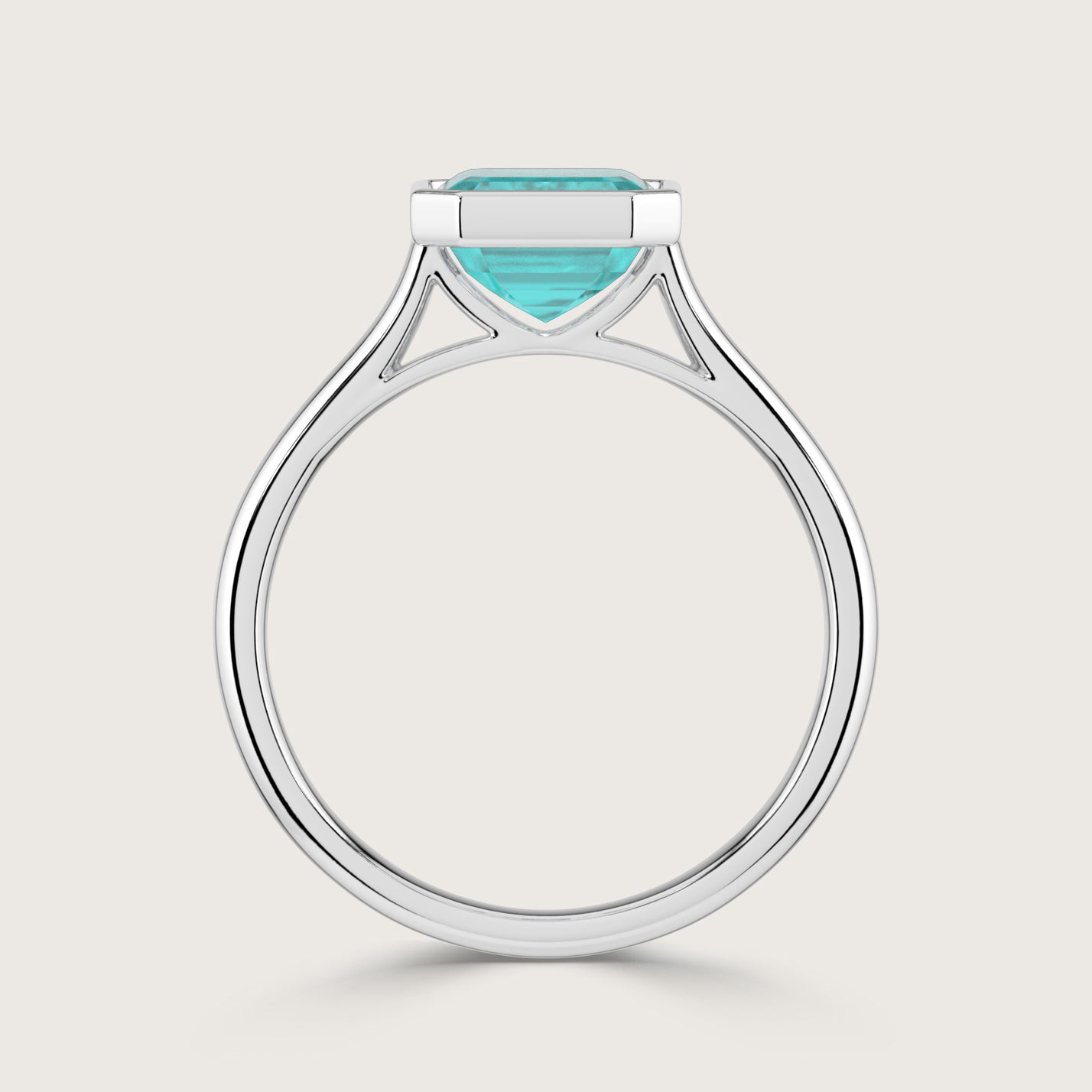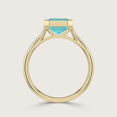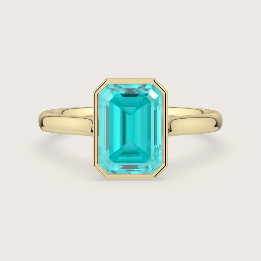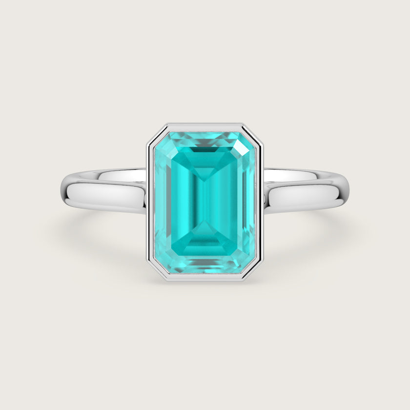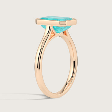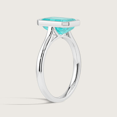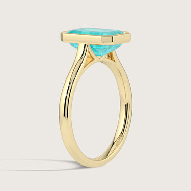 Ellie, Bezel Set Emerald Cut Paraiba Solitaire Ring