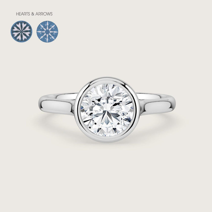 Ellie, Bezel Set Hearts & Arrows Diamond Solitaire Ring