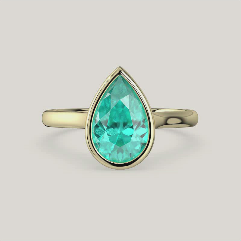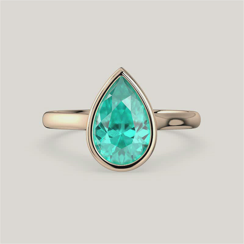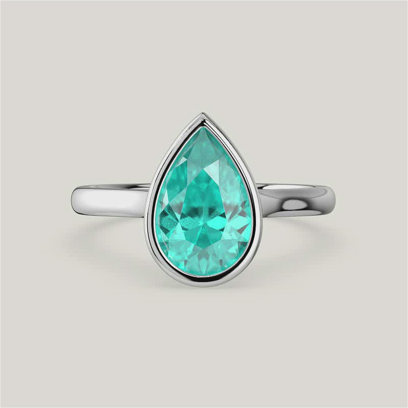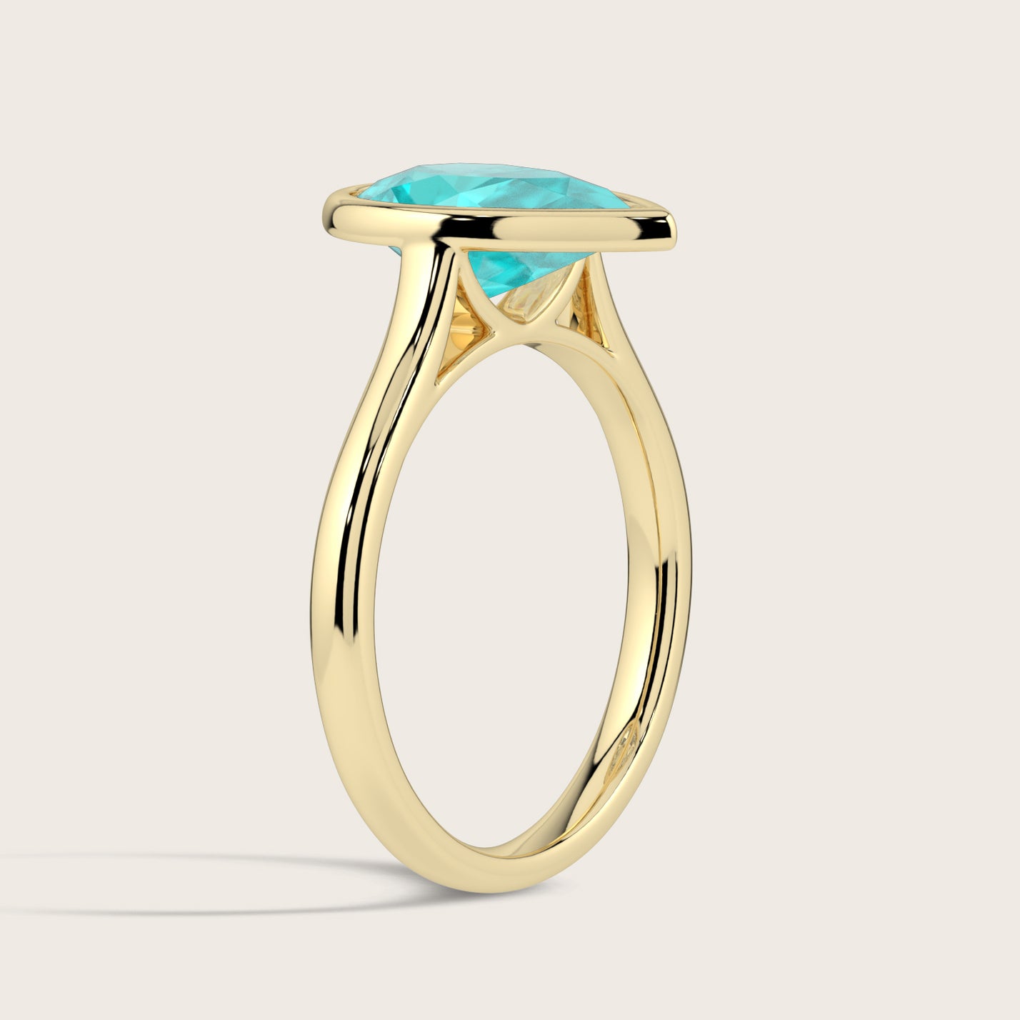 Ellie, Bezel Set Pear Cut Paraiba Solitaire Ring