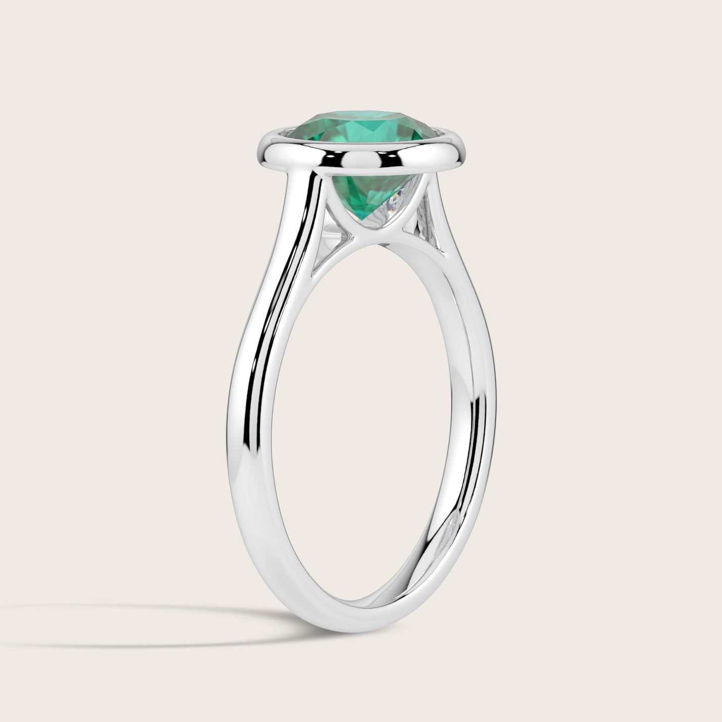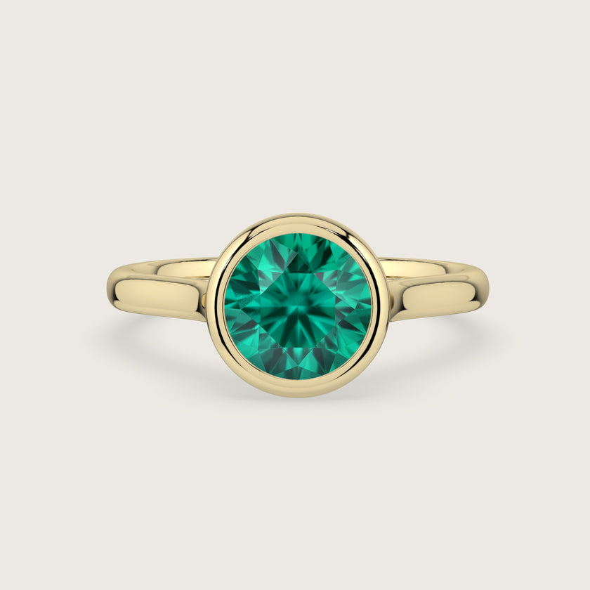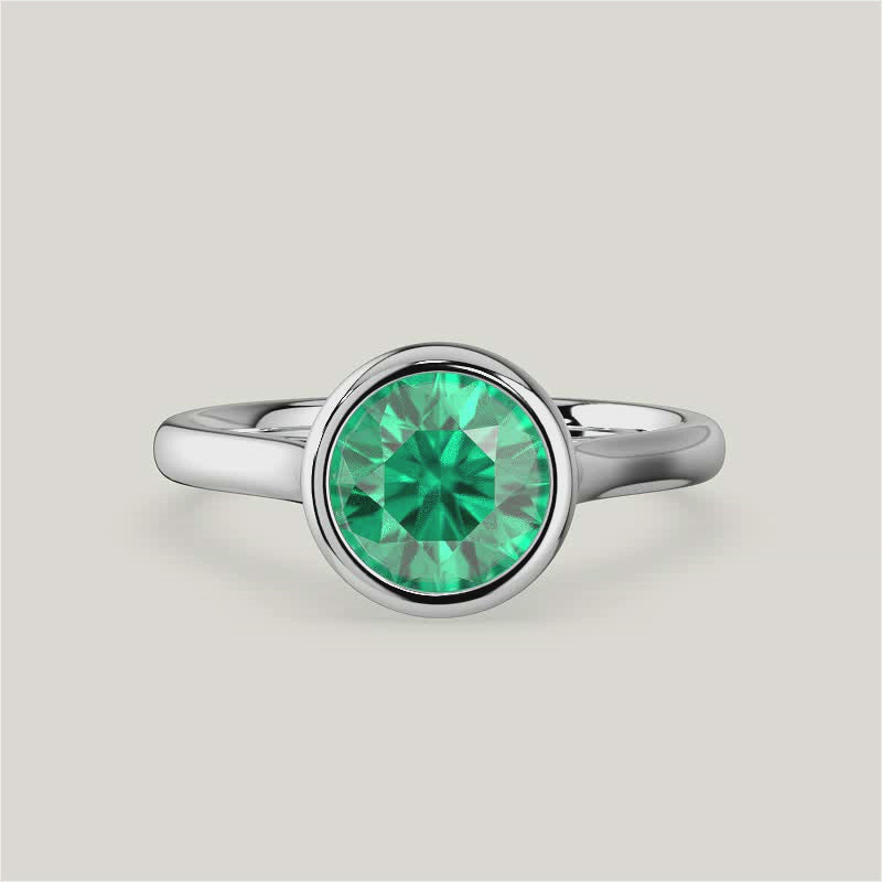 Ellie, Bezel Set Round Brilliant Emerald Solitaire Ring