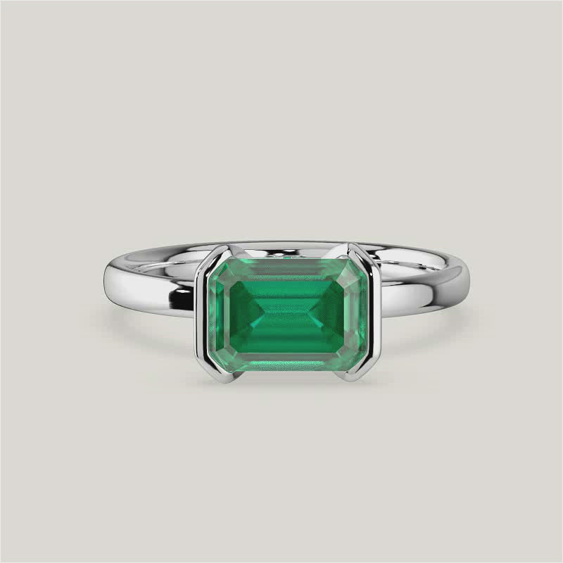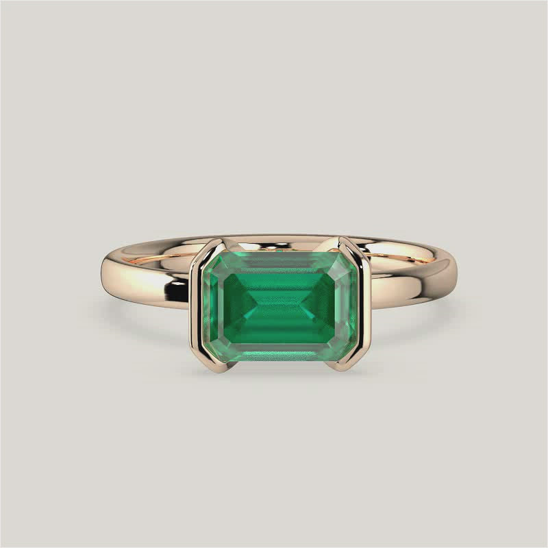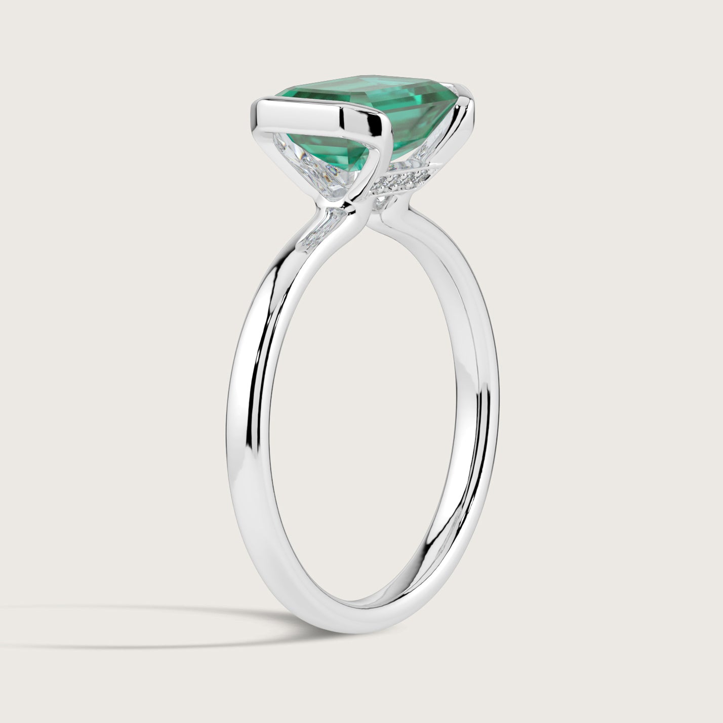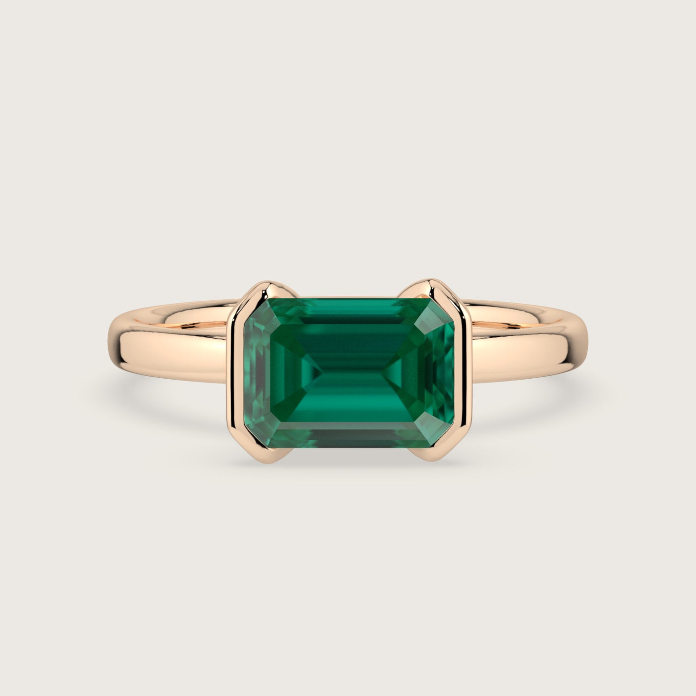 Ellis, Half Bezel Emerald Cut Emerald Solitaire Ring