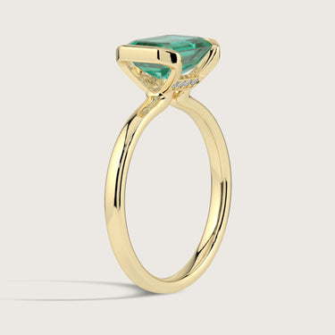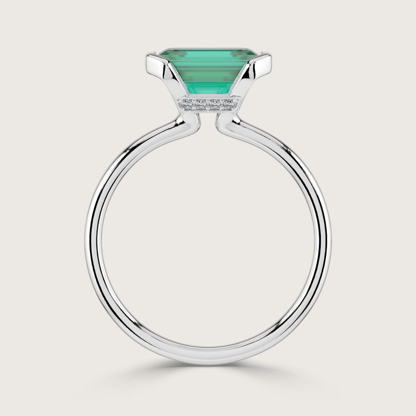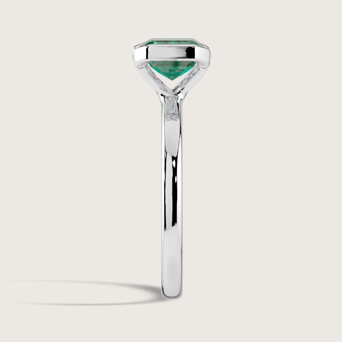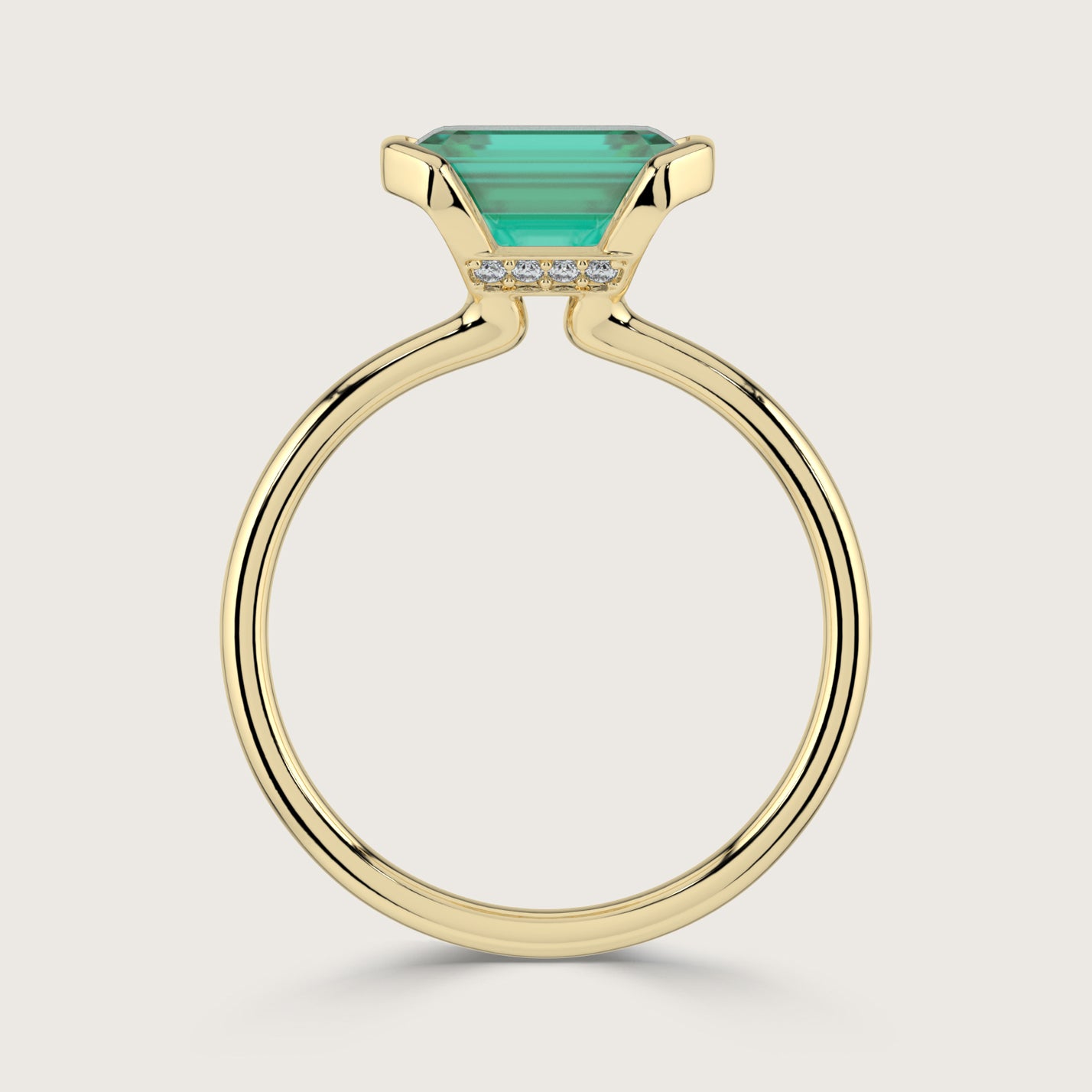 Ellis, Half Bezel Emerald Cut Emerald Solitaire Ring