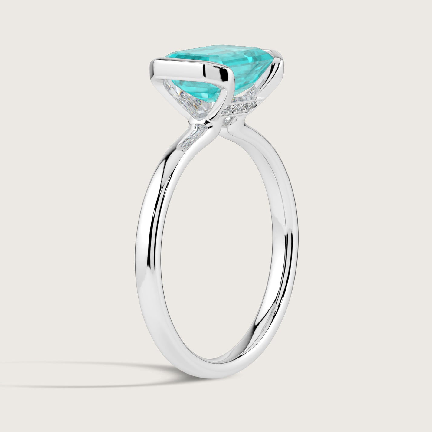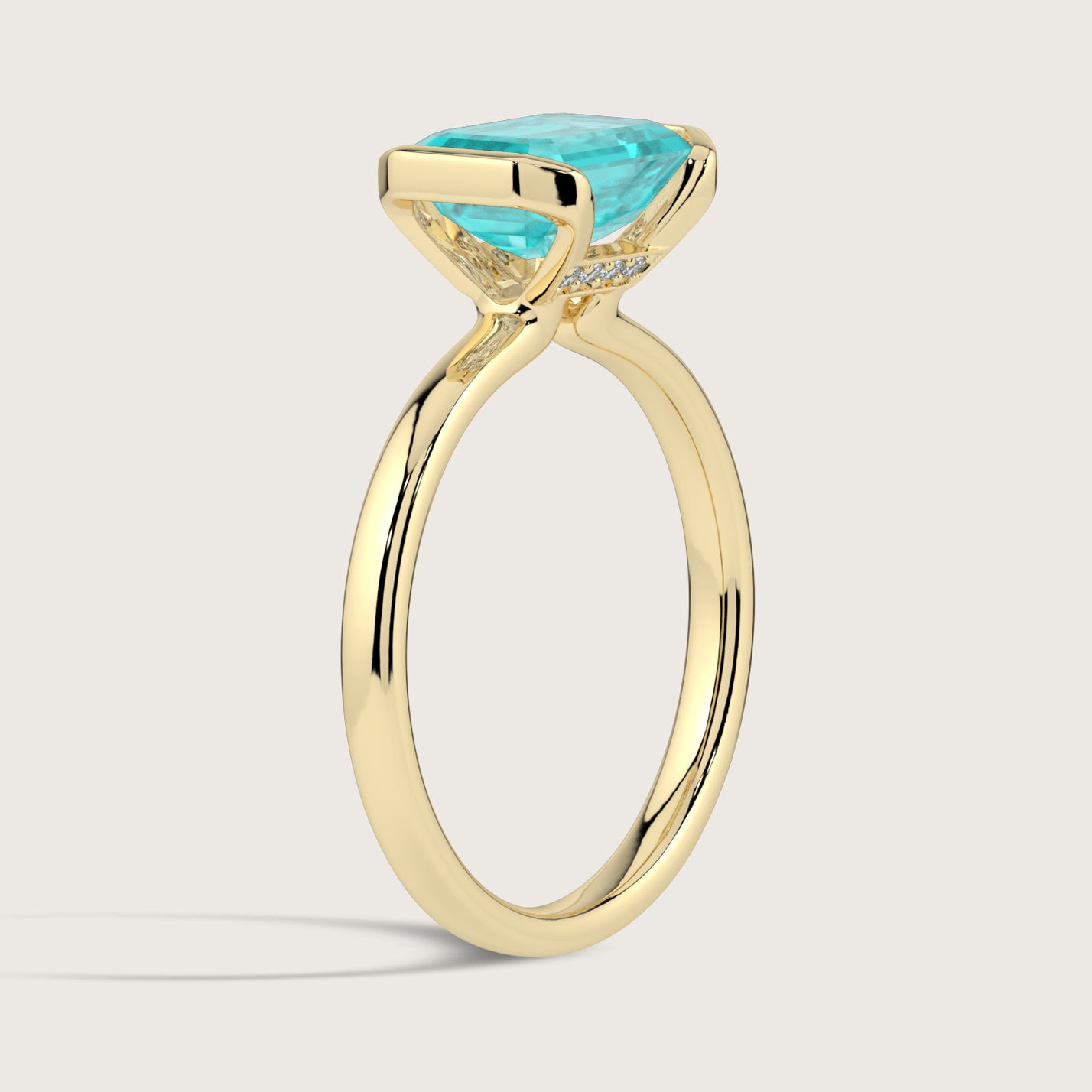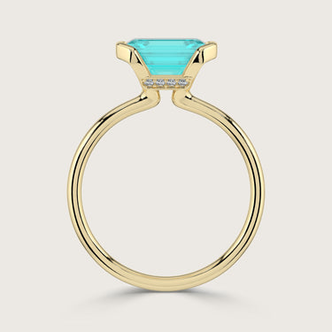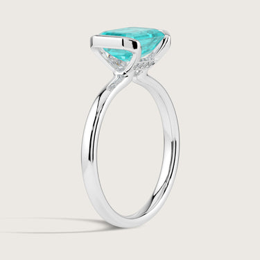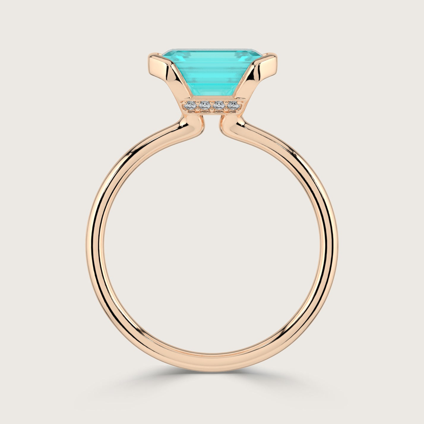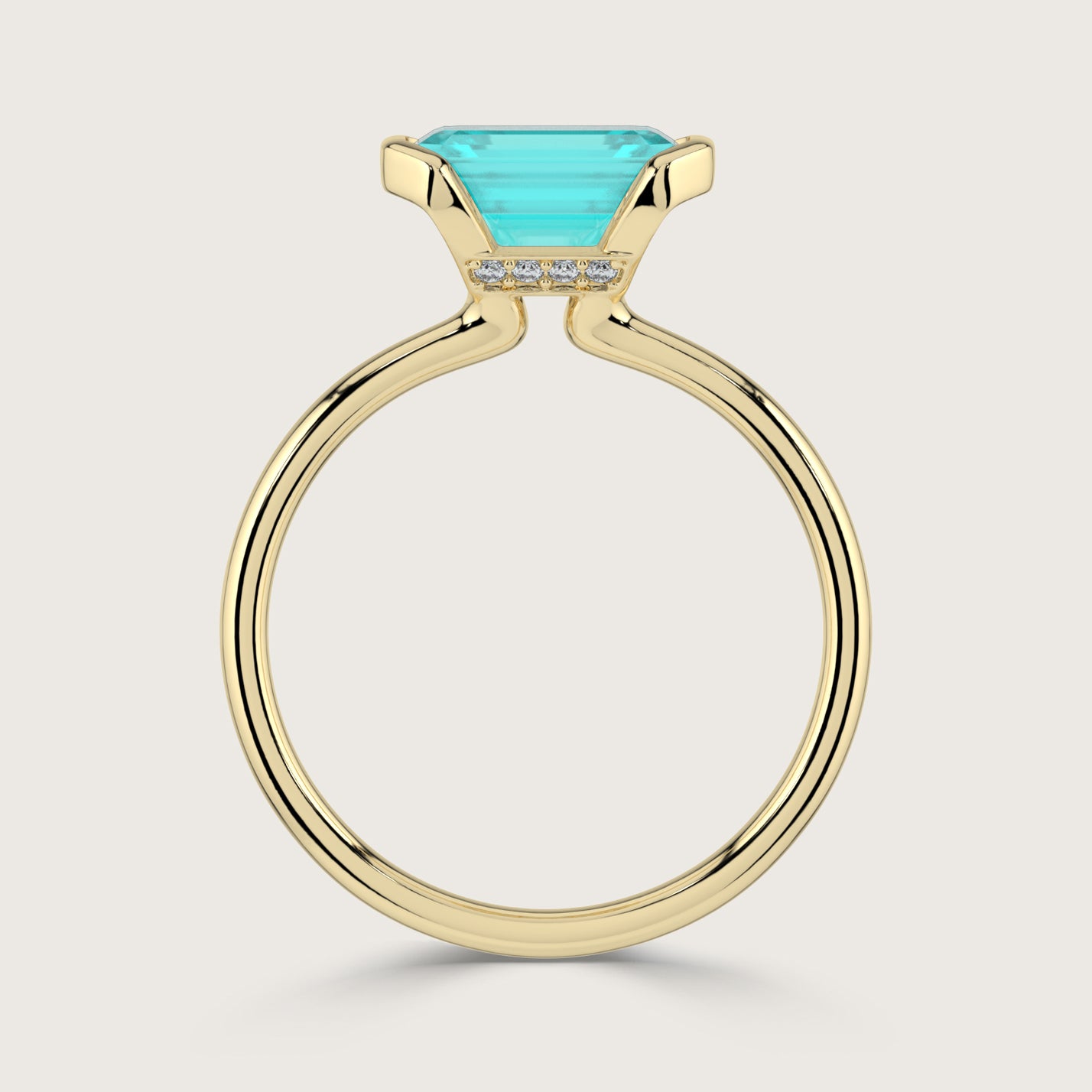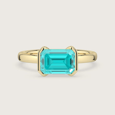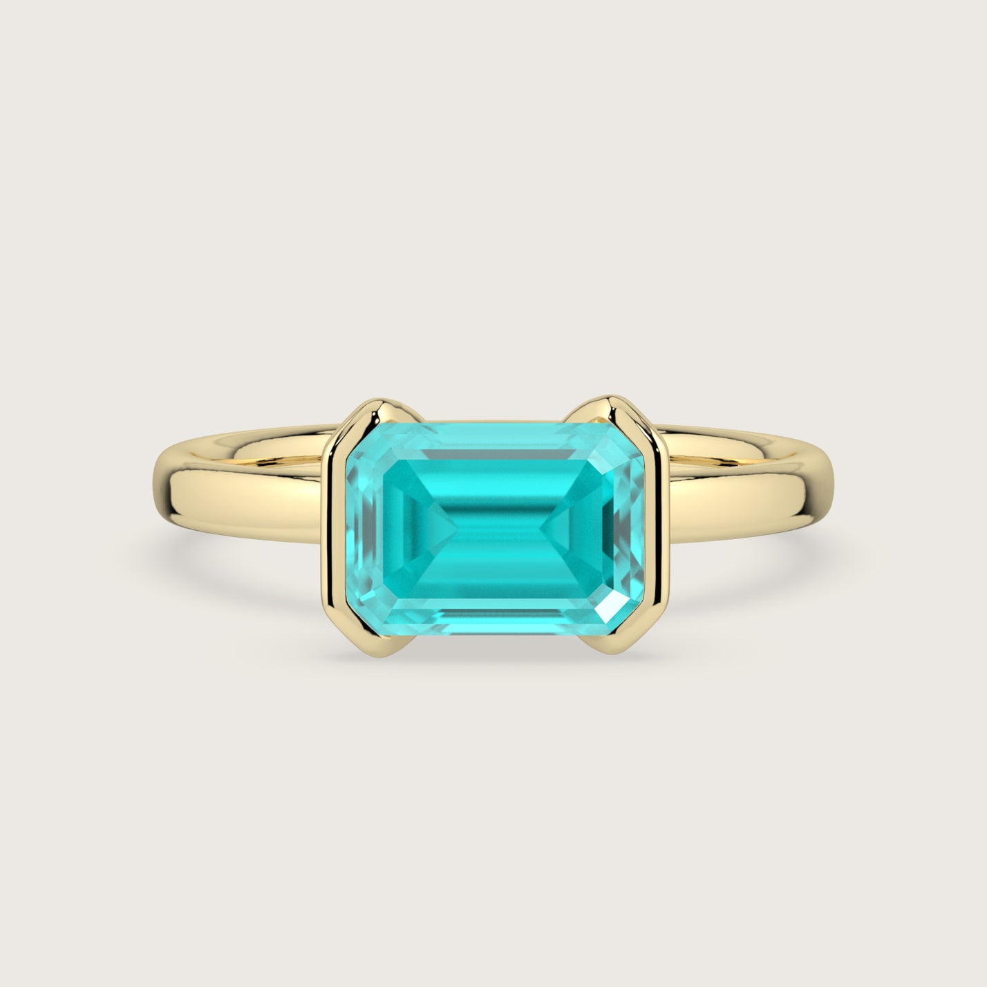 Ellis, Half Bezel Emerald Cut Paraiba Solitaire Ring