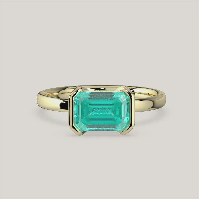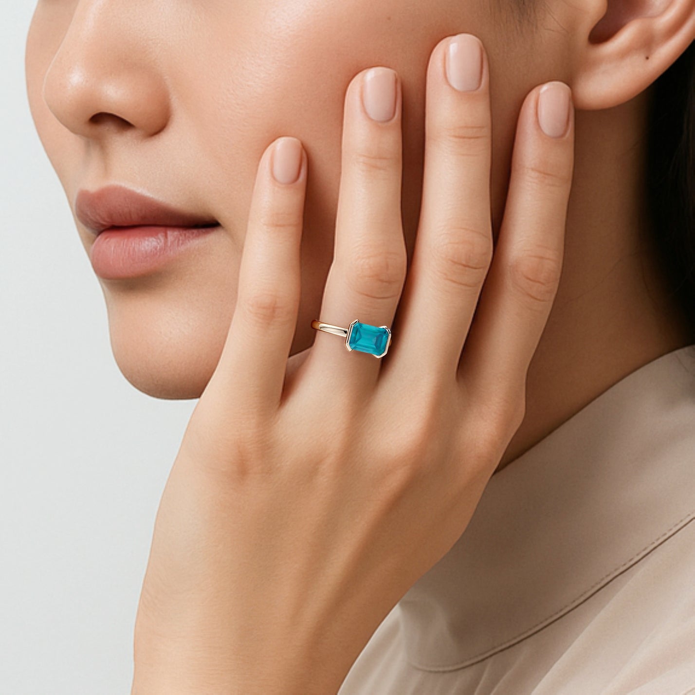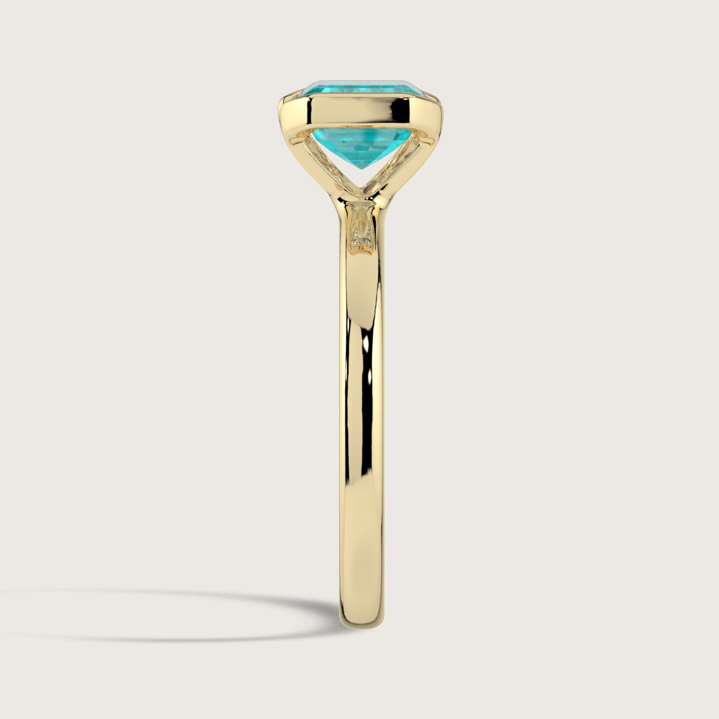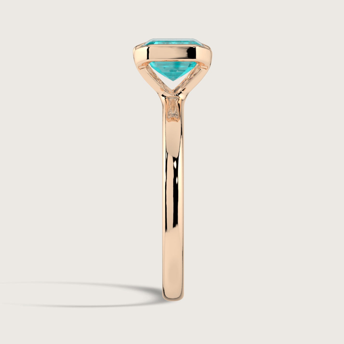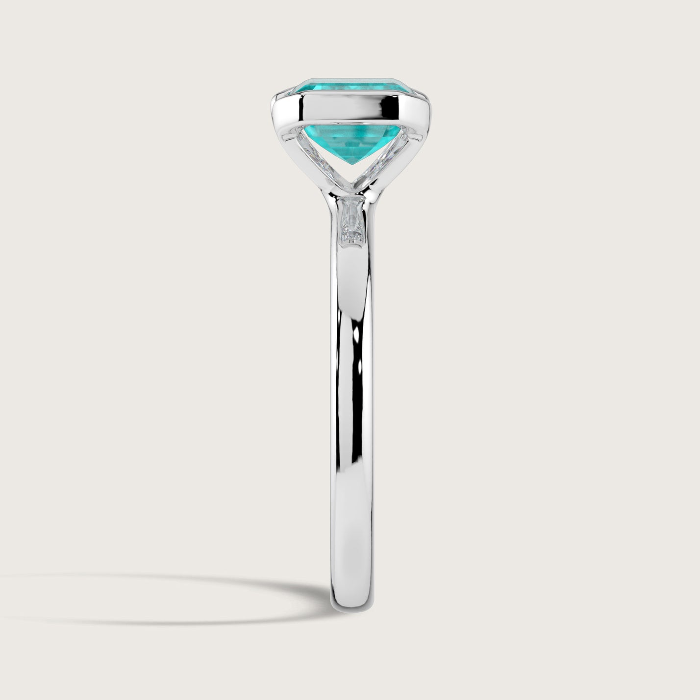 Ellis, Half Bezel Emerald Cut Paraiba Solitaire Ring