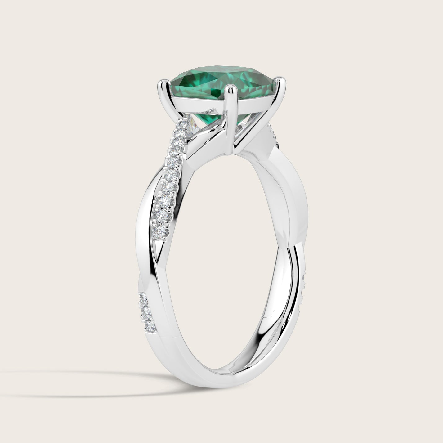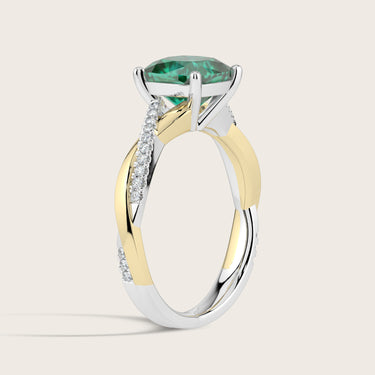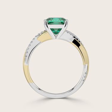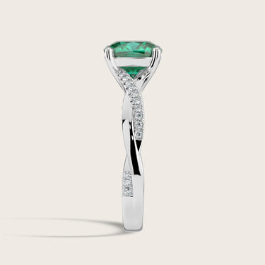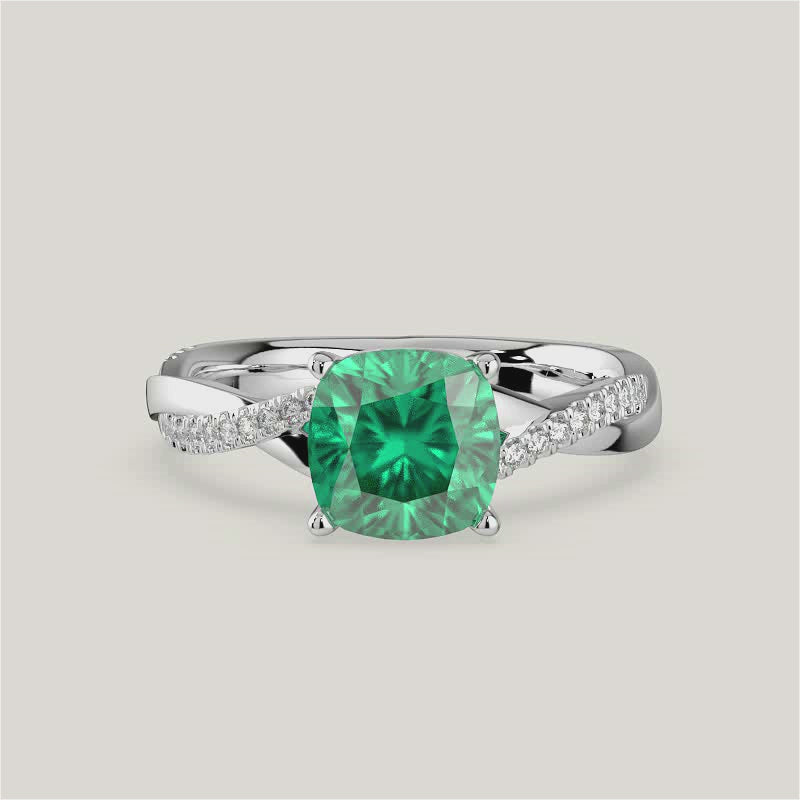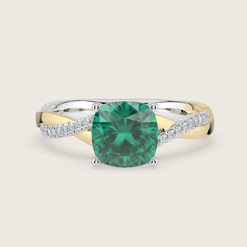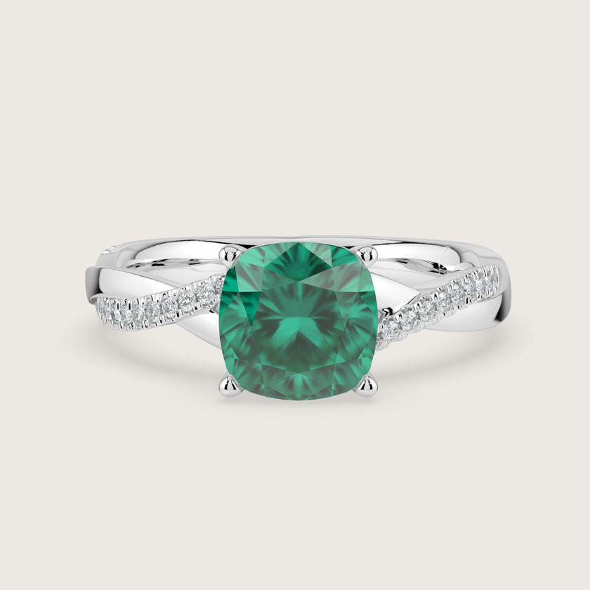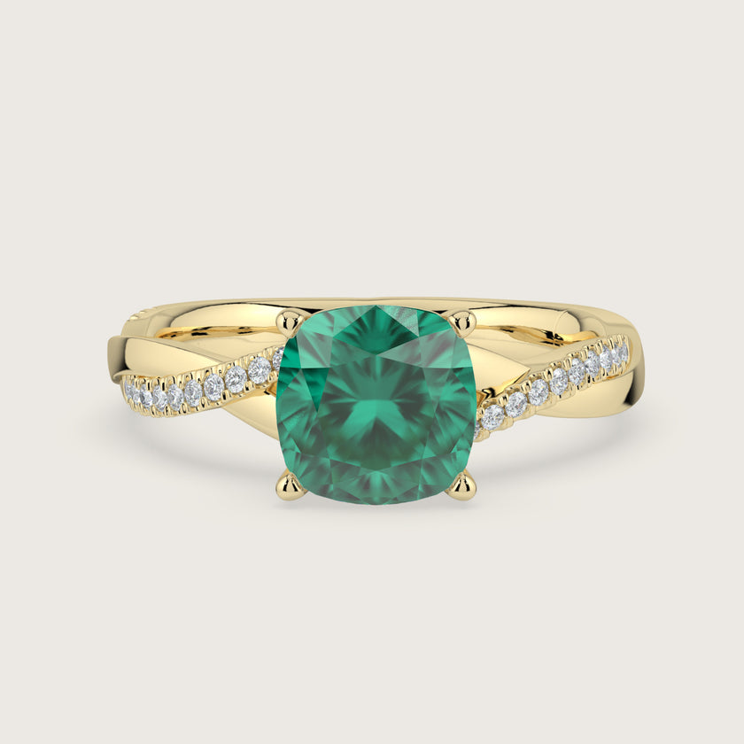 Elodie, Cushion Cut Emerald Twist Pavé Ring