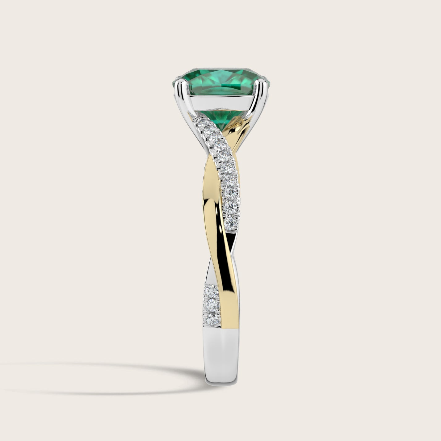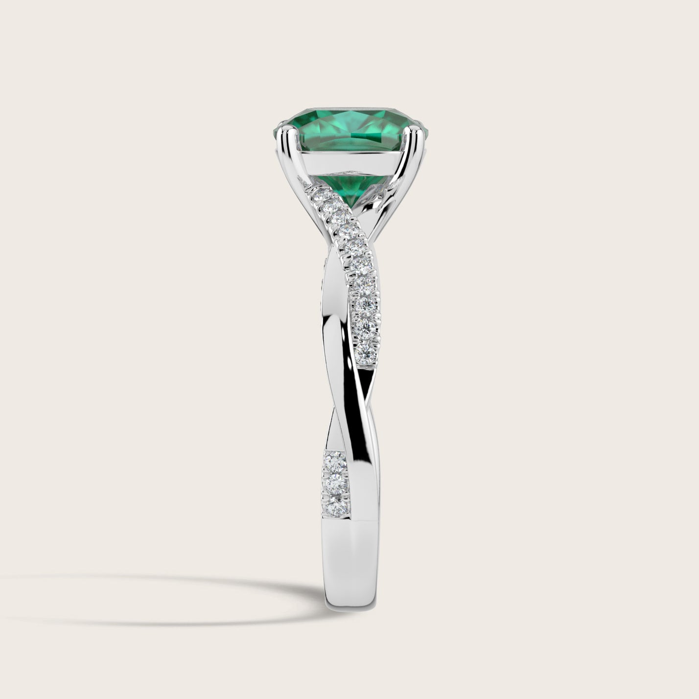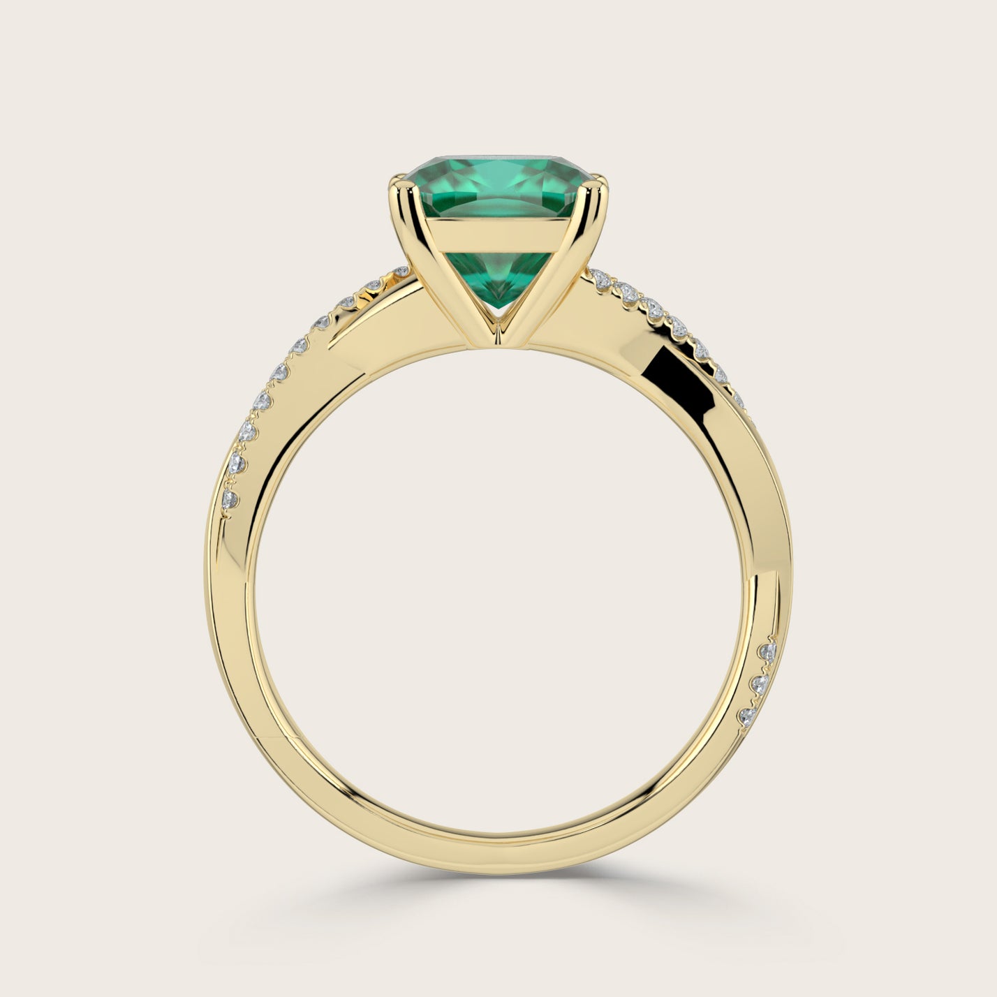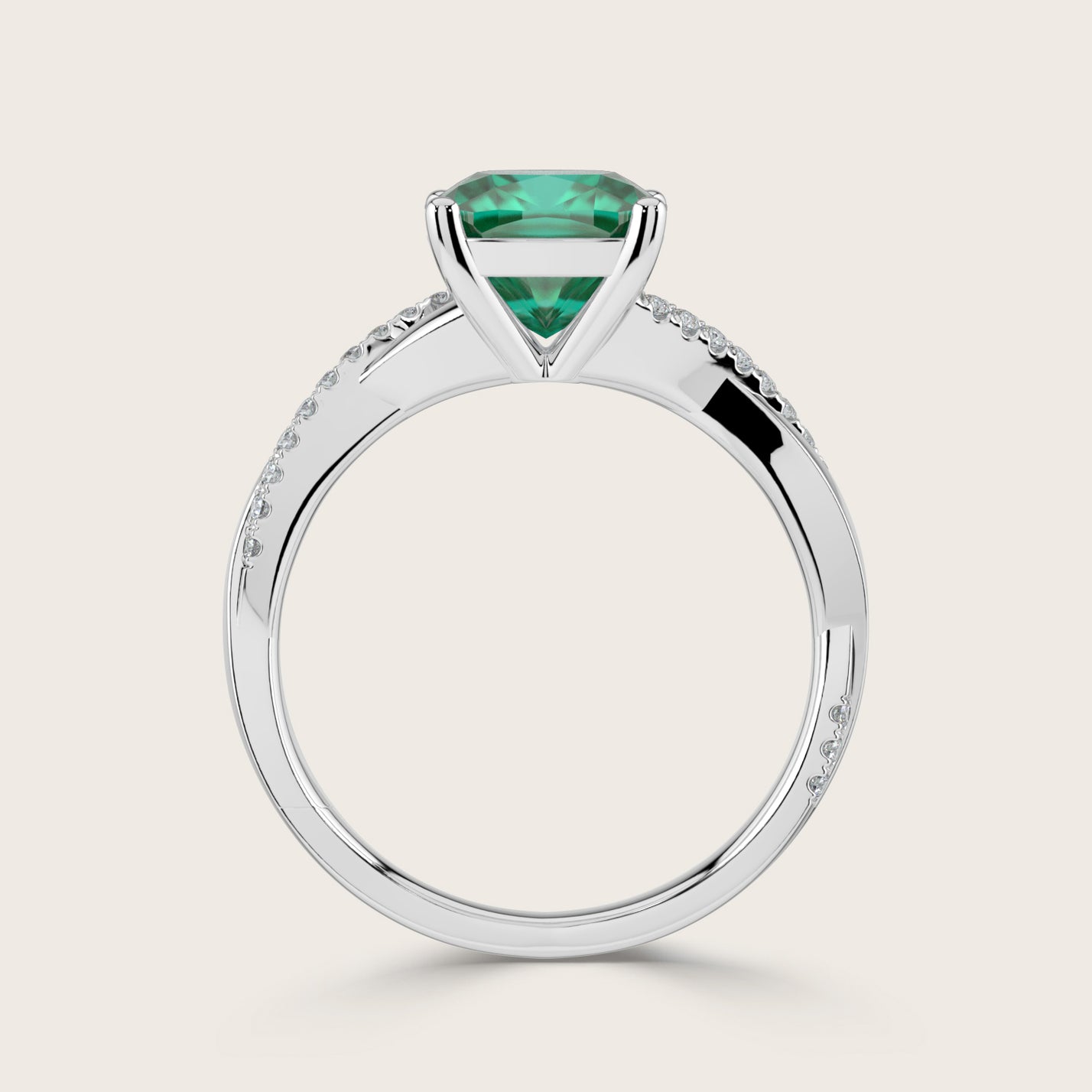 Elodie, Cushion Cut Emerald Twist Pavé Ring