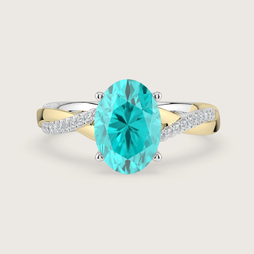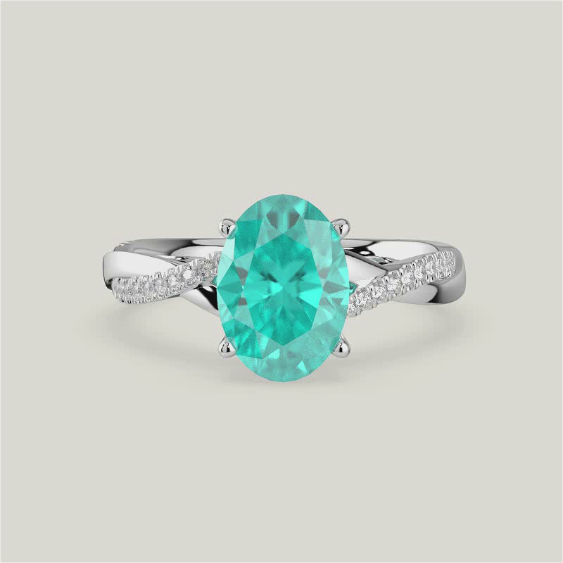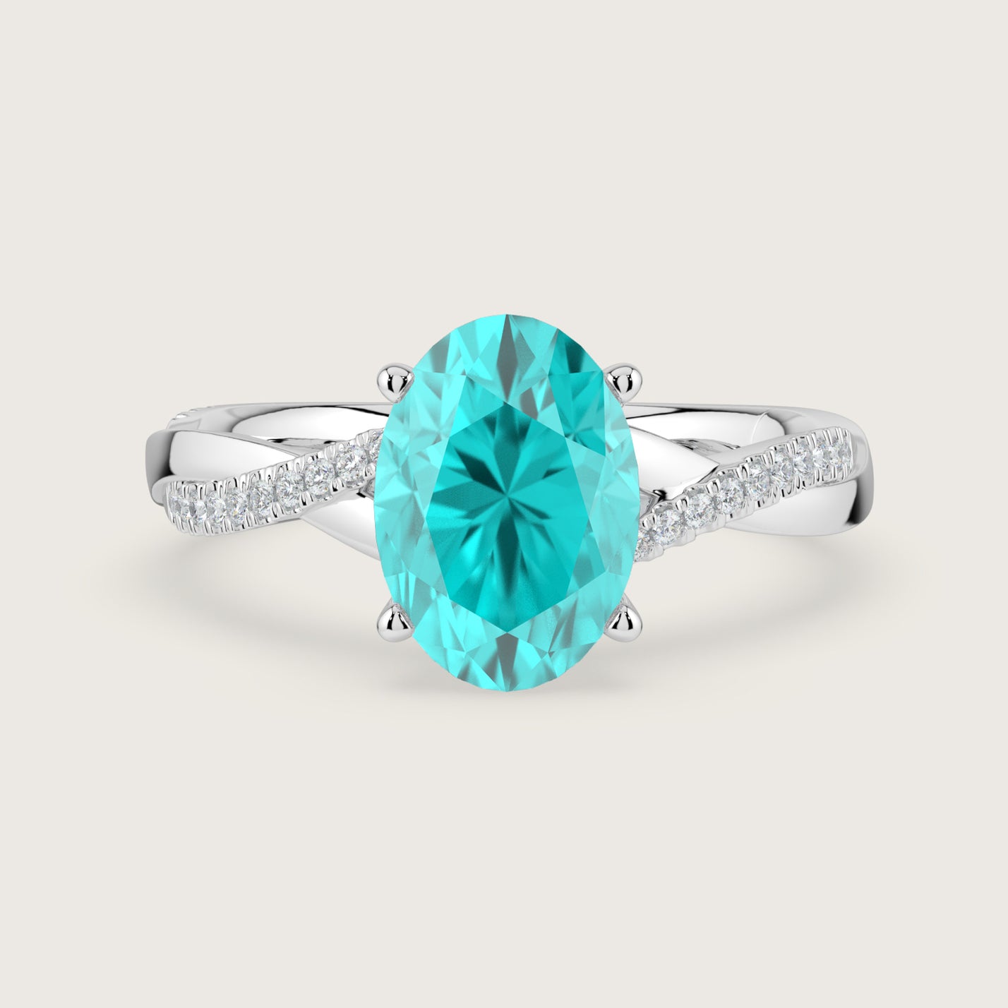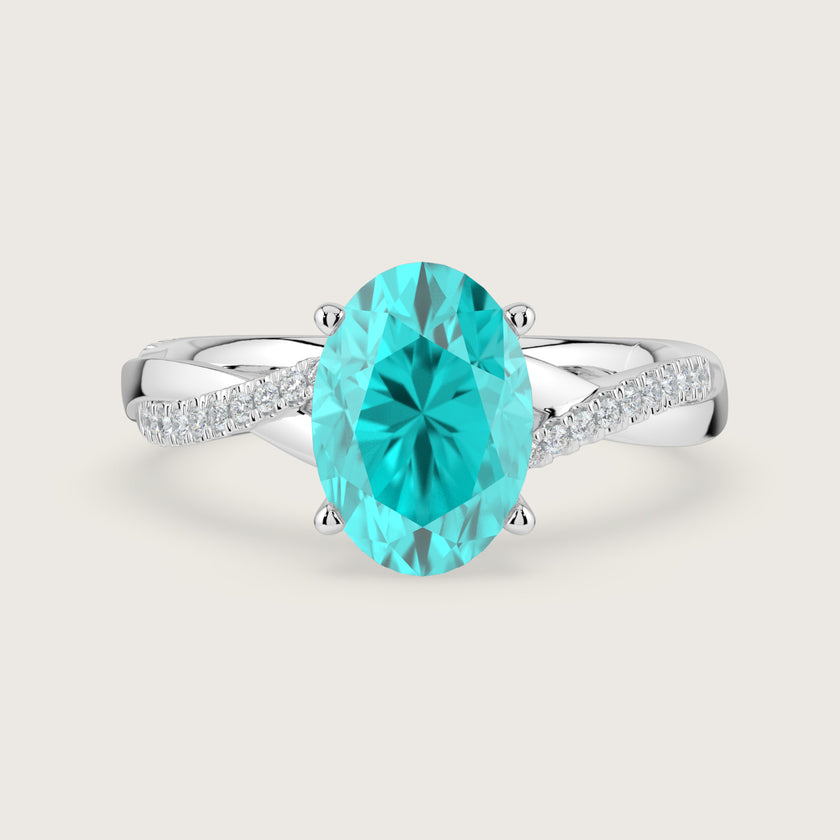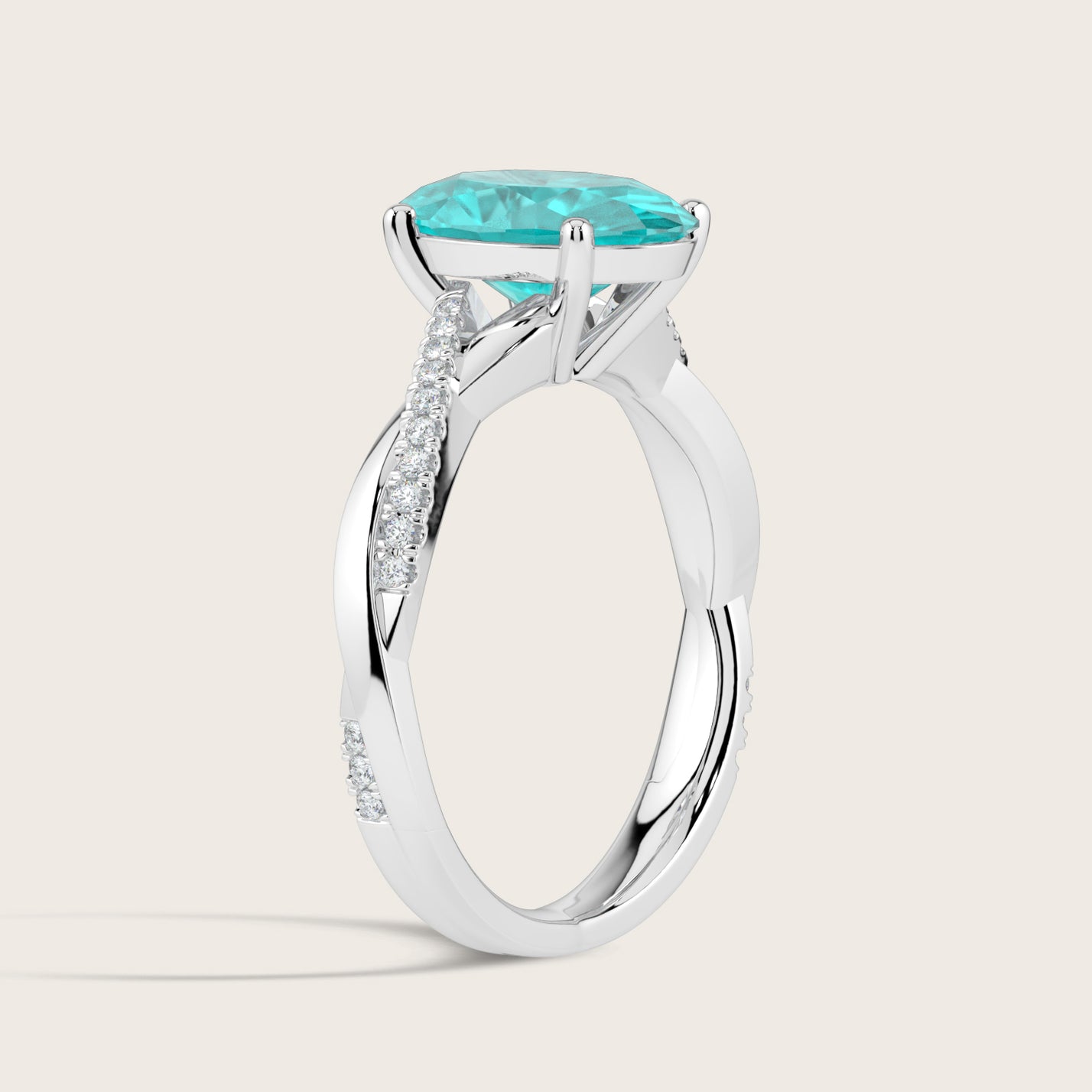 Elodie, Oval Cut Paraiba Twist Pavé Ring