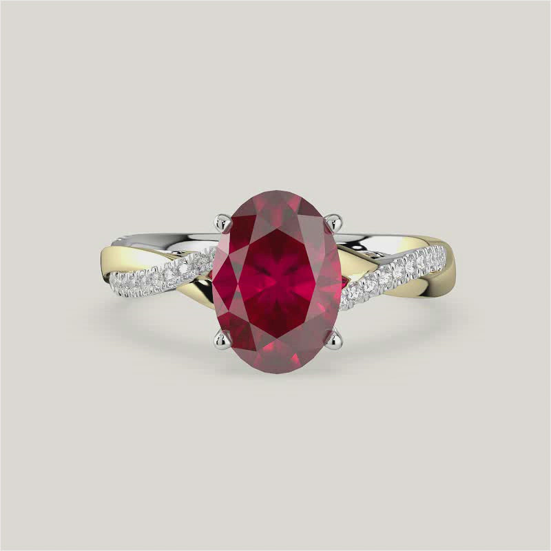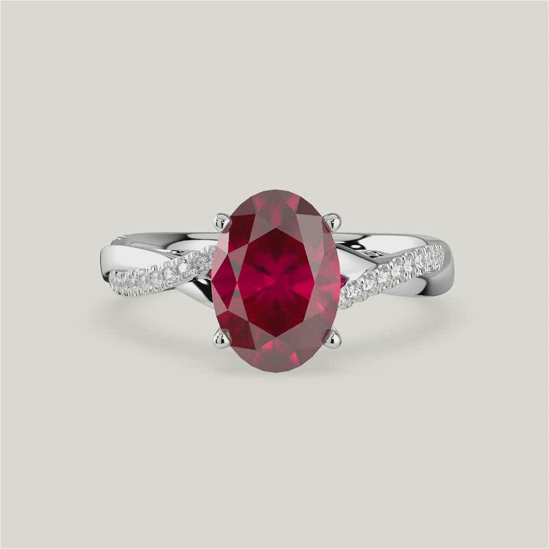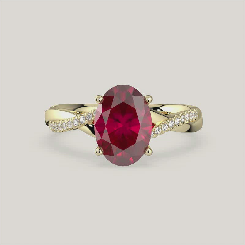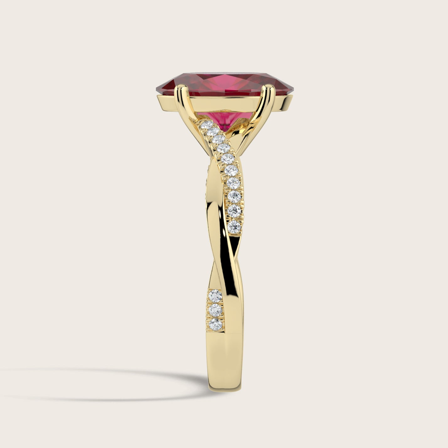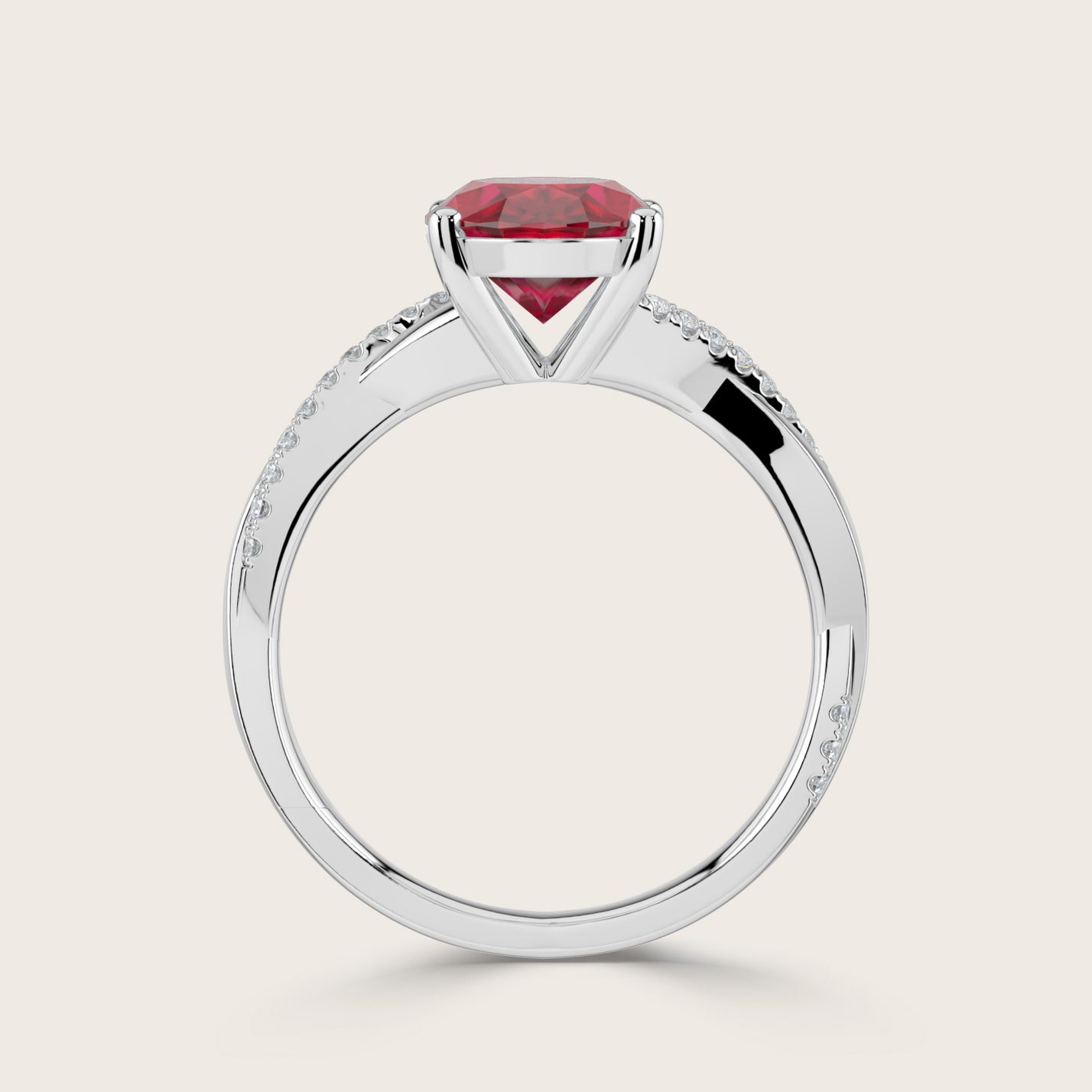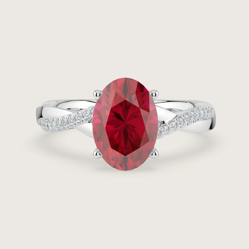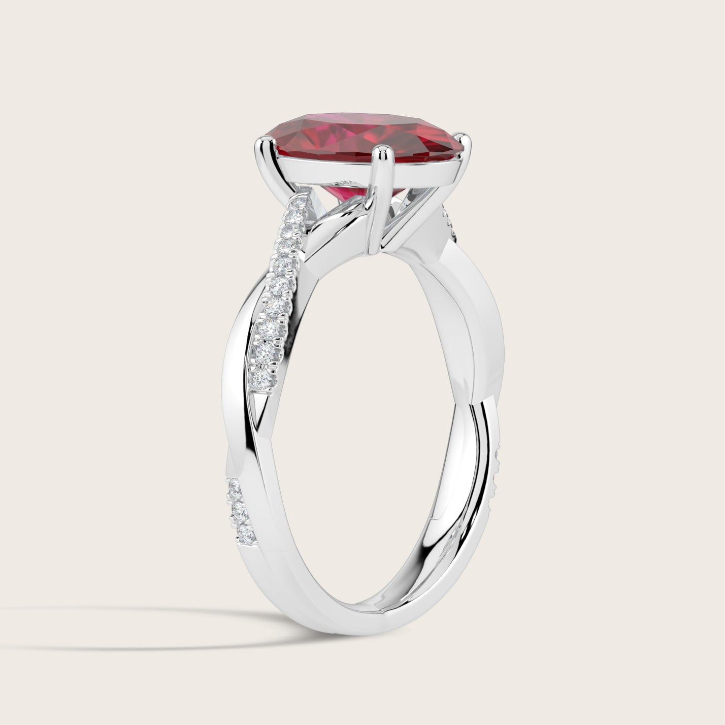 Elodie, Oval Cut Ruby Twist Pavé Ring