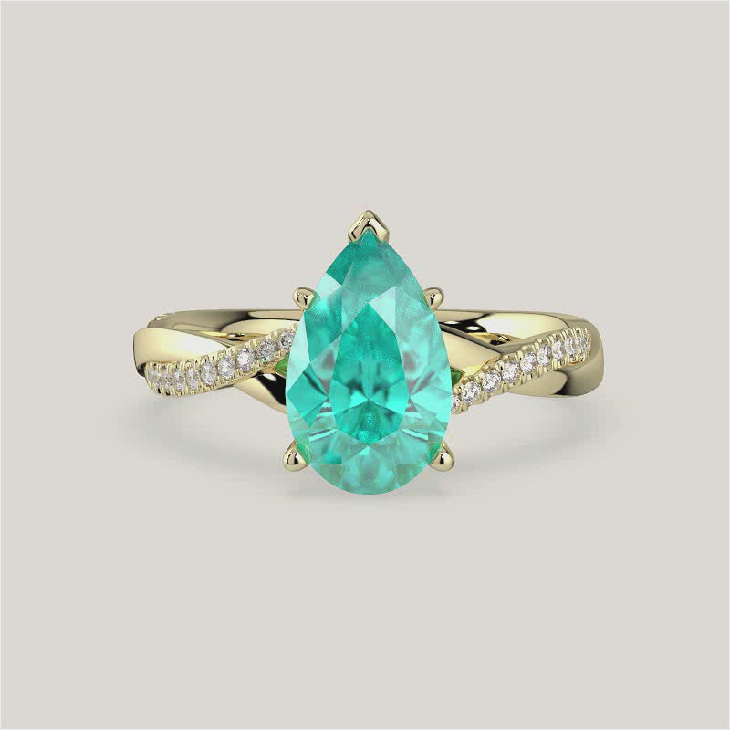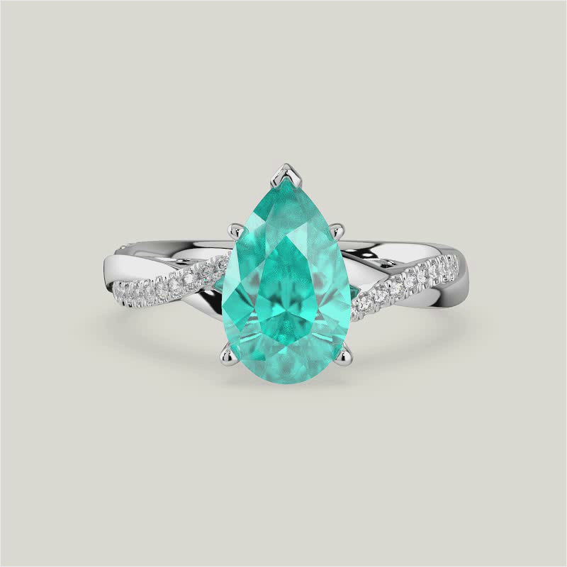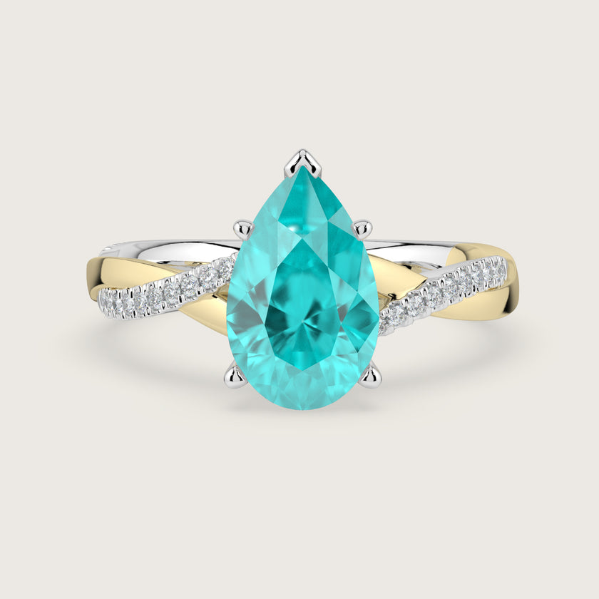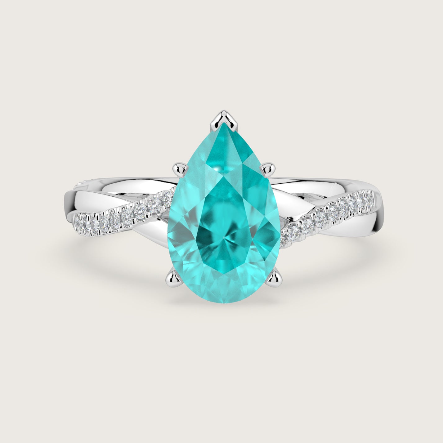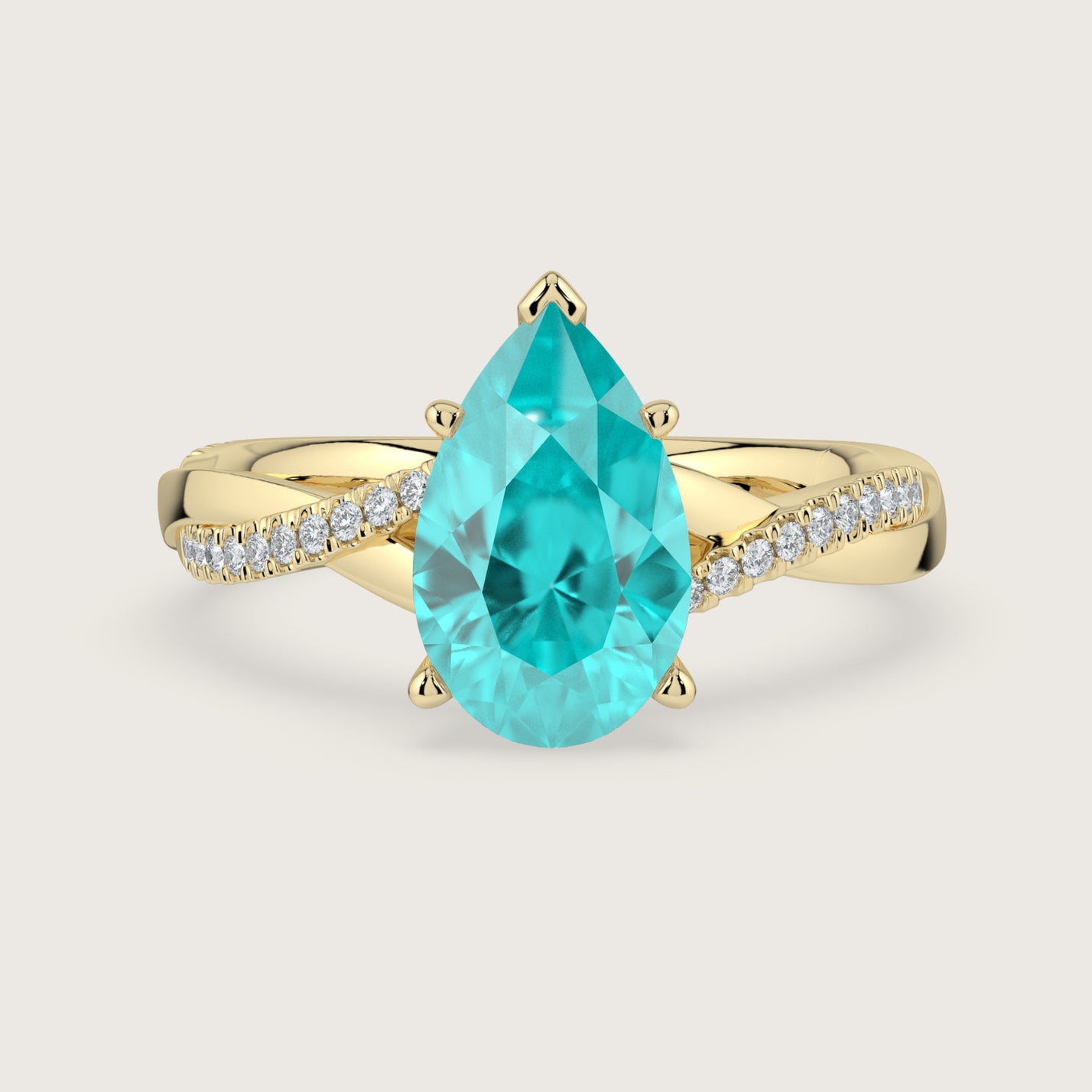 Elodie, Pear Cut Paraiba Twist Pavé Ring