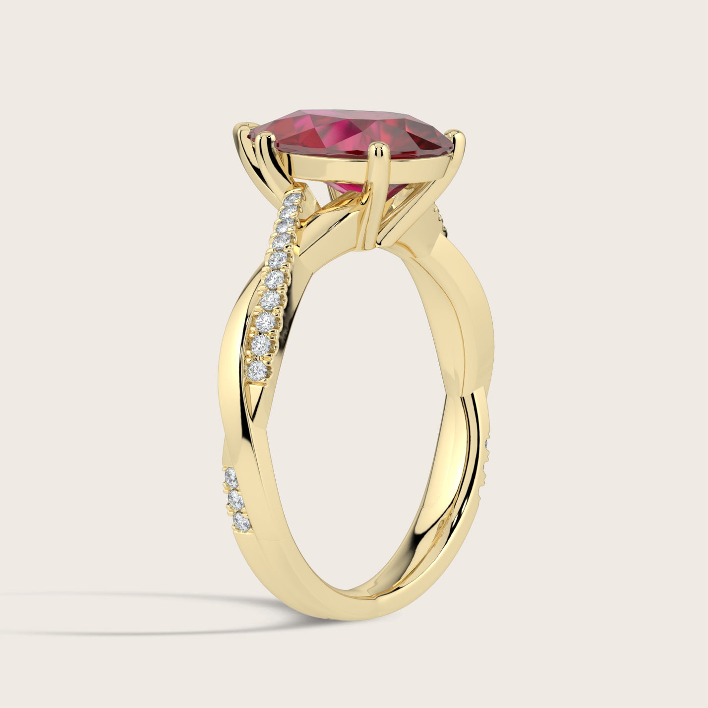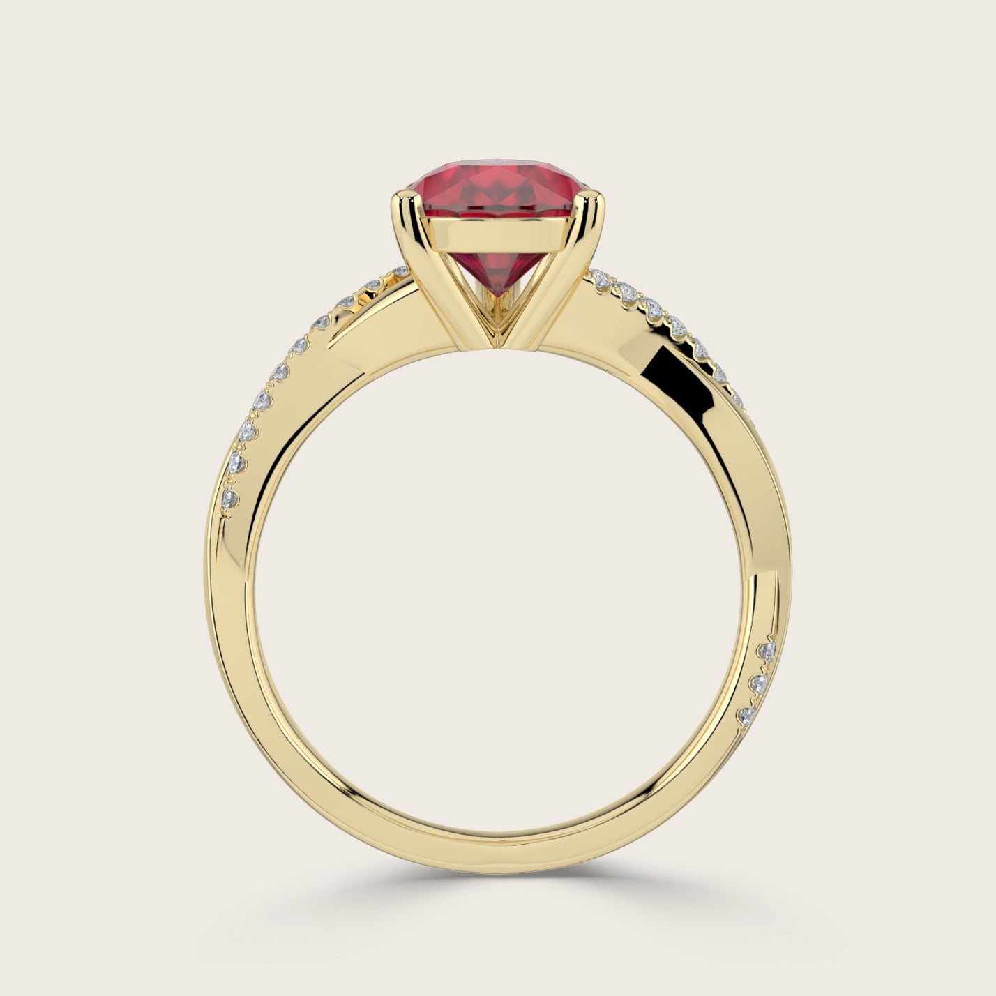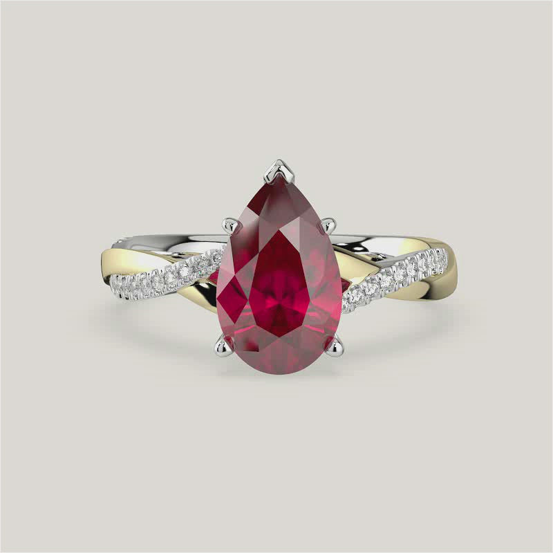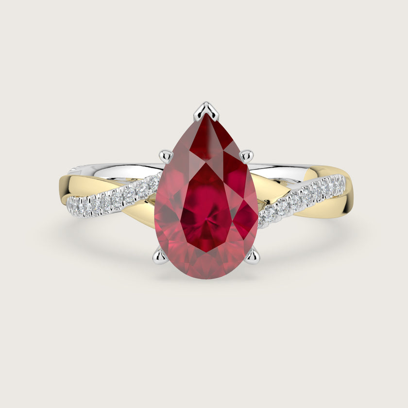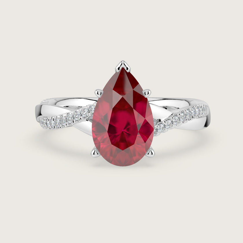Elodie, Pear Cut Ruby Twist Pavé Ring