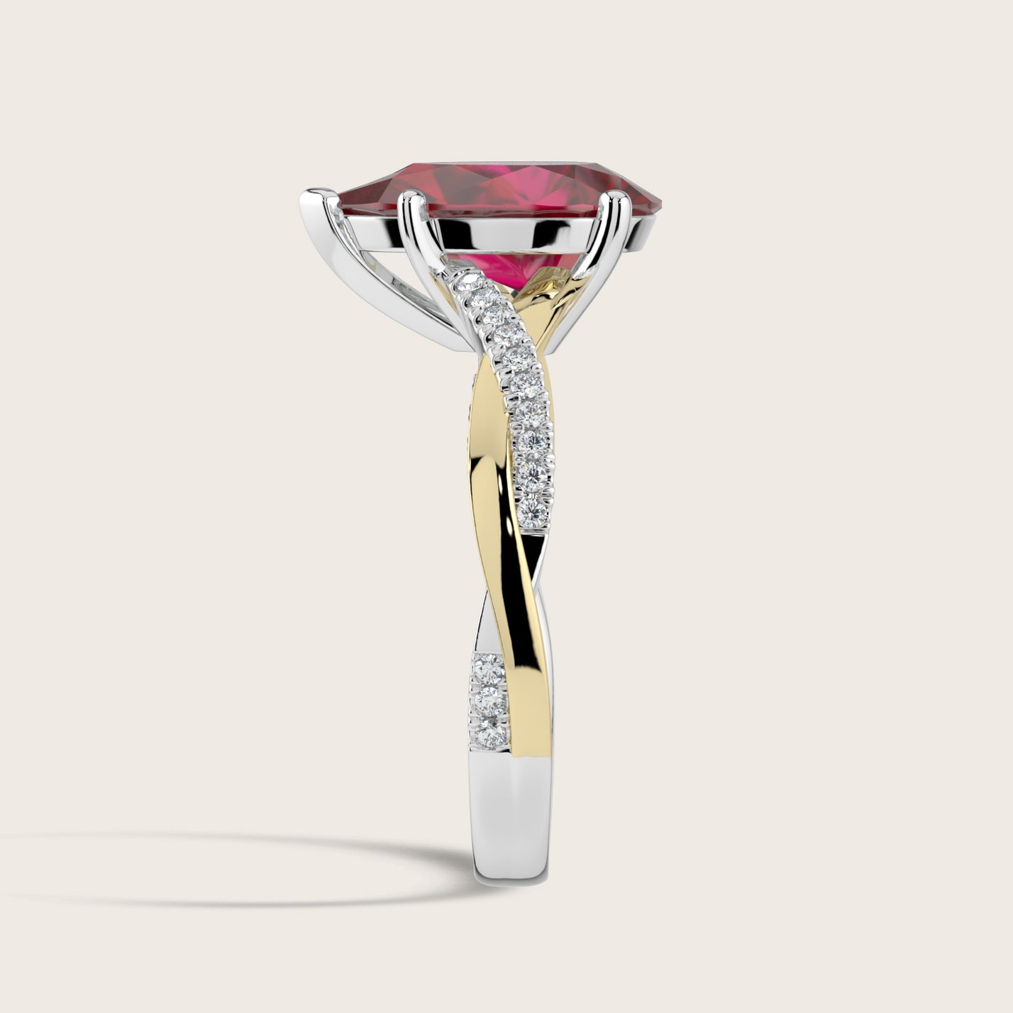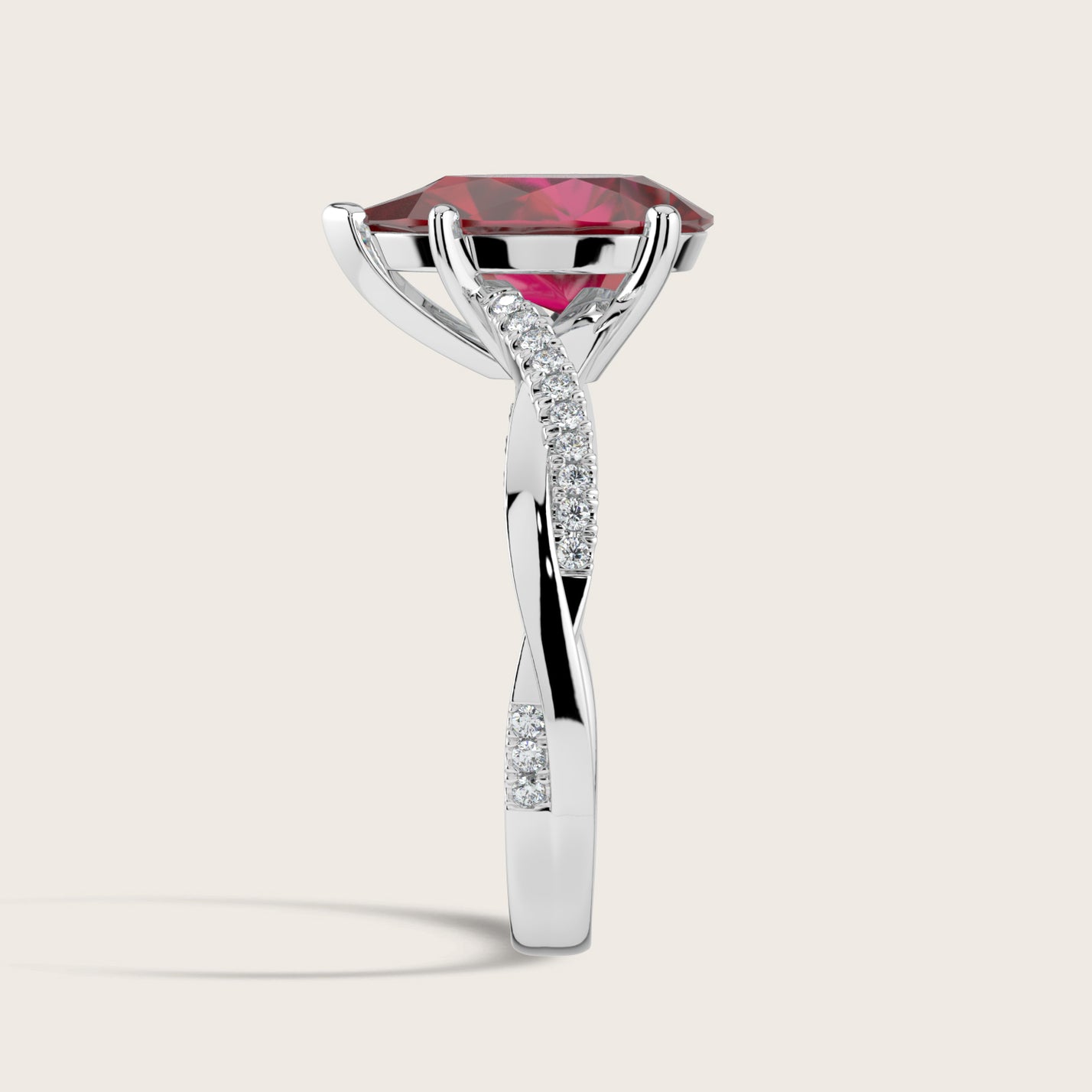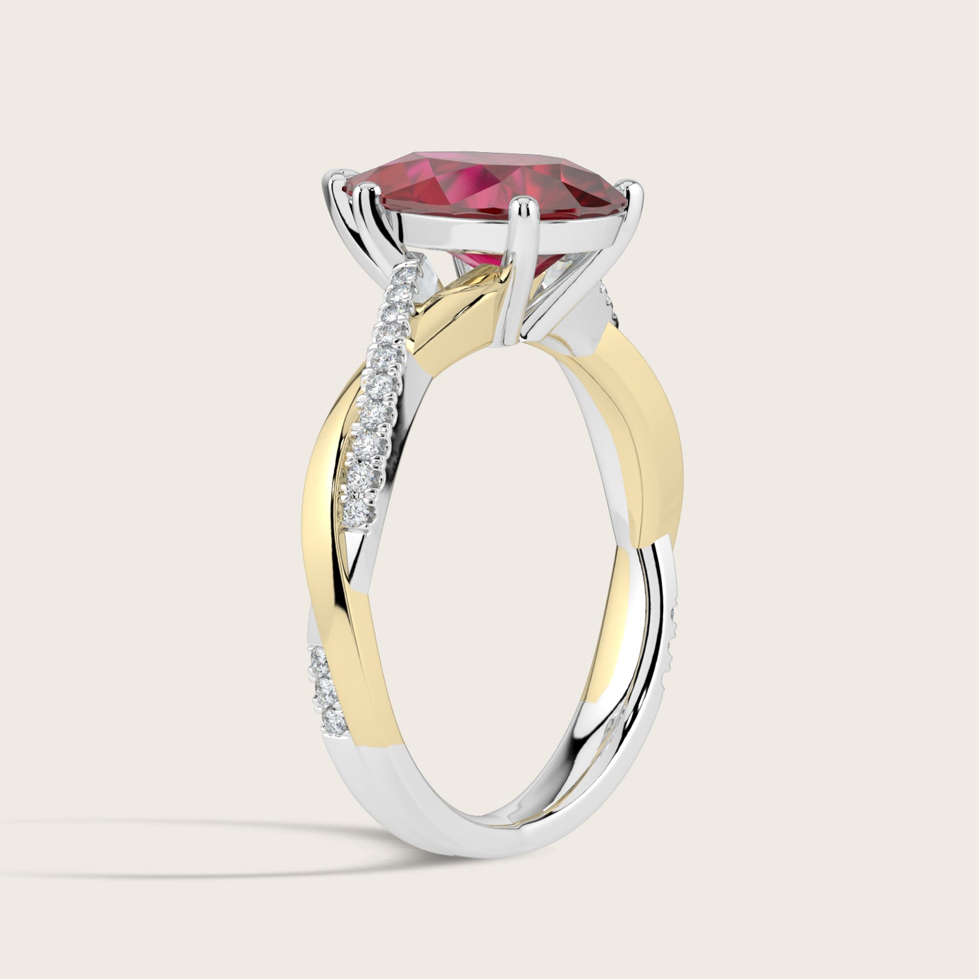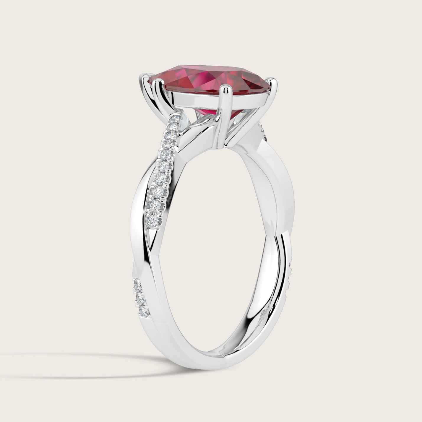 Elodie, Pear Cut Ruby Twist Pavé Ring