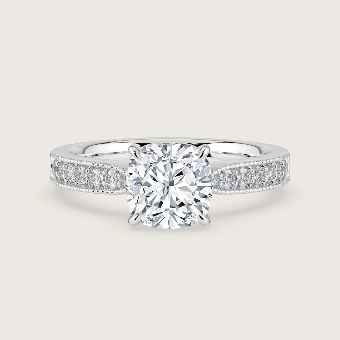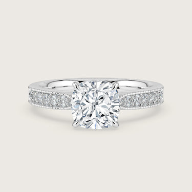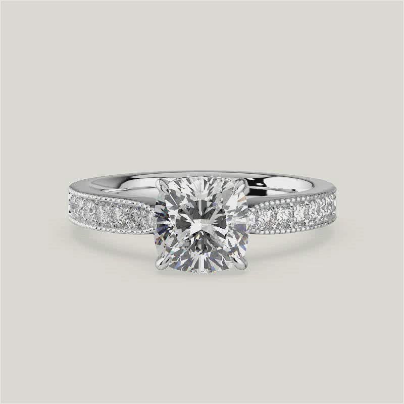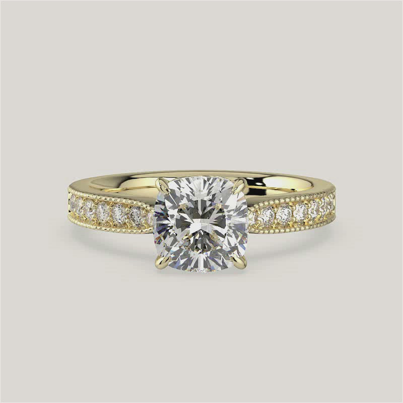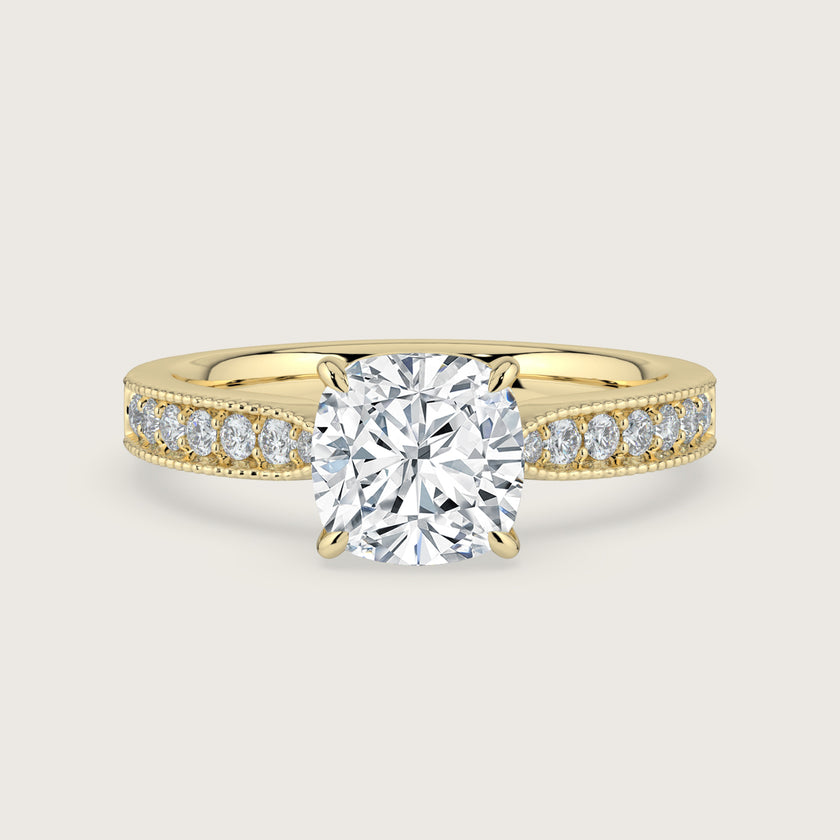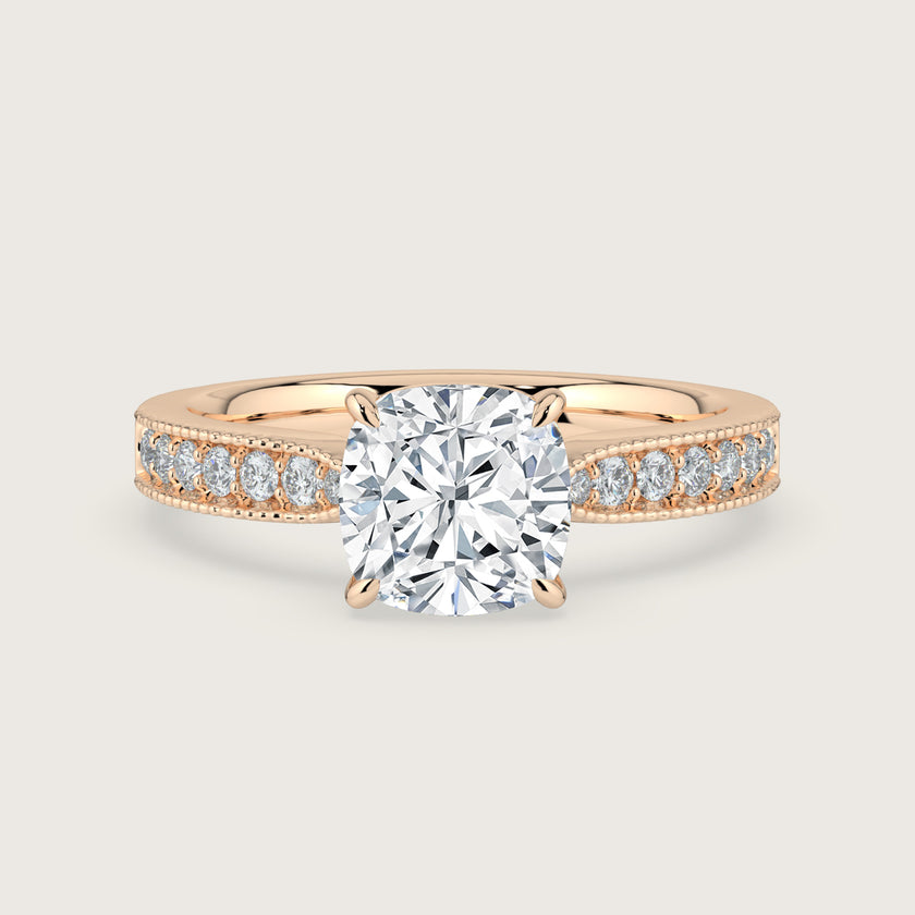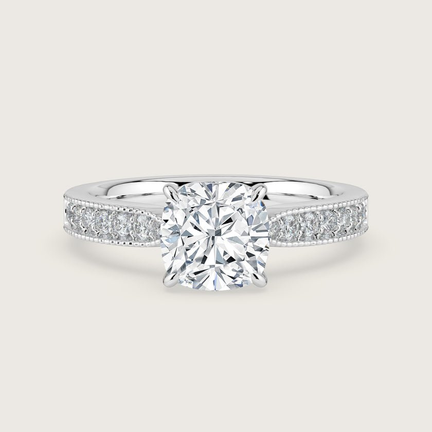 Emilie, Vintage Milgrain Cushion Cut Diamond Pavé Ring