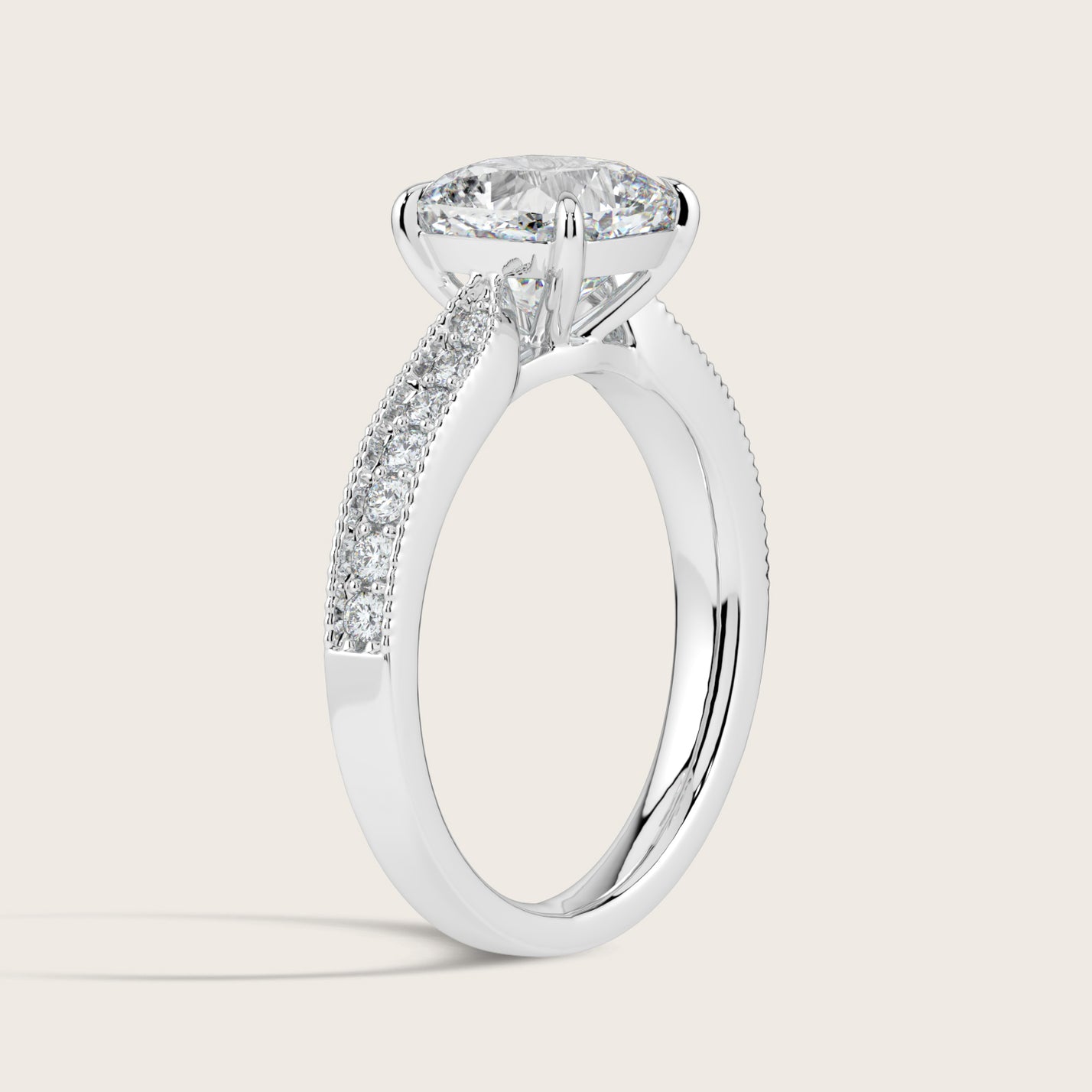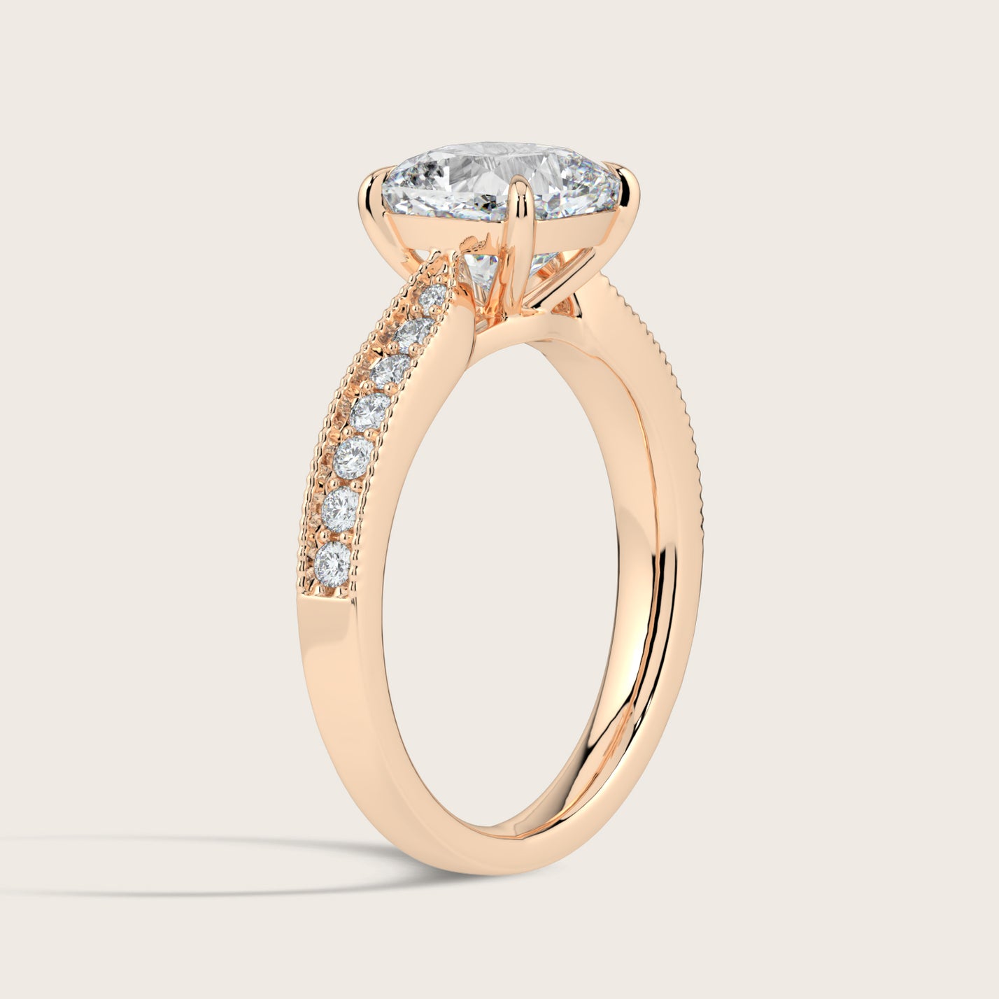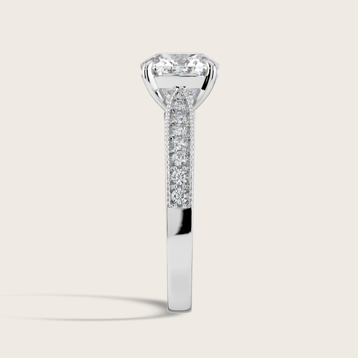 Emilie, Vintage Milgrain Cushion Cut Diamond Pavé Ring