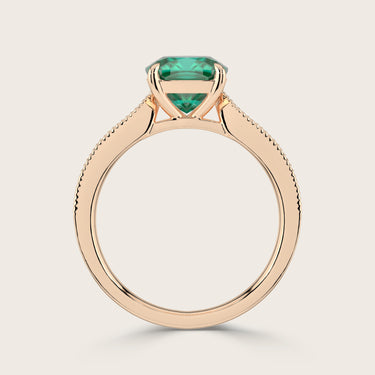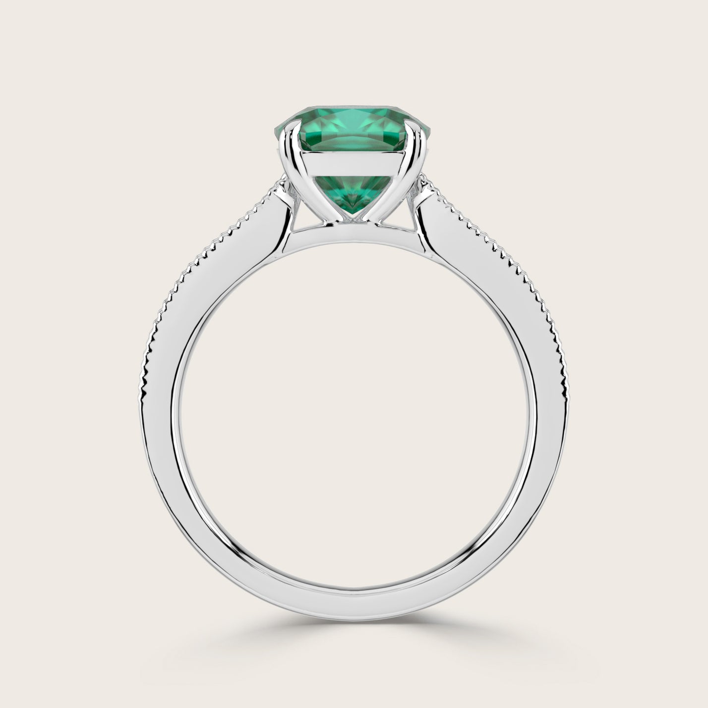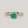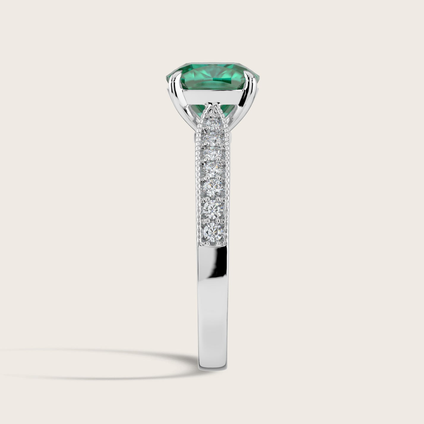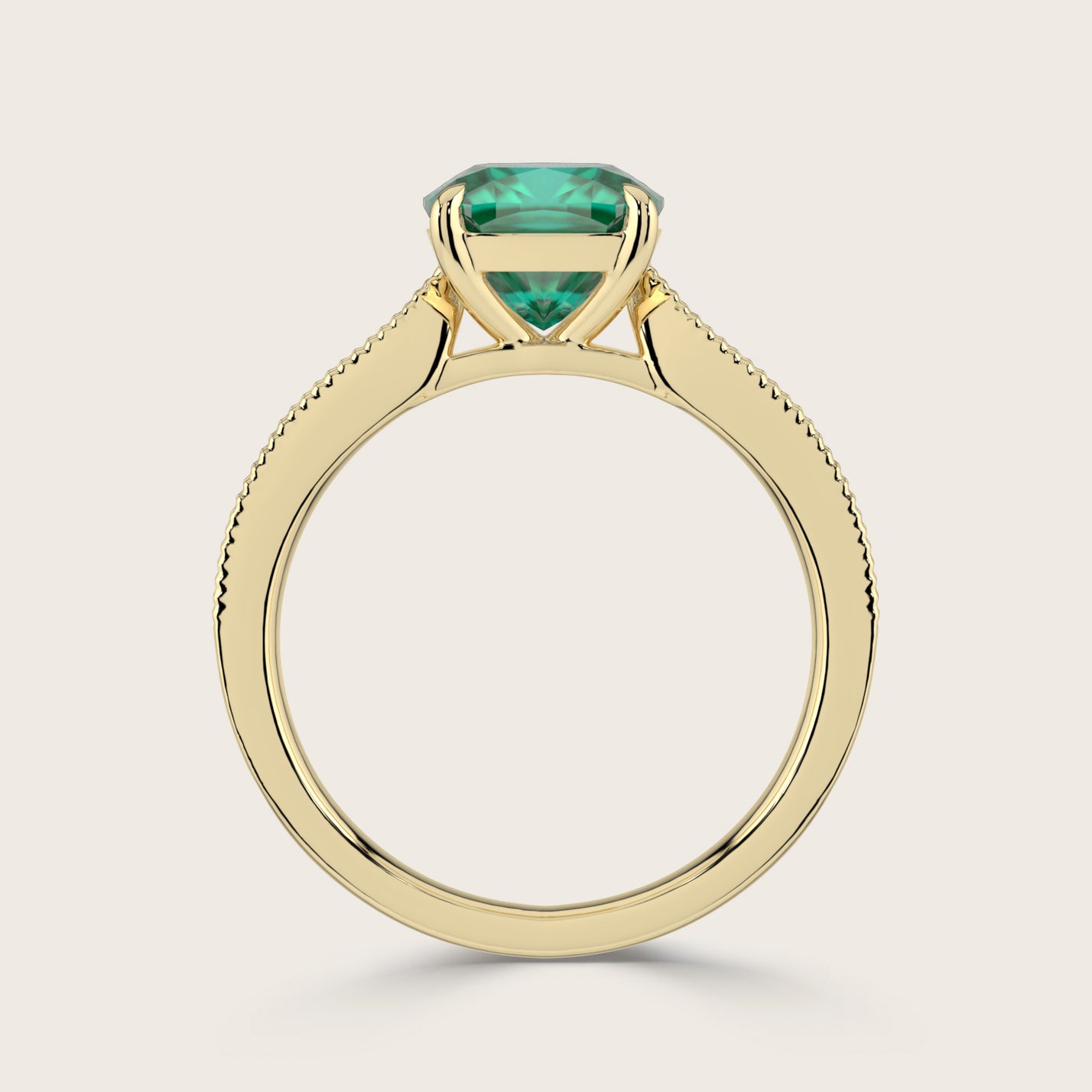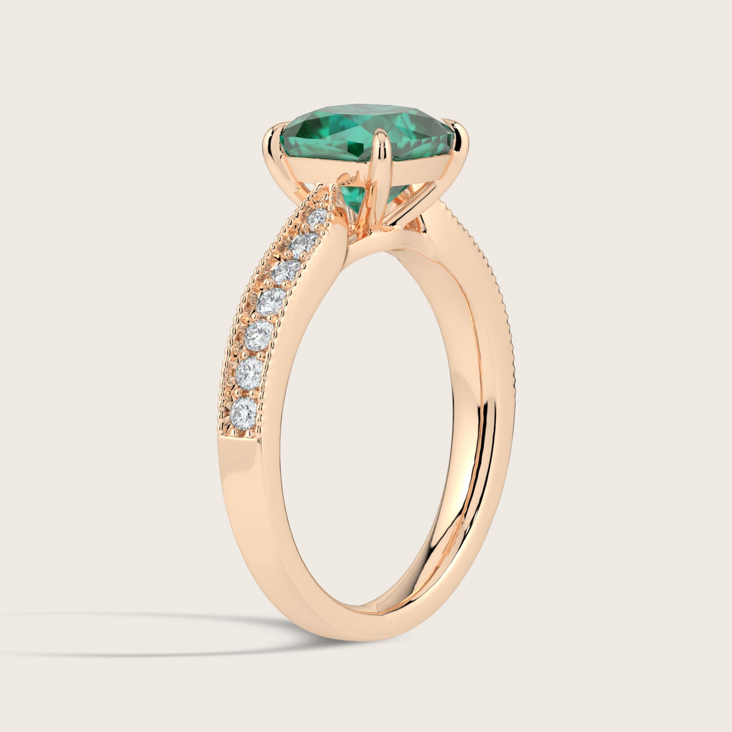 Emilie, Vintage Milgrain Cushion Cut Emerald Pavé Ring