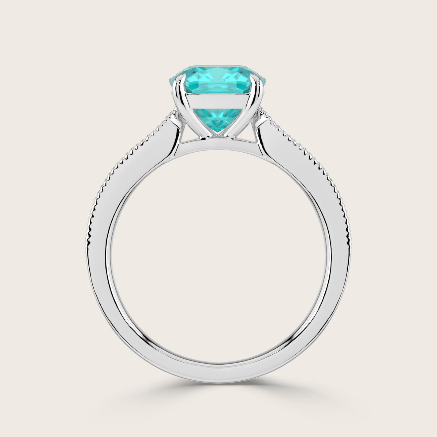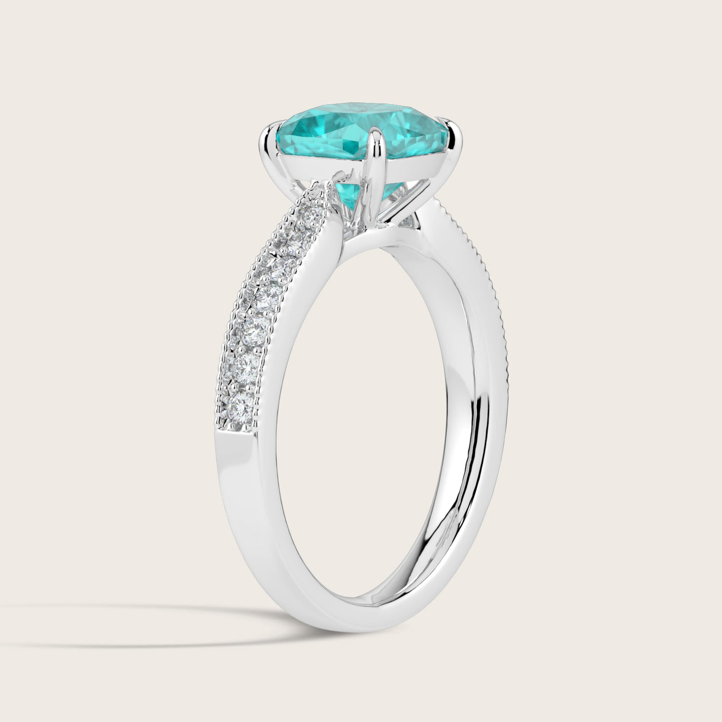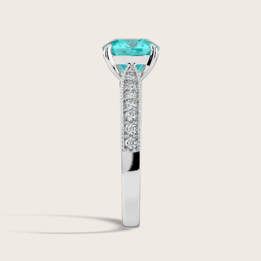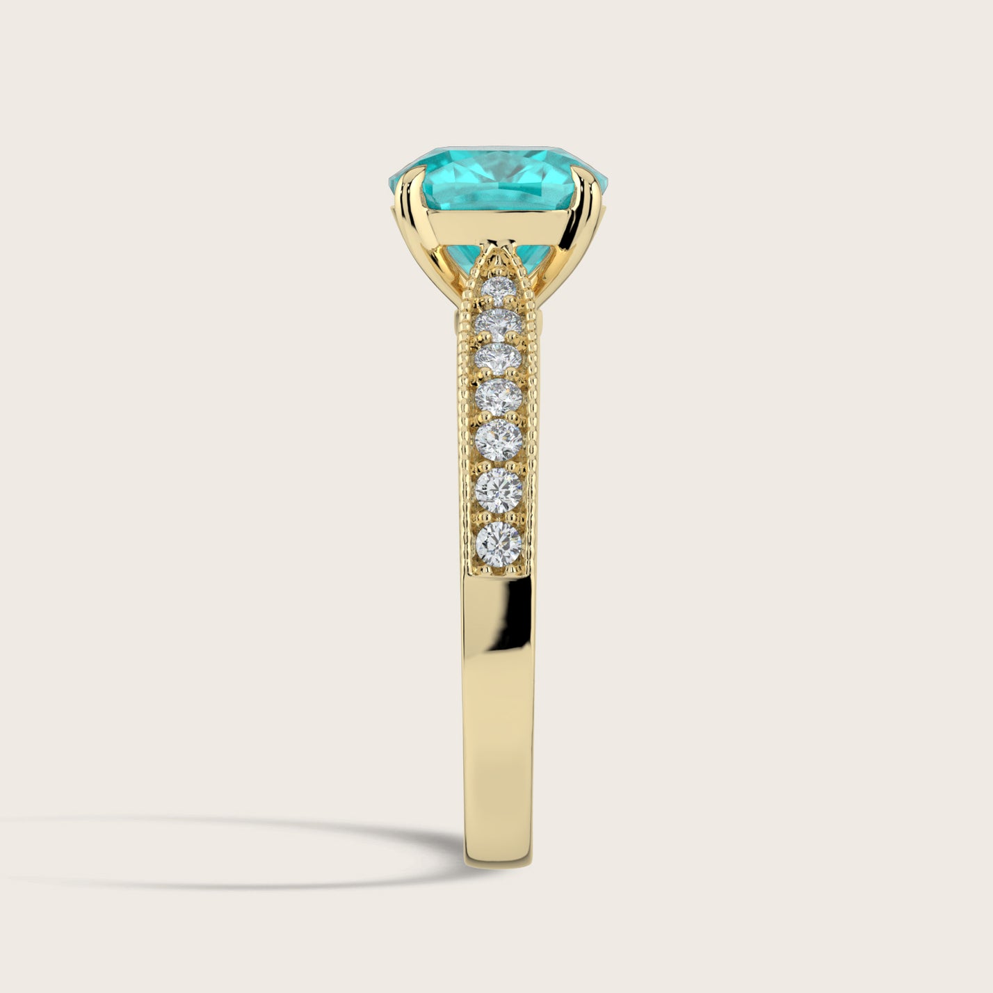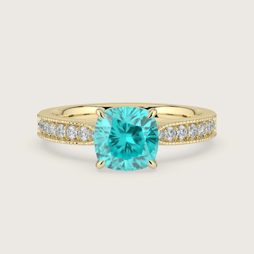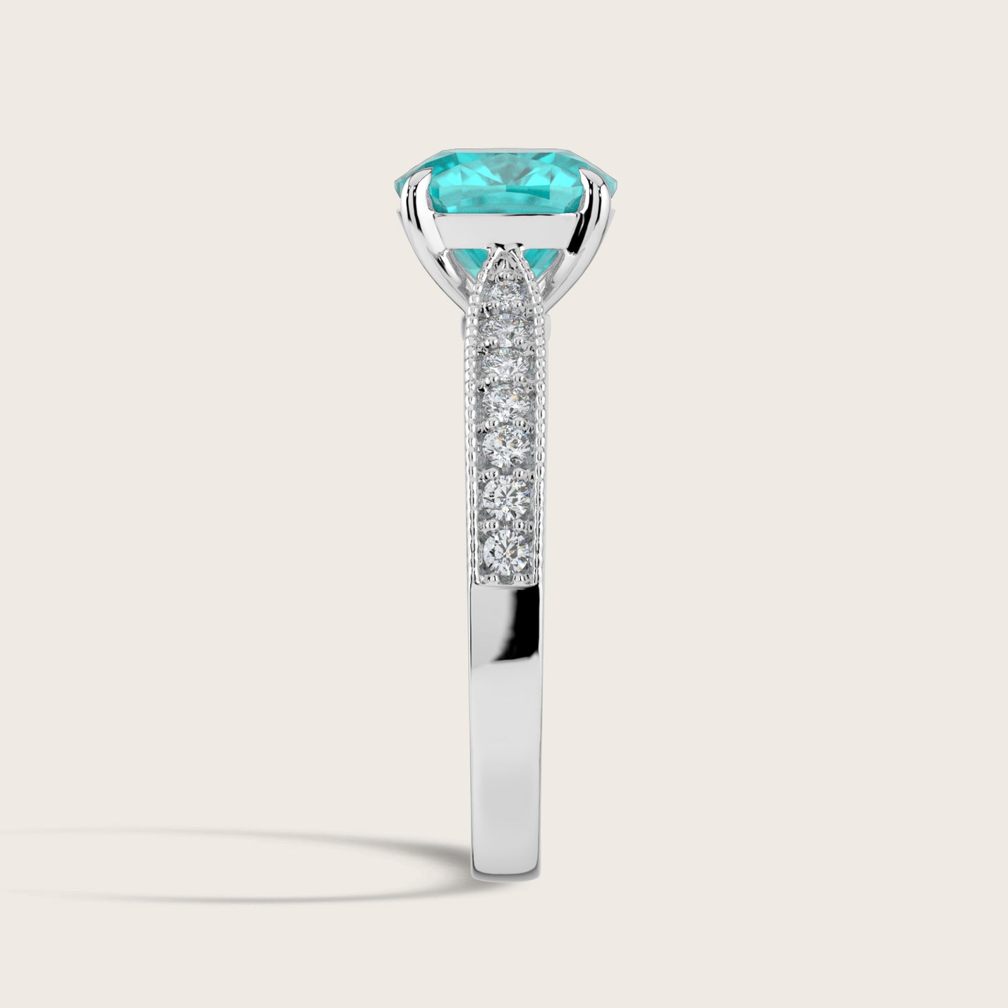 Emilie, Vintage Milgrain Cushion Cut Paraiba Pavé Ring
