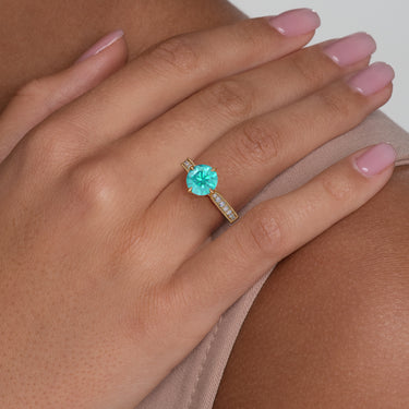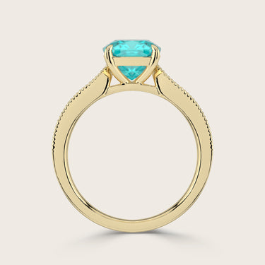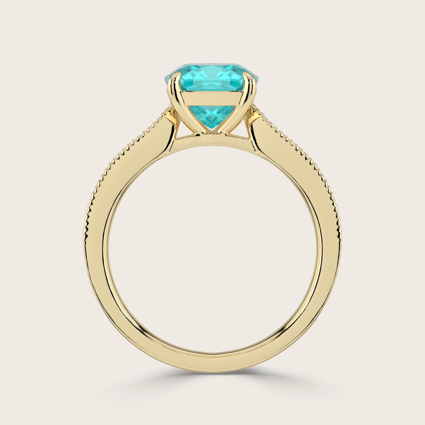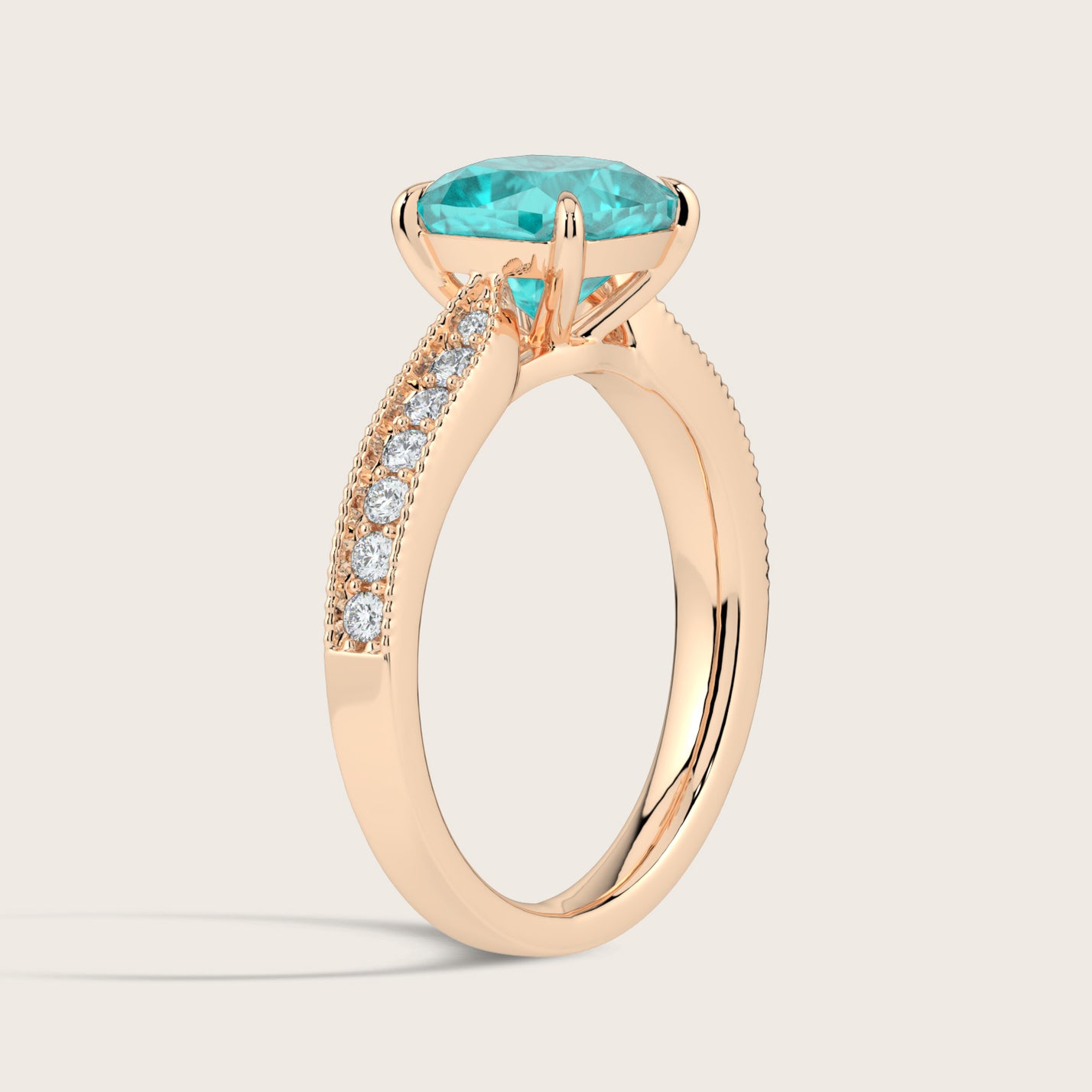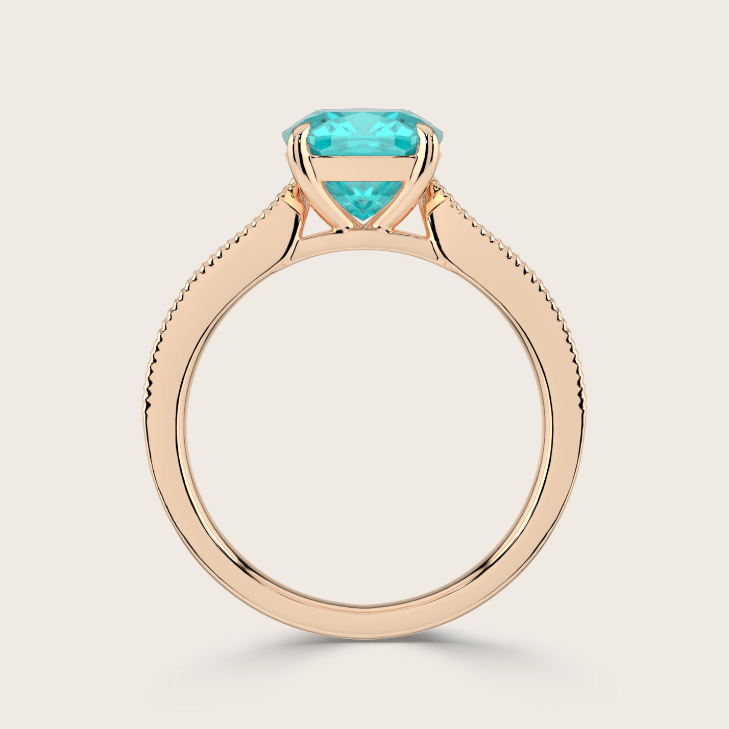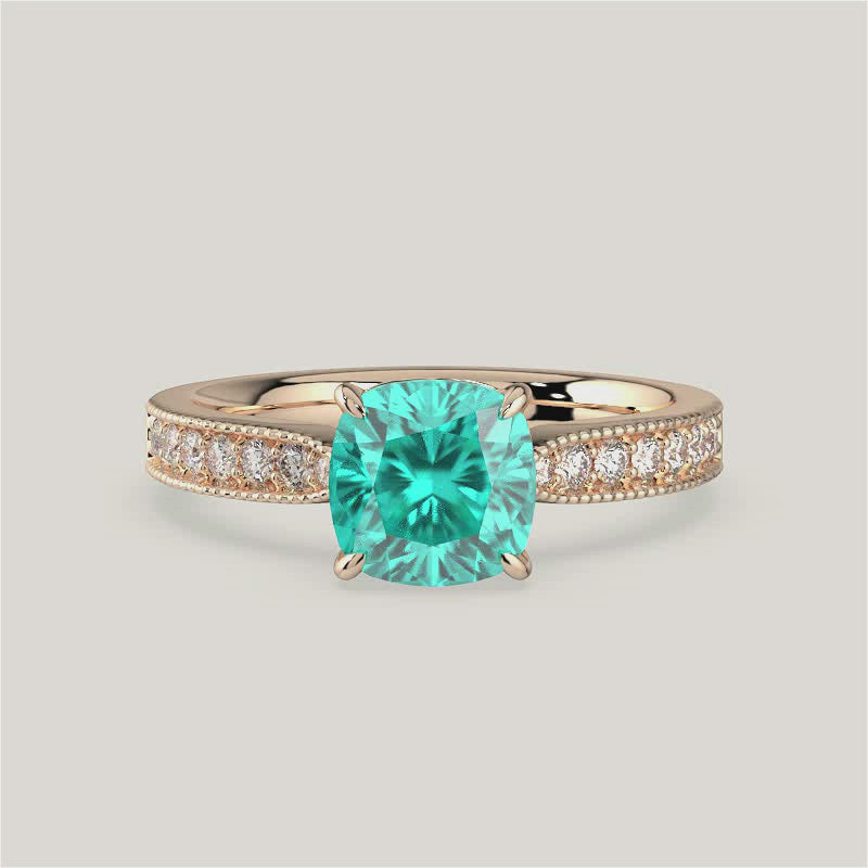 Emilie, Vintage Milgrain Cushion Cut Paraiba Pavé Ring