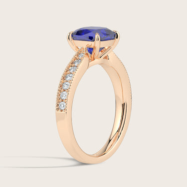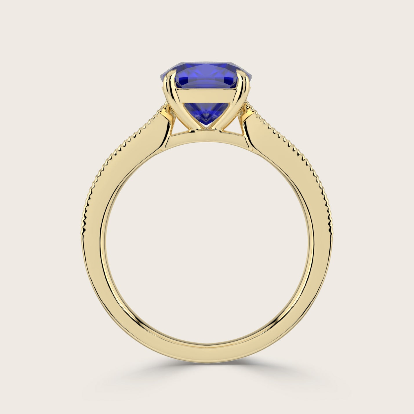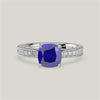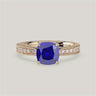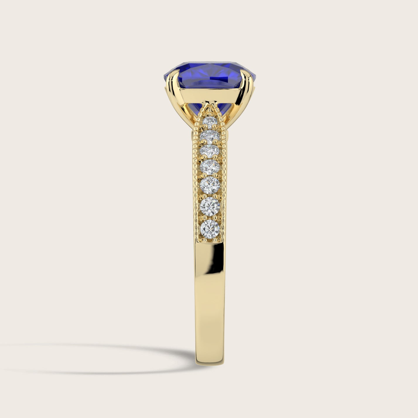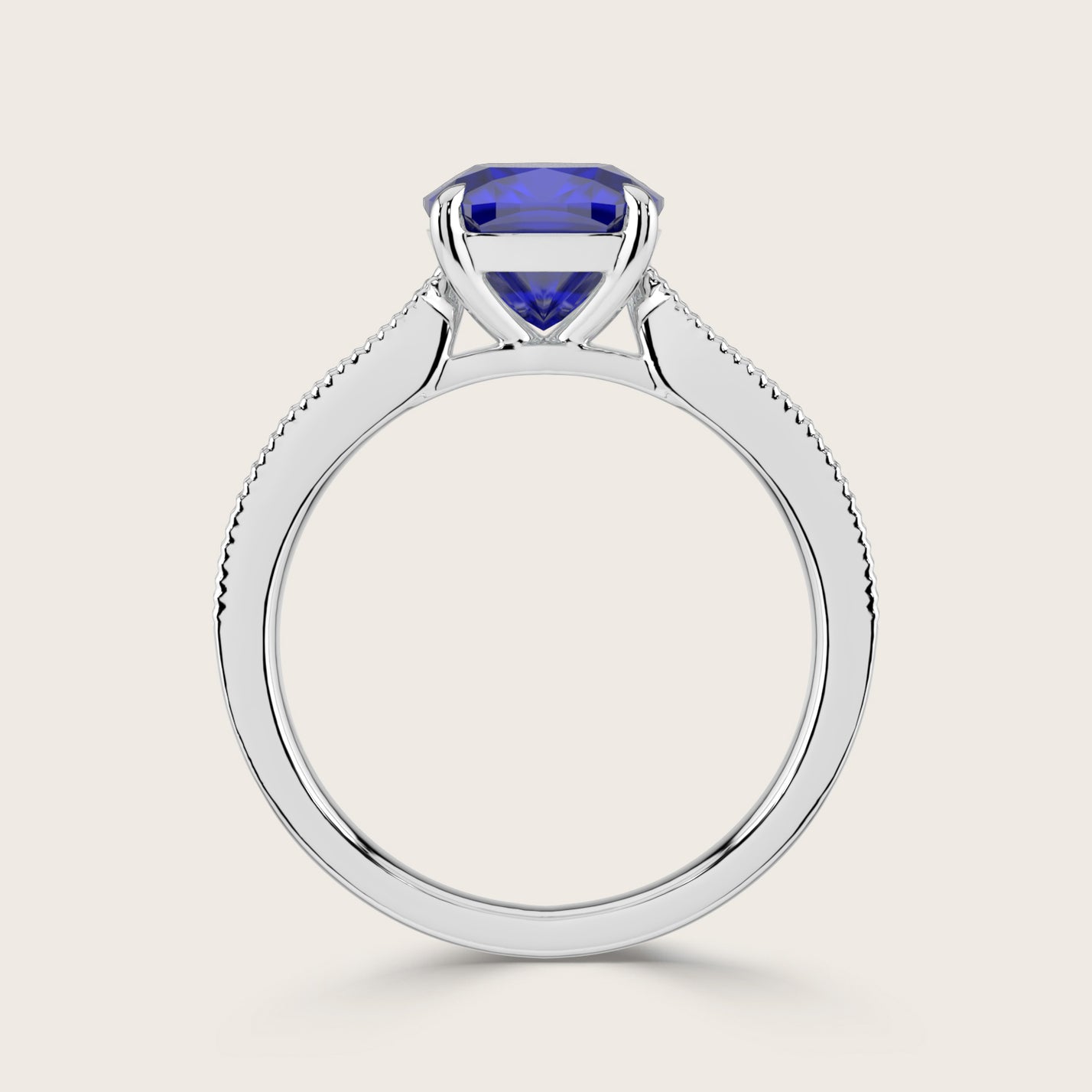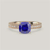 Emilie, Vintage Milgrain Cushion Cut Sapphire Pavé Ring