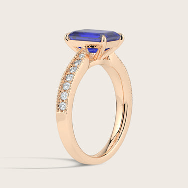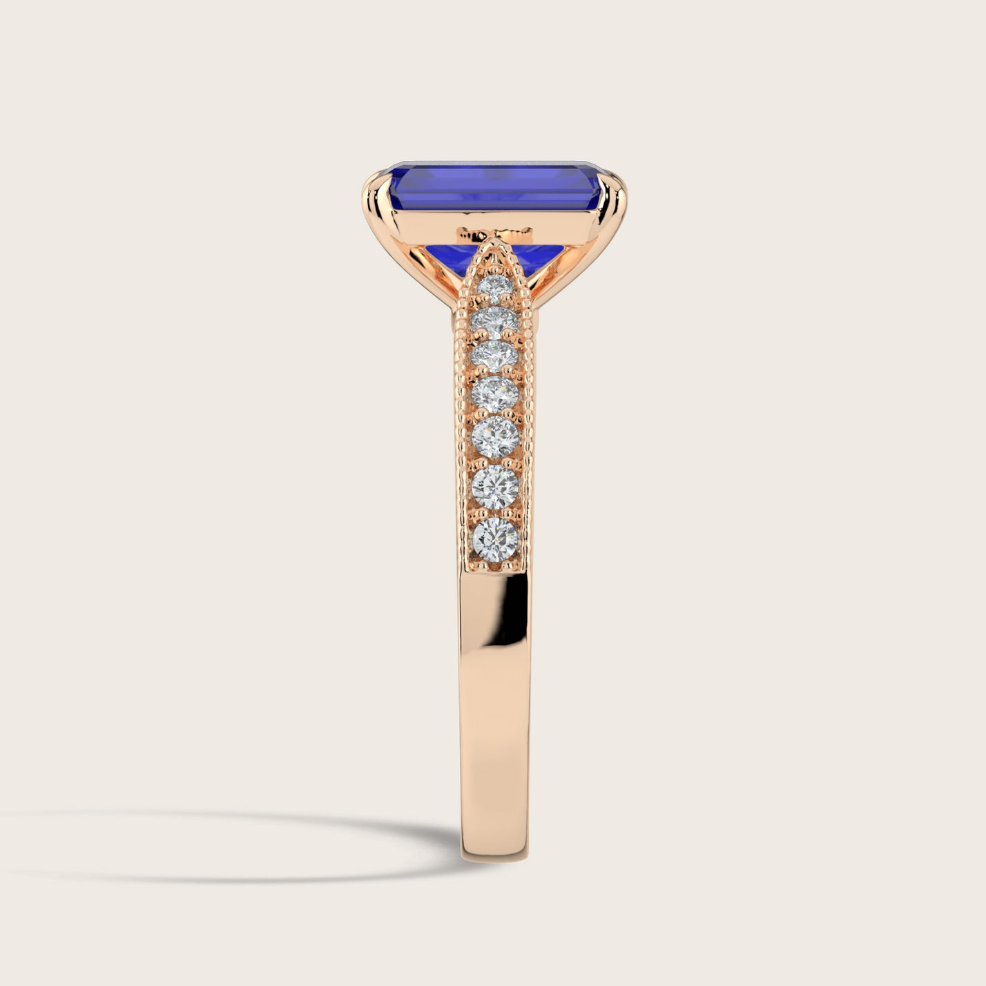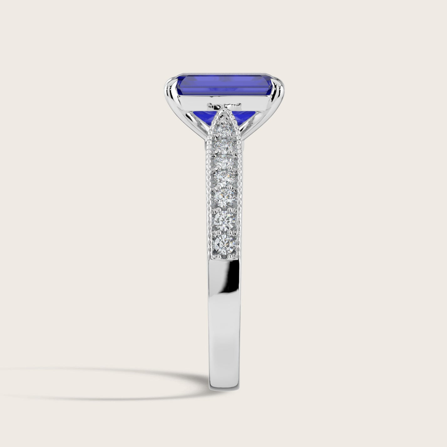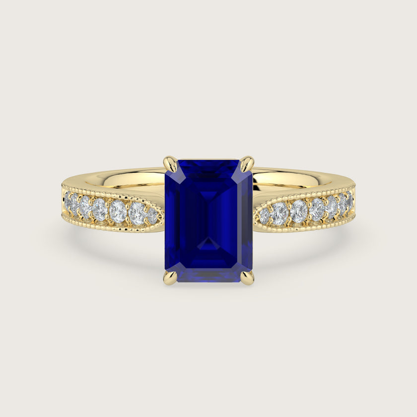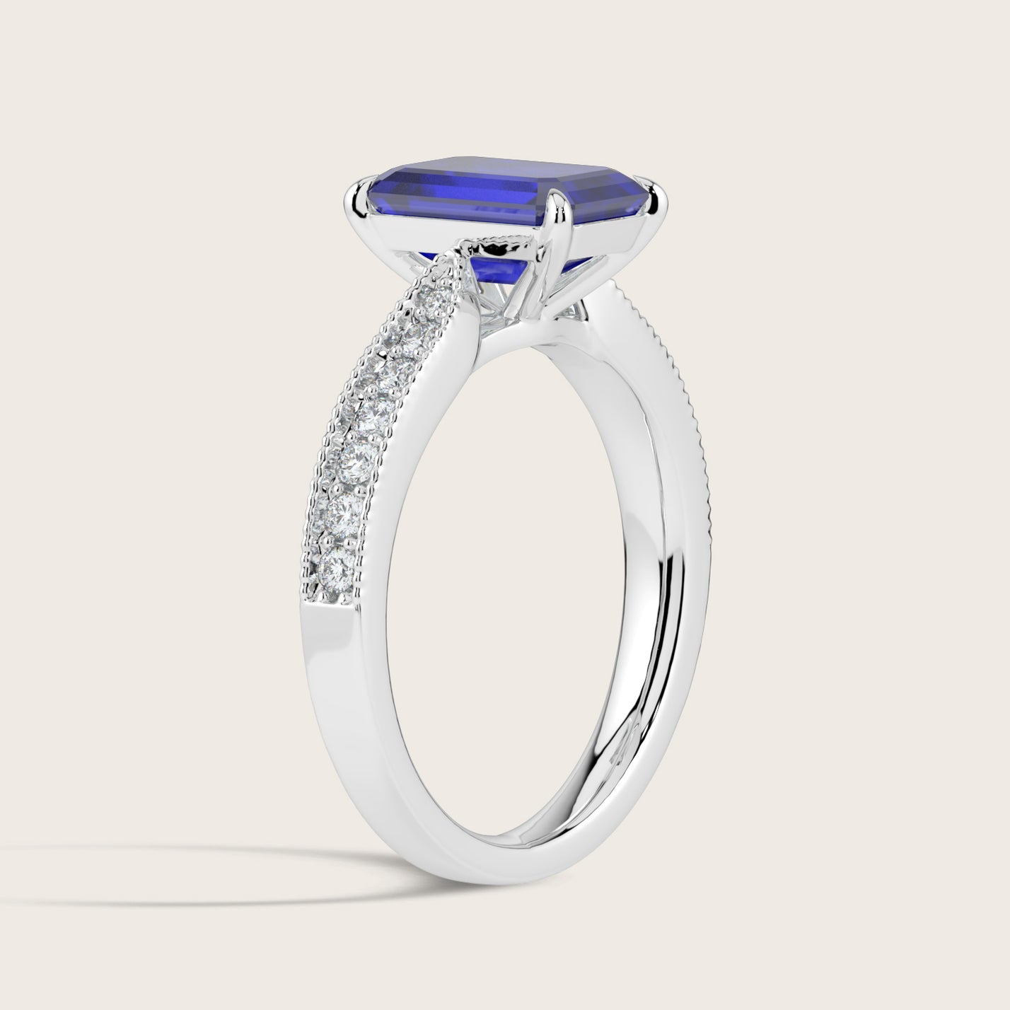 Emilie, Vintage Milgrain Emerald Cut Sapphire Pavé Ring