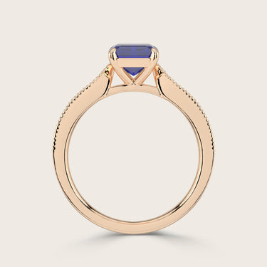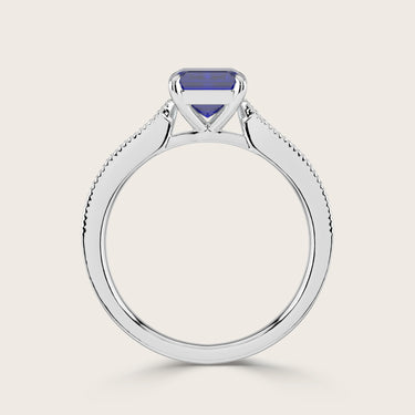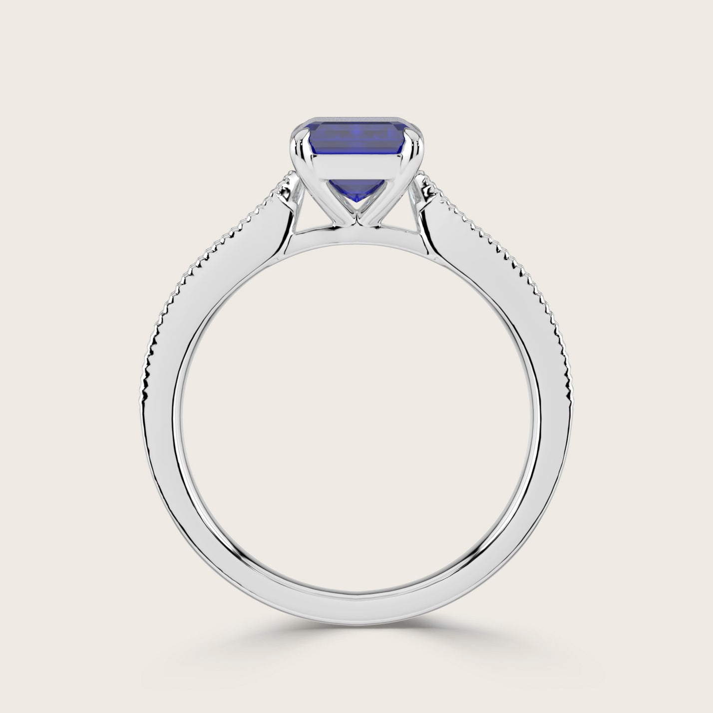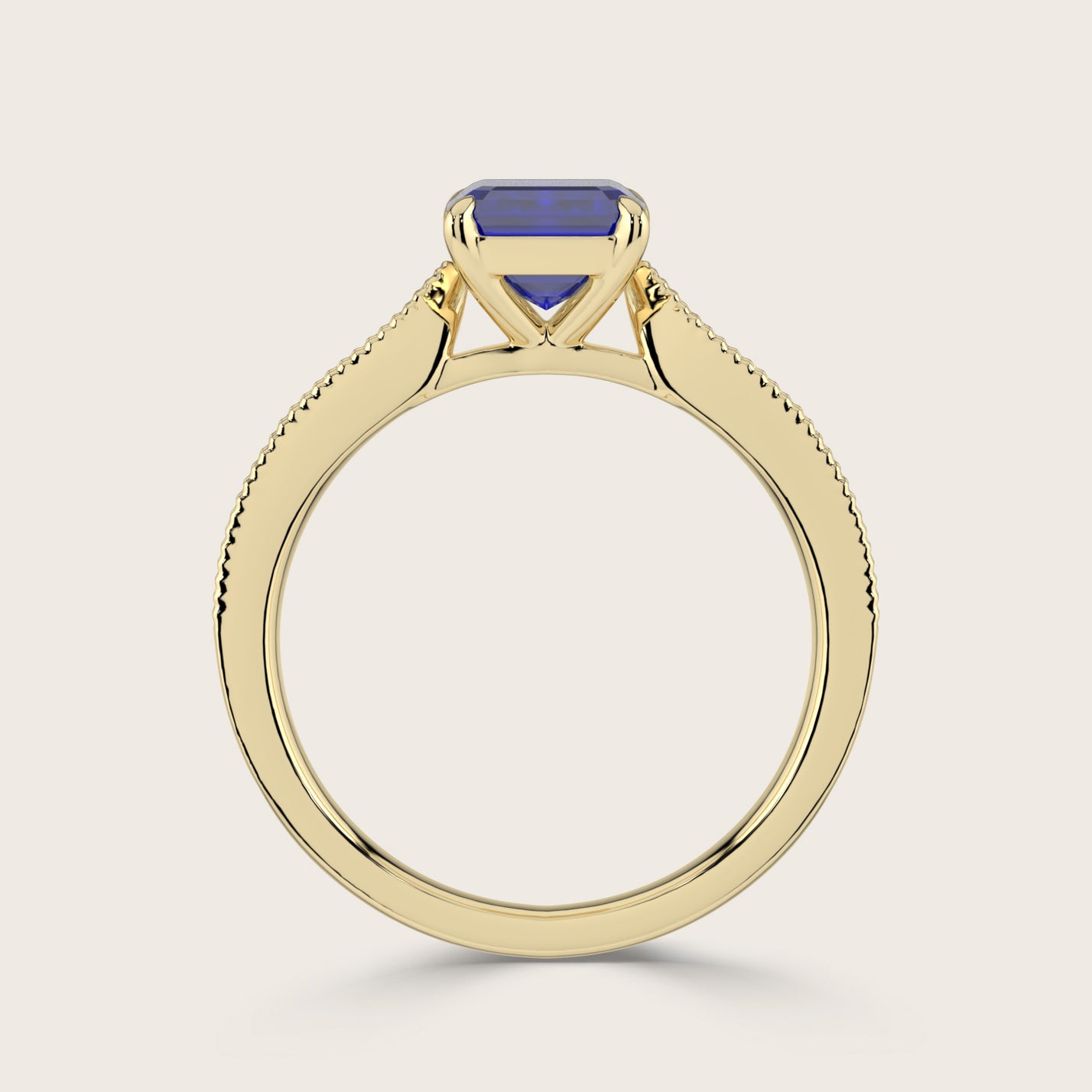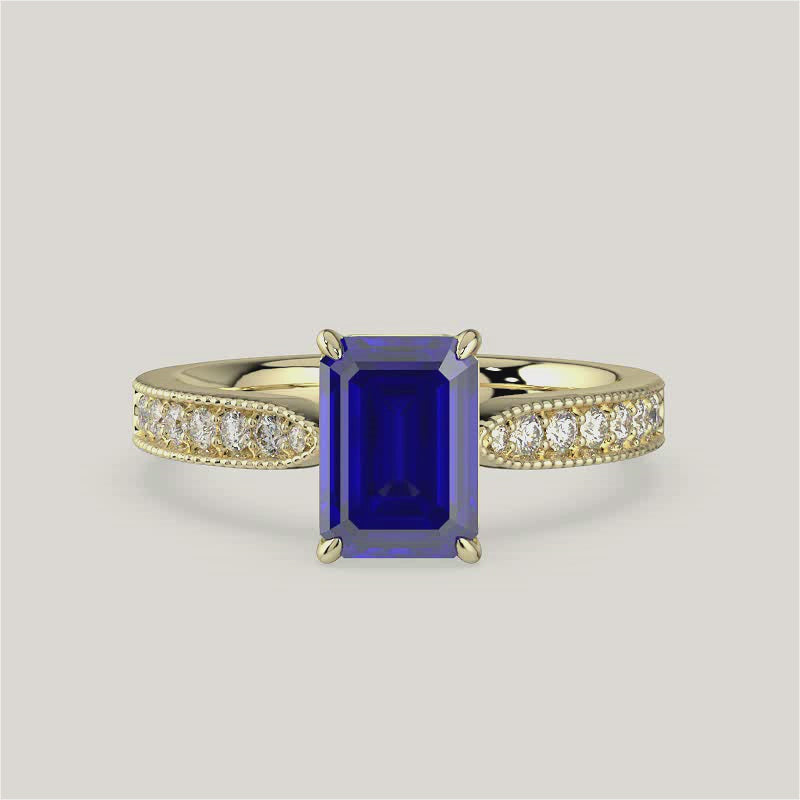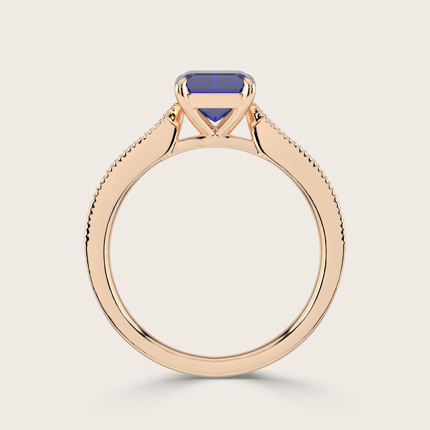 Emilie, Vintage Milgrain Emerald Cut Sapphire Pavé Ring
