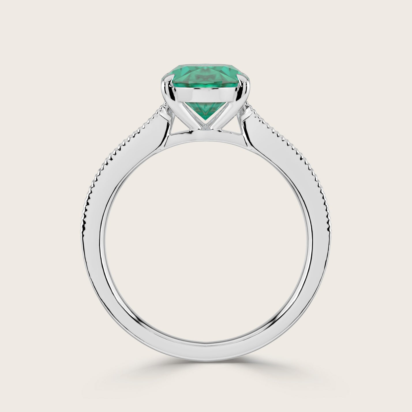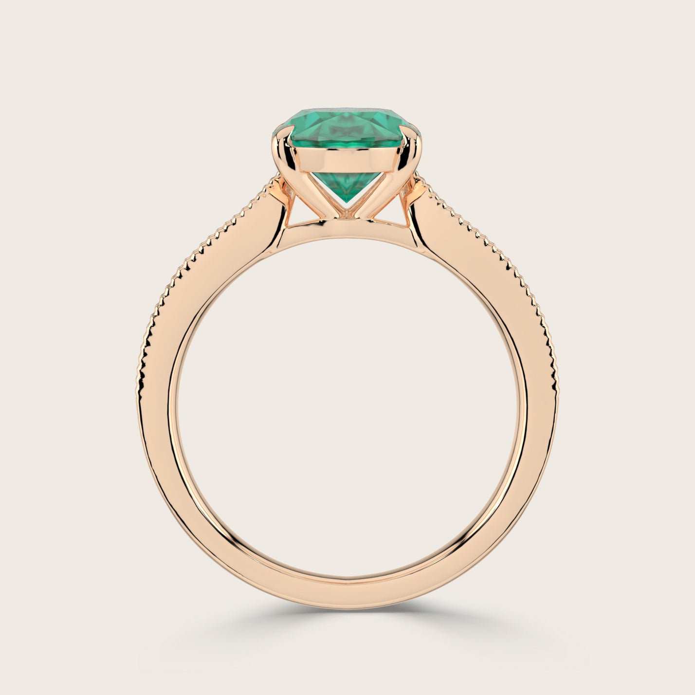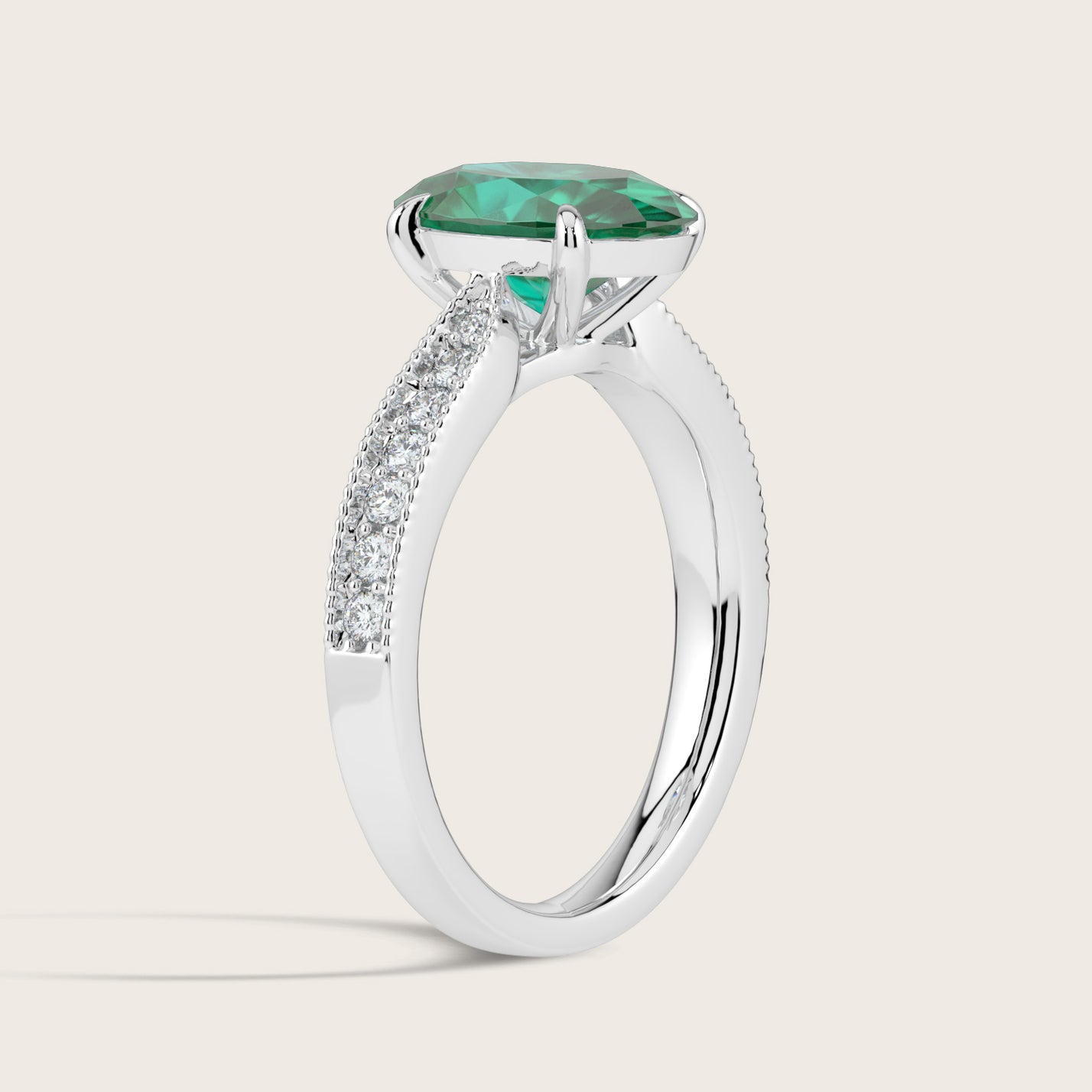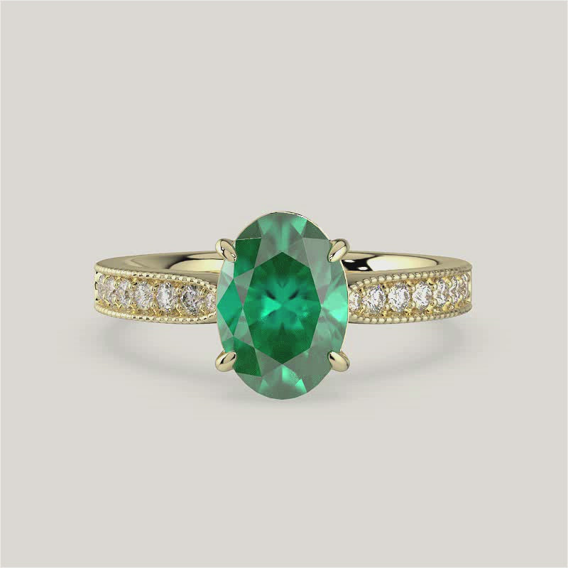 Emilie, Vintage Milgrain Oval Cut Emerald Pavé Ring