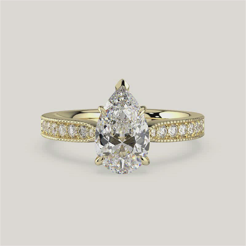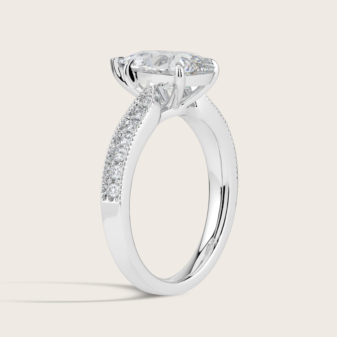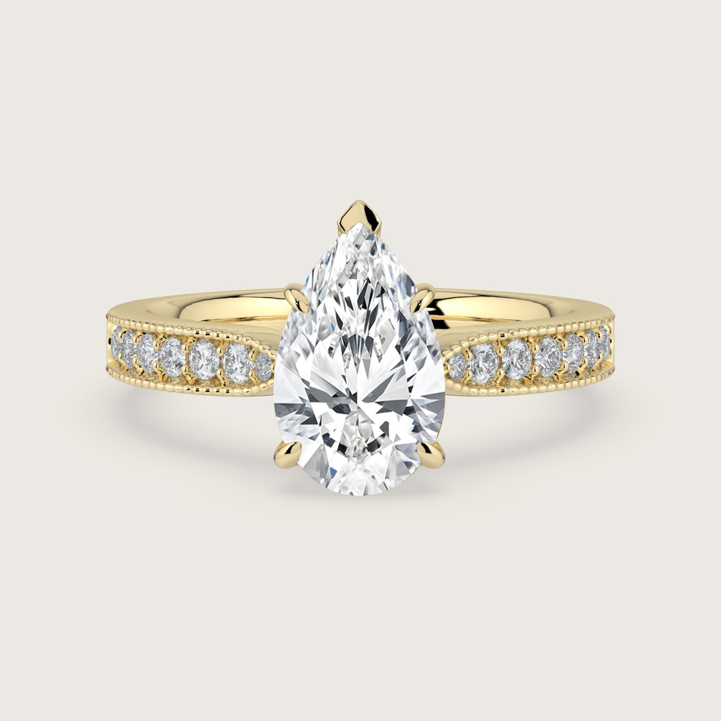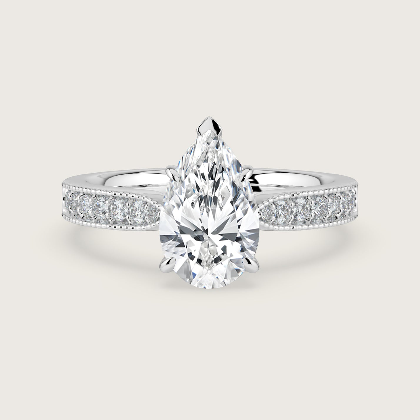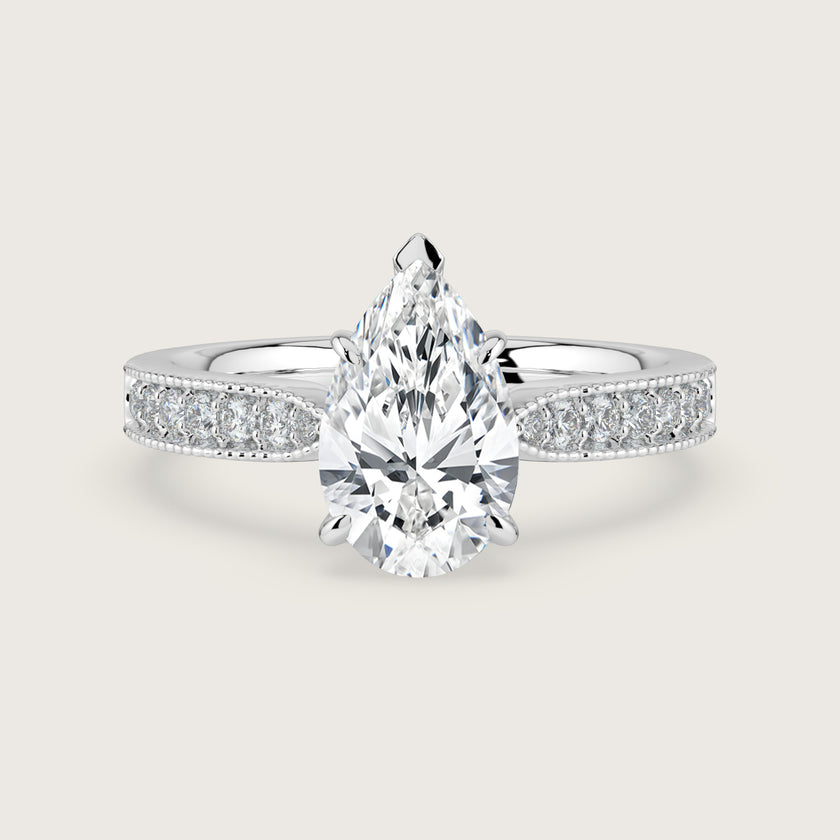 Emilie, Vintage Milgrain Pear Cut Diamond Pavé Ring