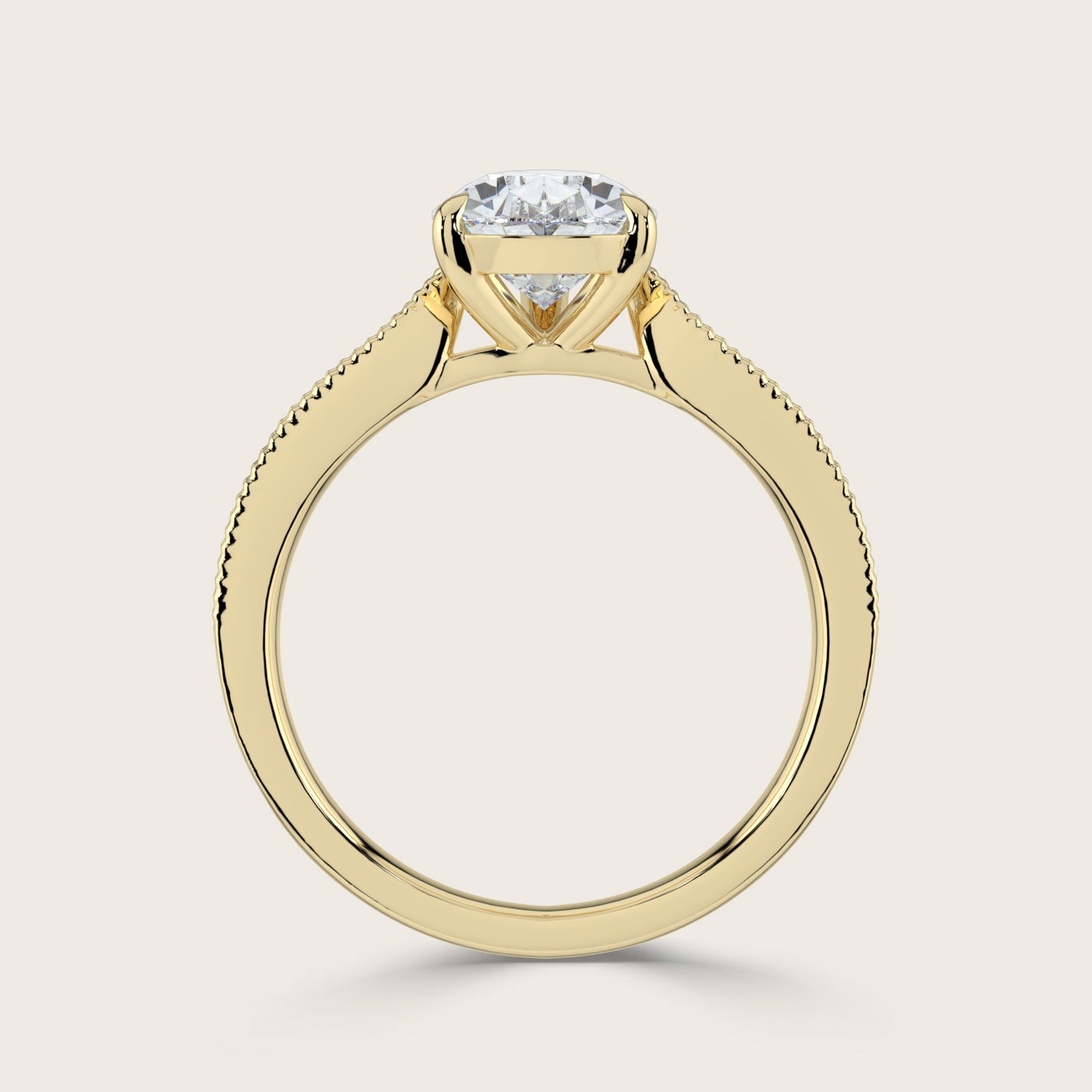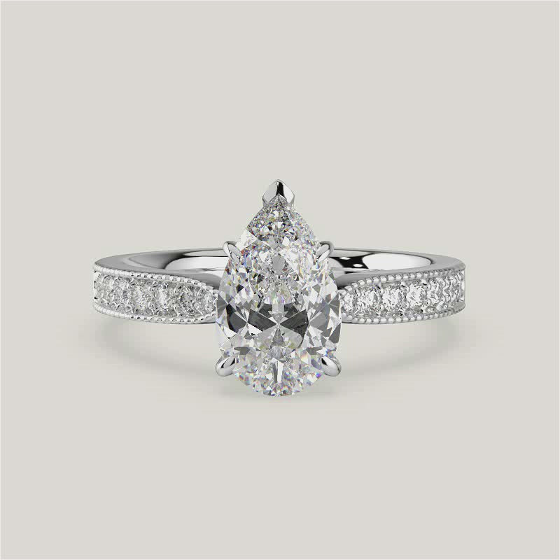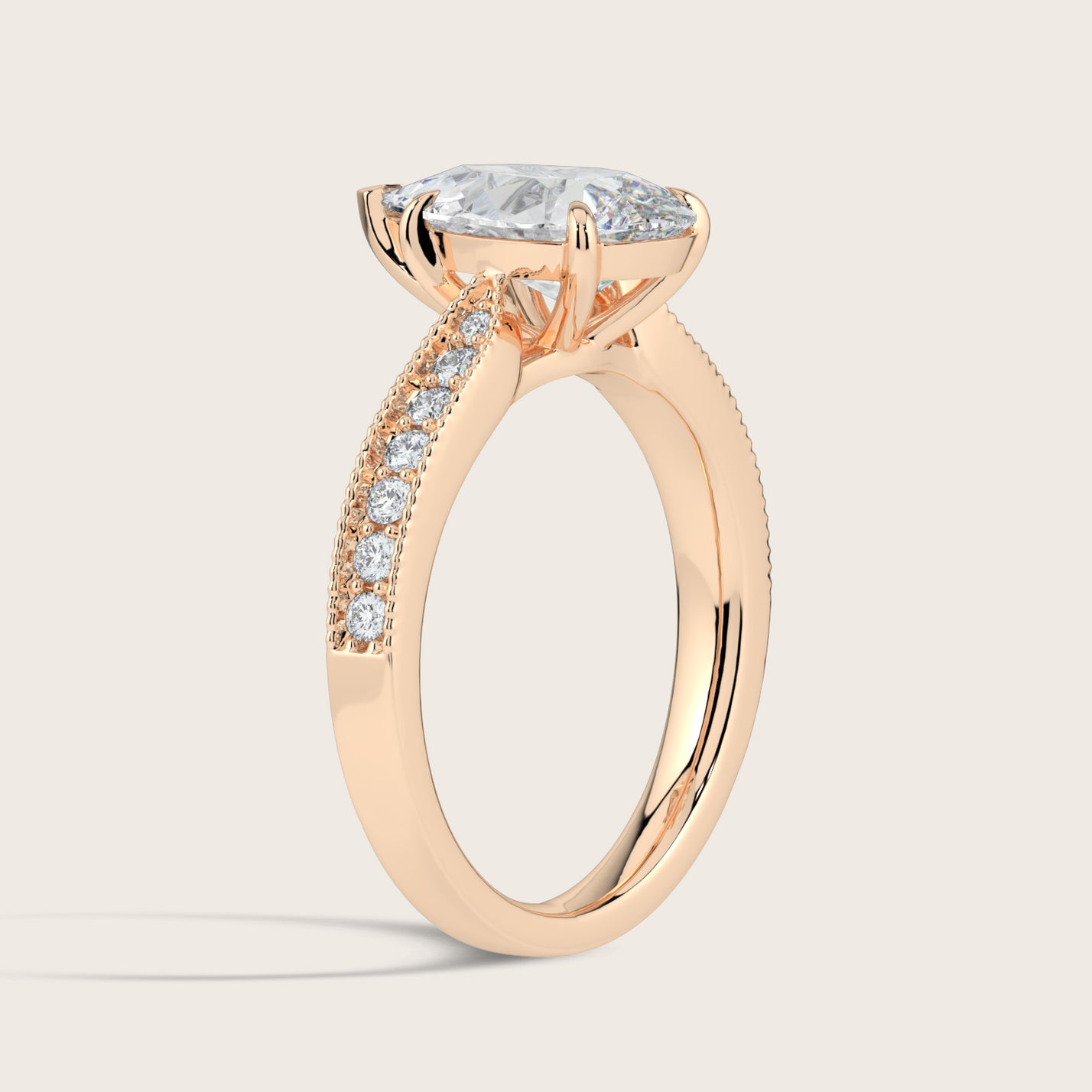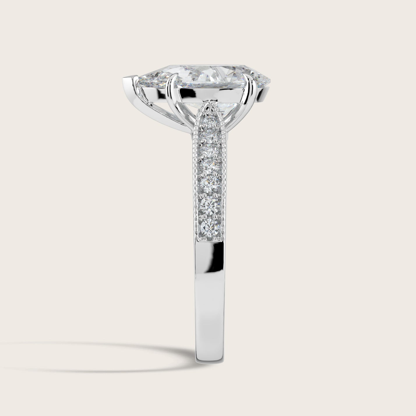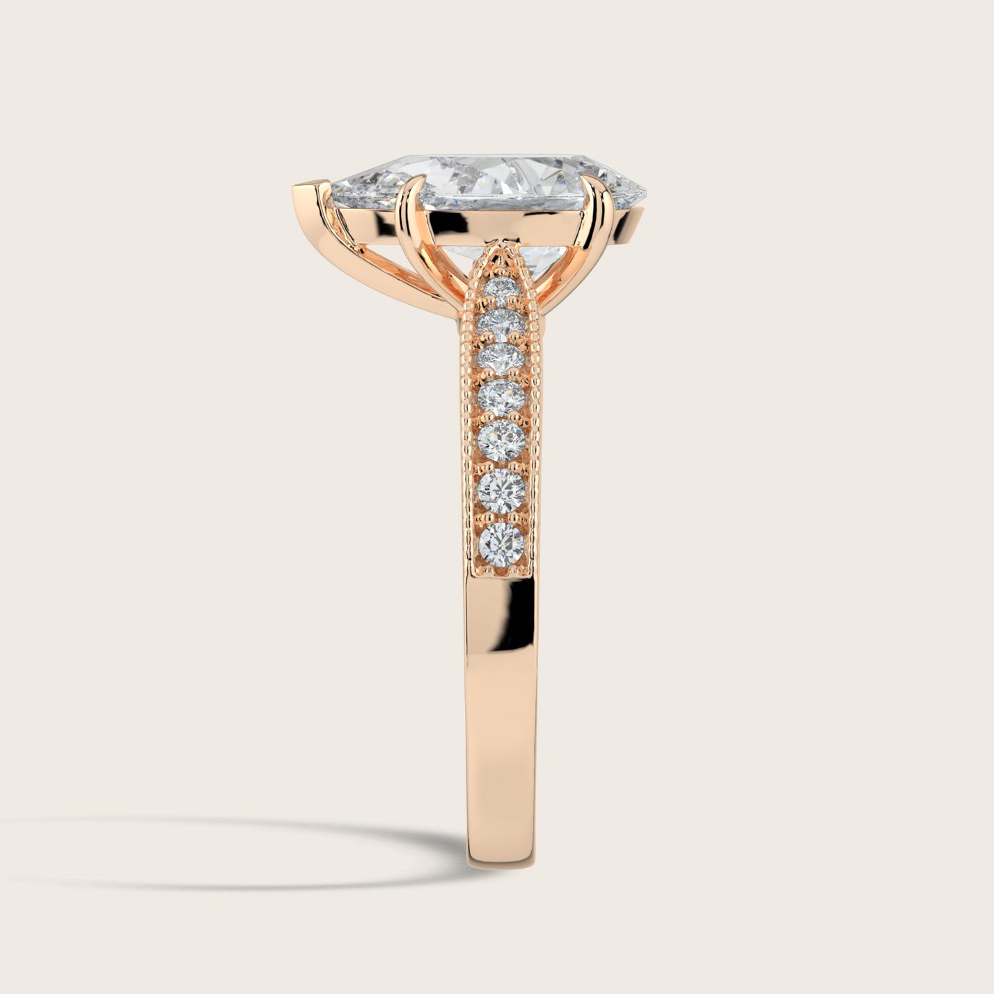 Emilie, Vintage Milgrain Pear Cut Diamond Pavé Ring