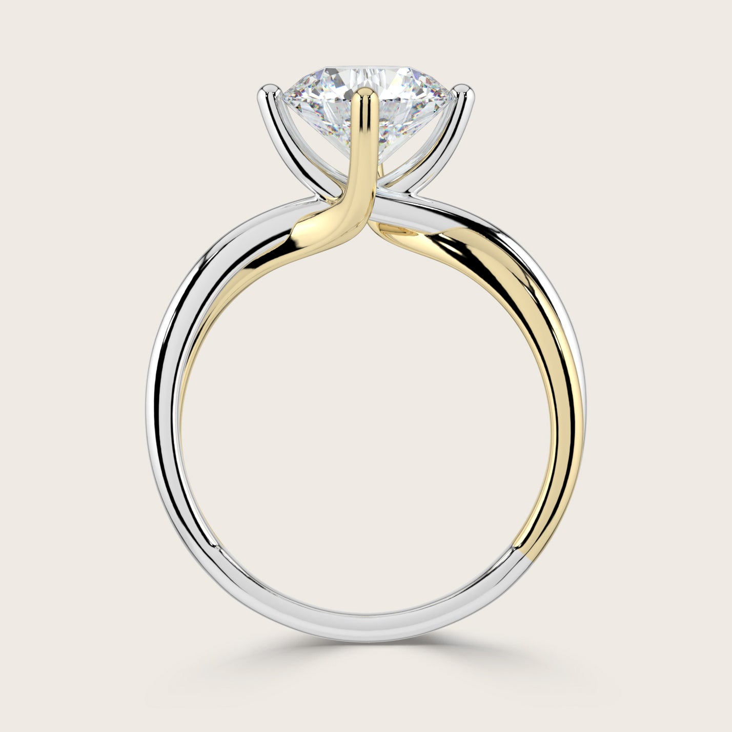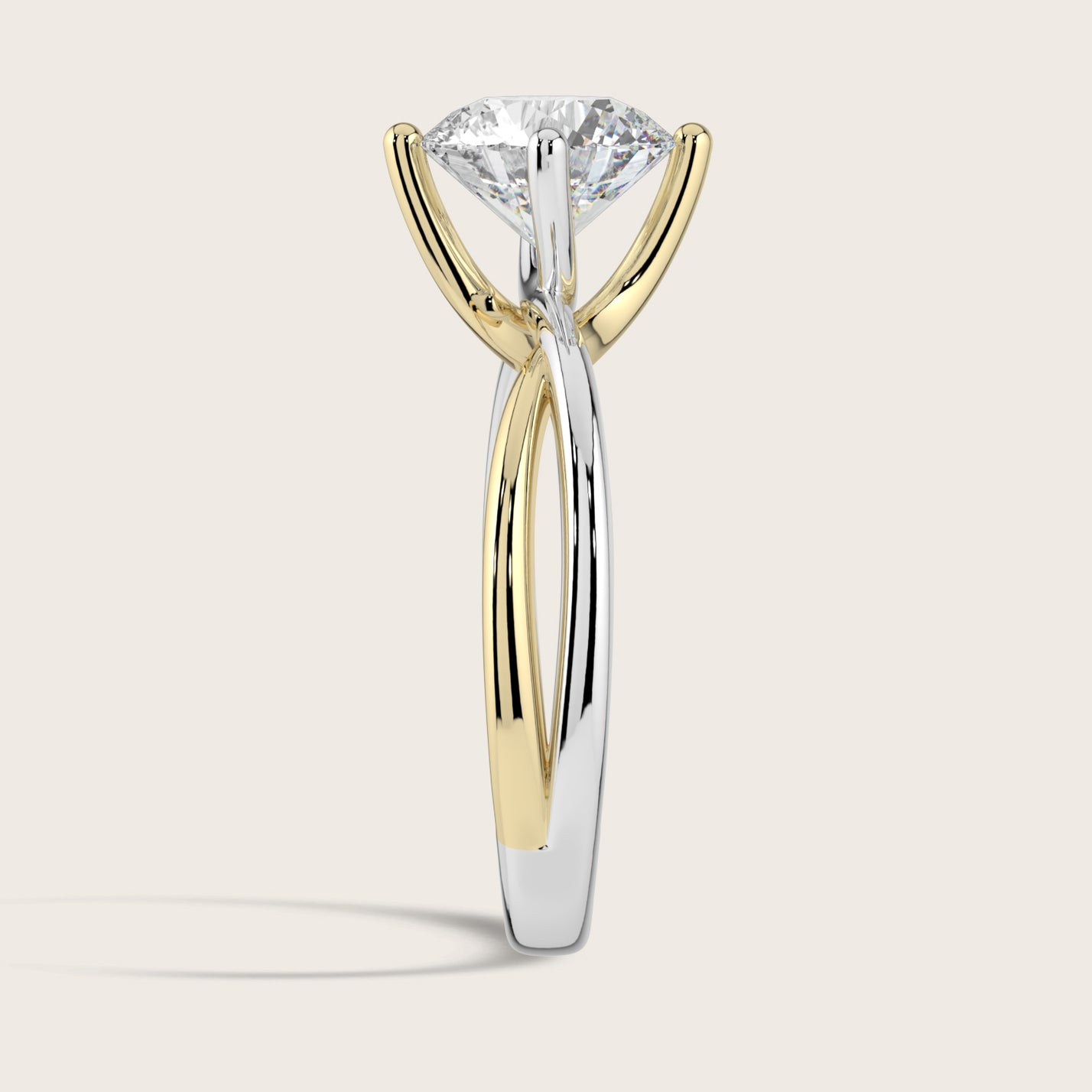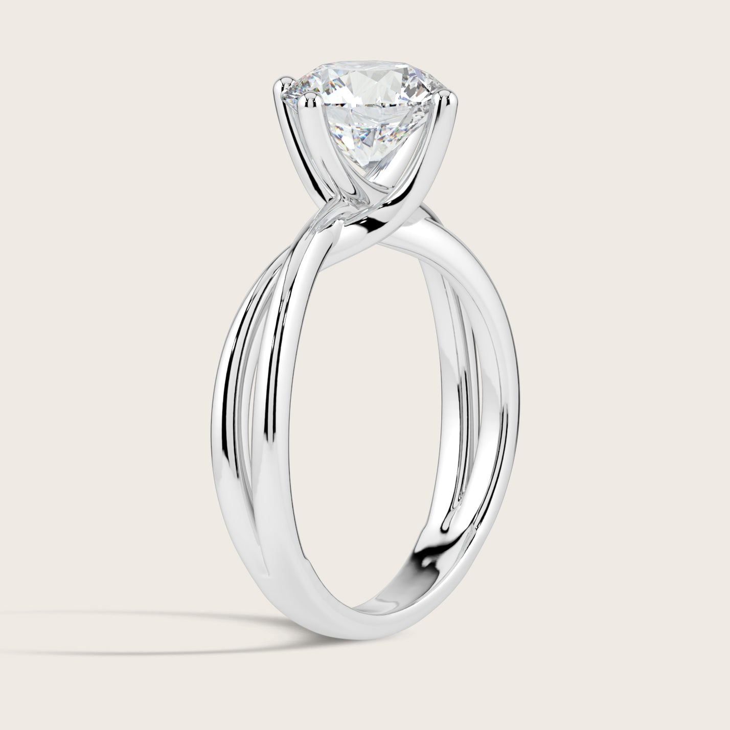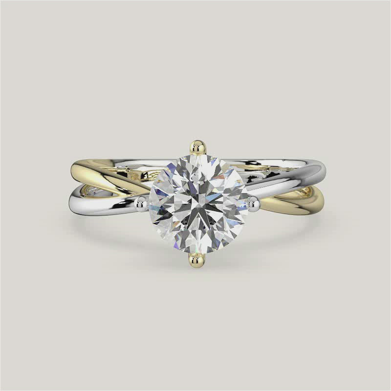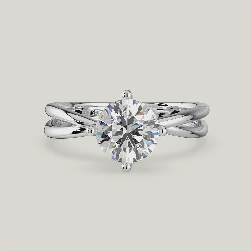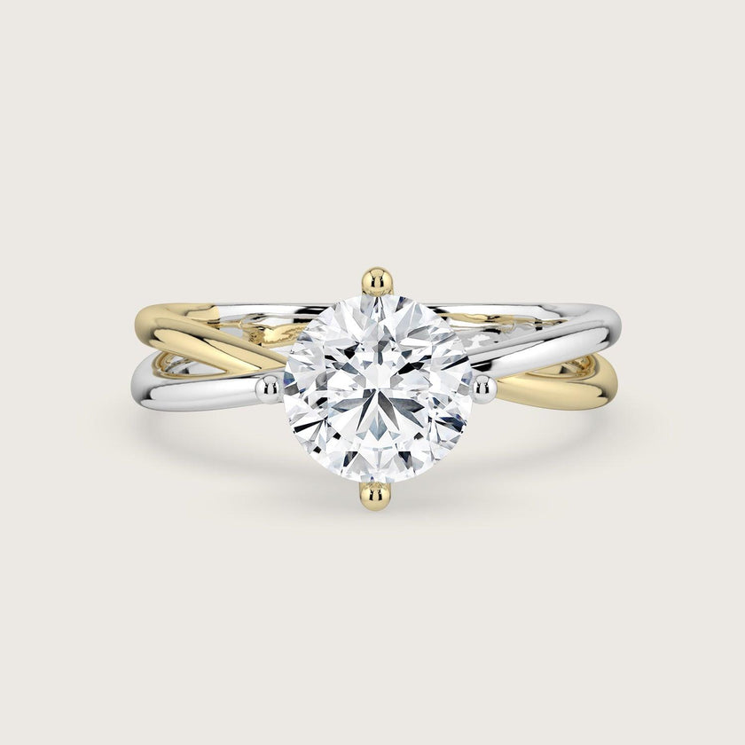 Evelyn, Round Brilliant Diamond Crossover Solitaire Ring