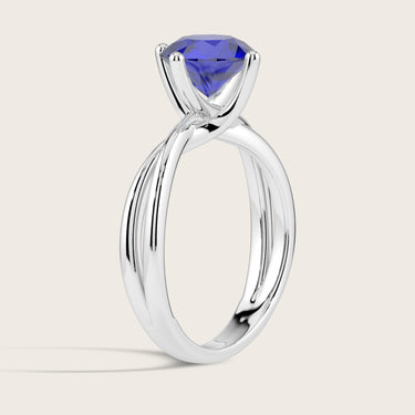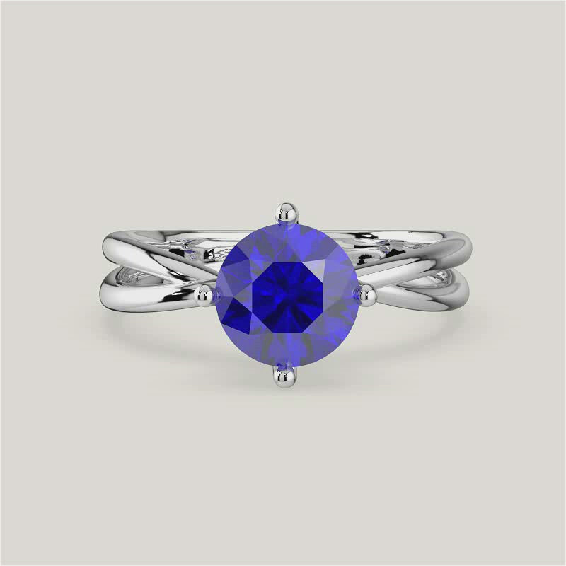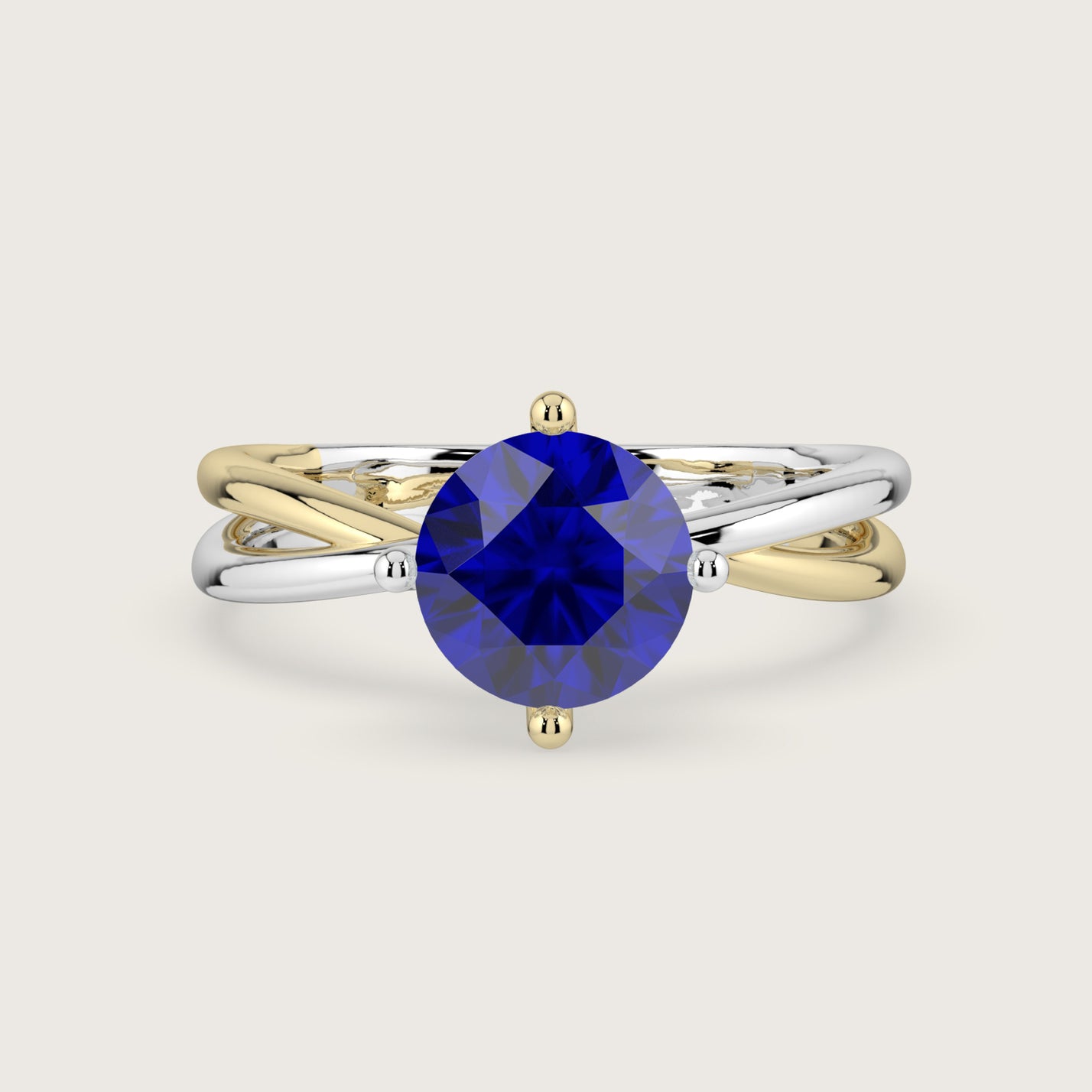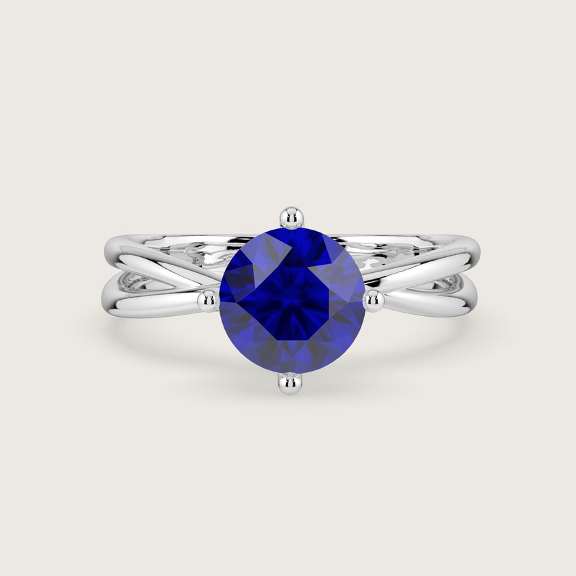 Evelyn, Round Brilliant Sapphire Crossover Solitaire Ring
