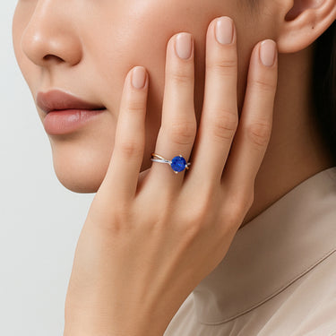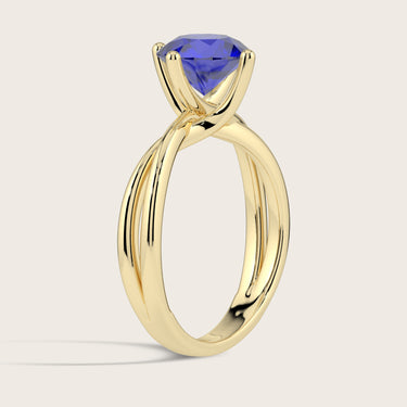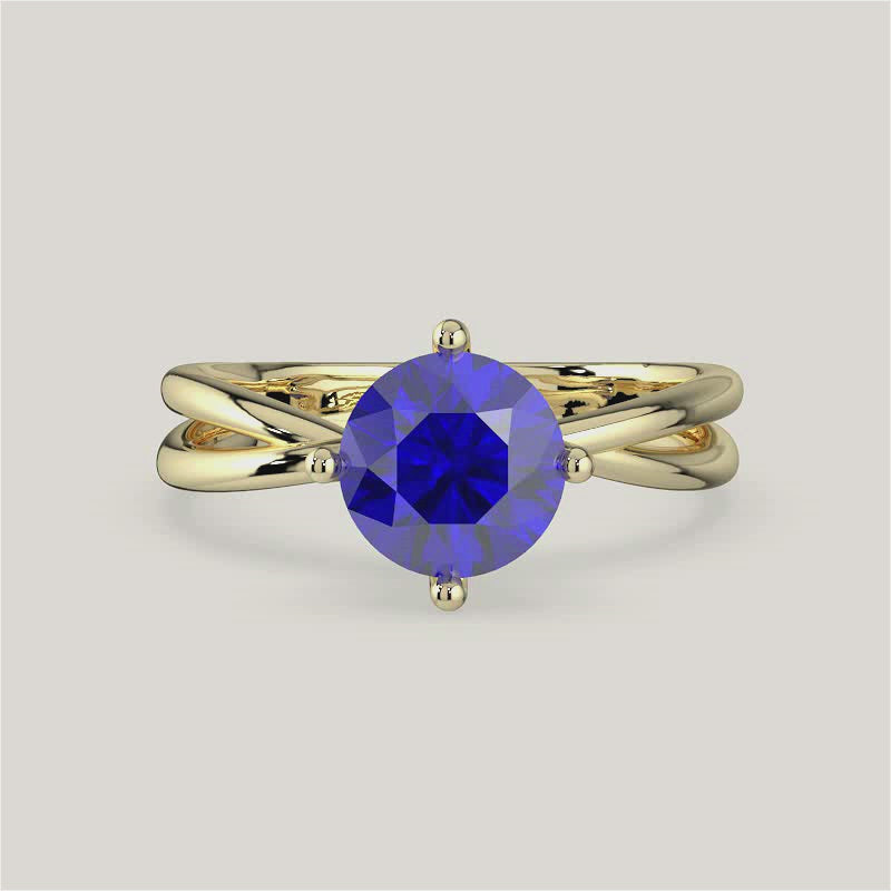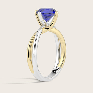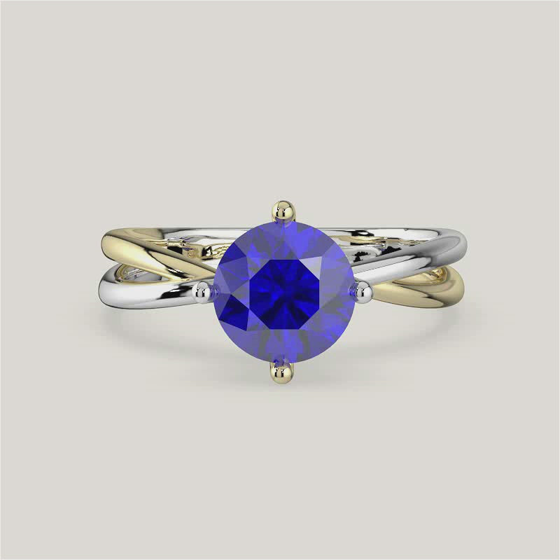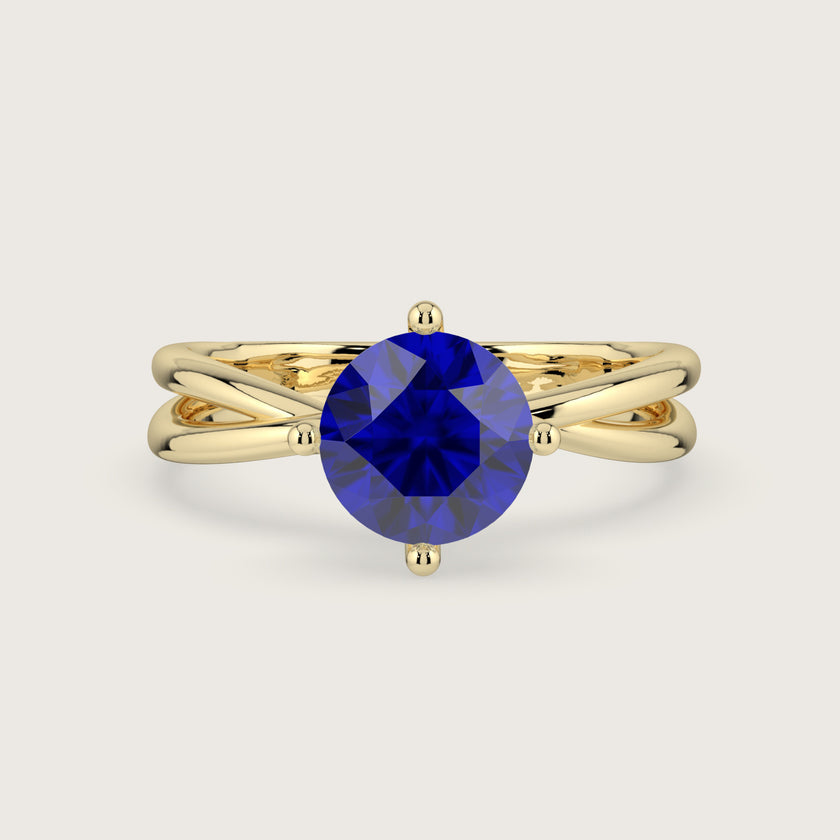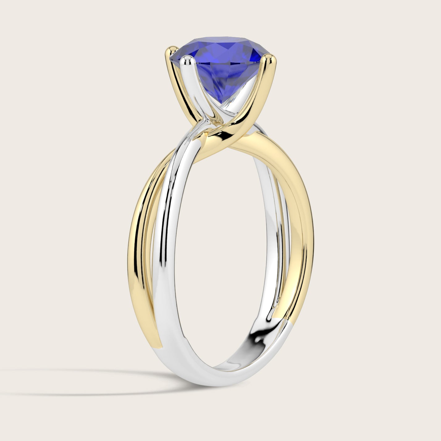 Evelyn, Round Brilliant Sapphire Crossover Solitaire Ring