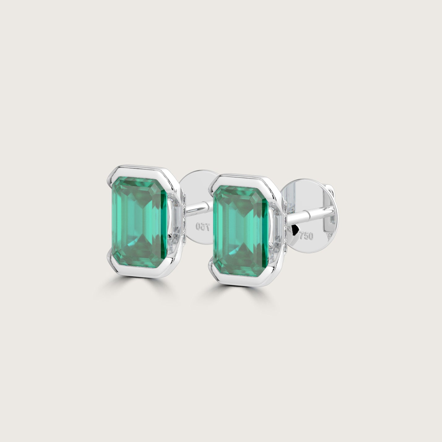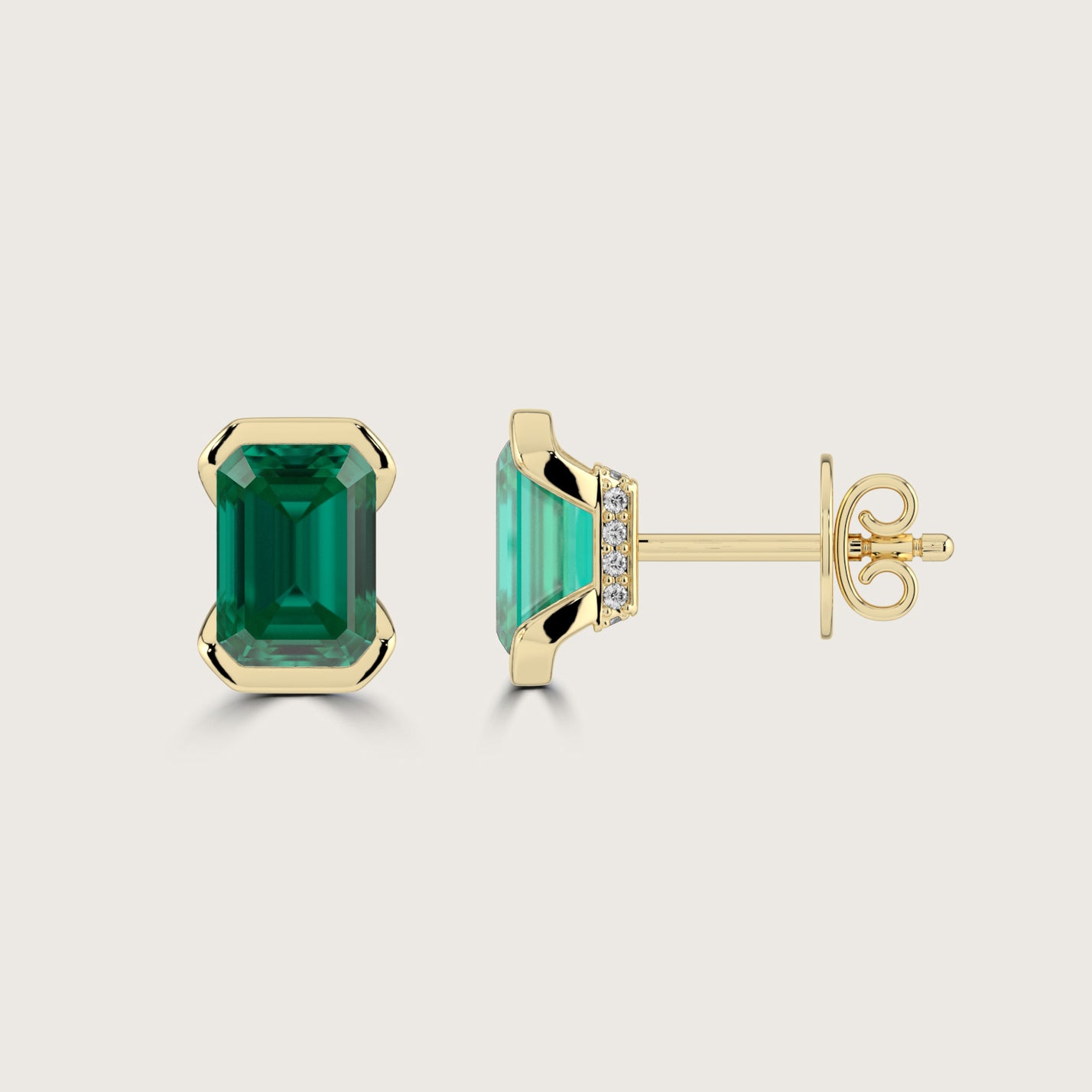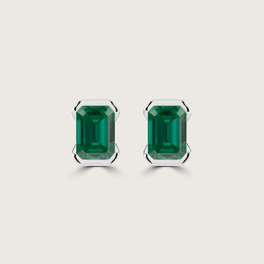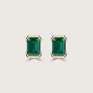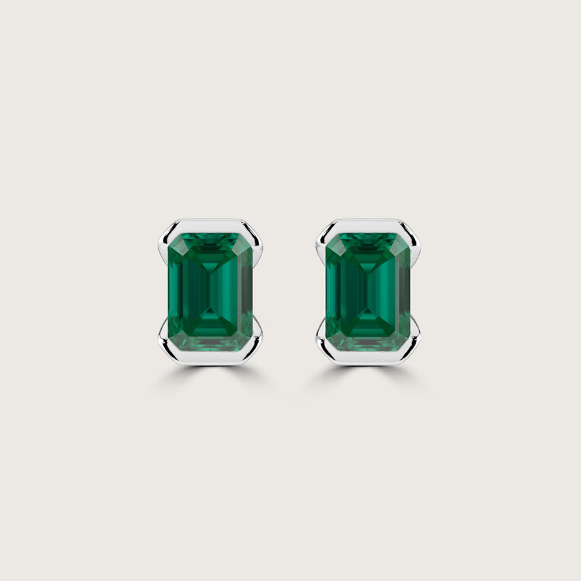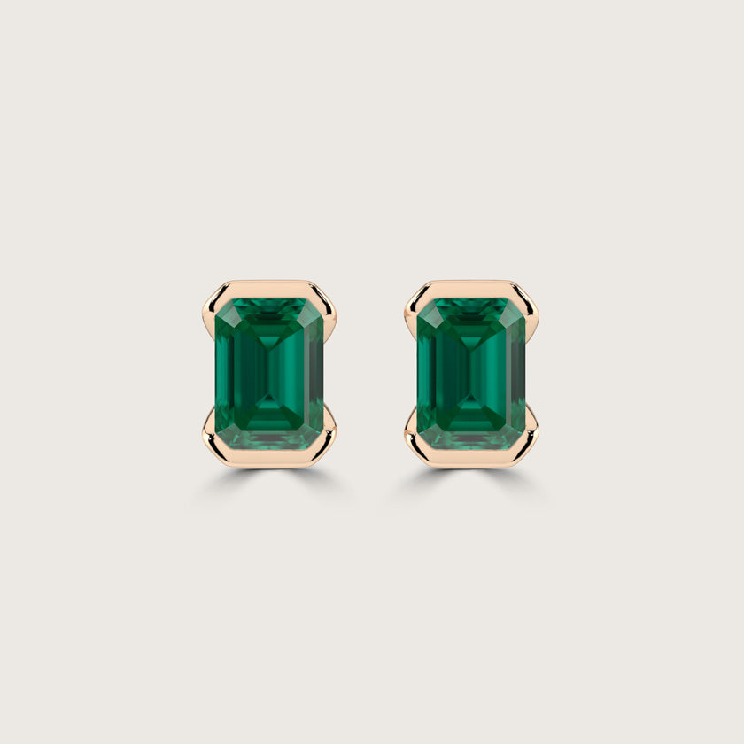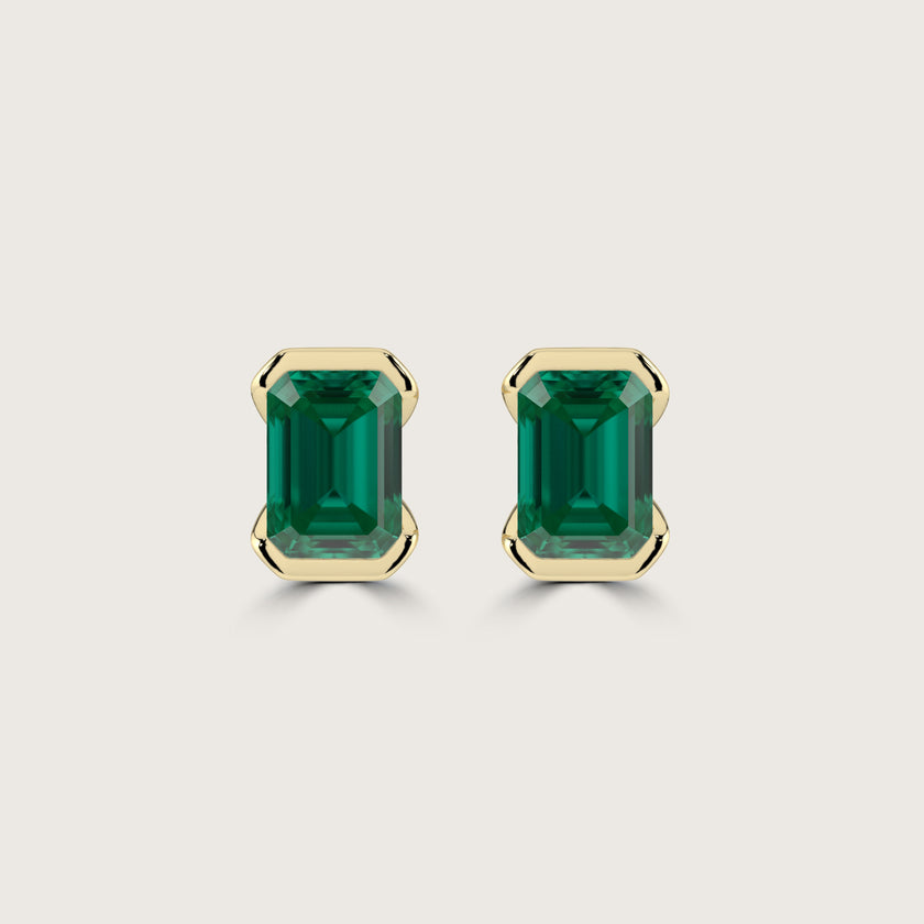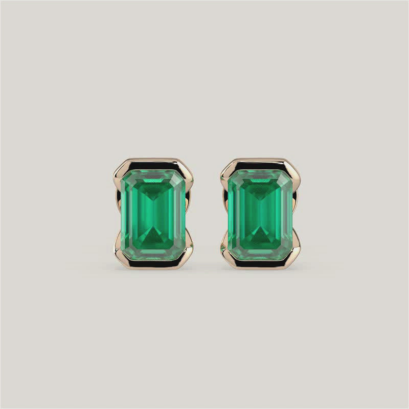 Half Bezel Set Emerald Cut Emerald Stud Earrings
