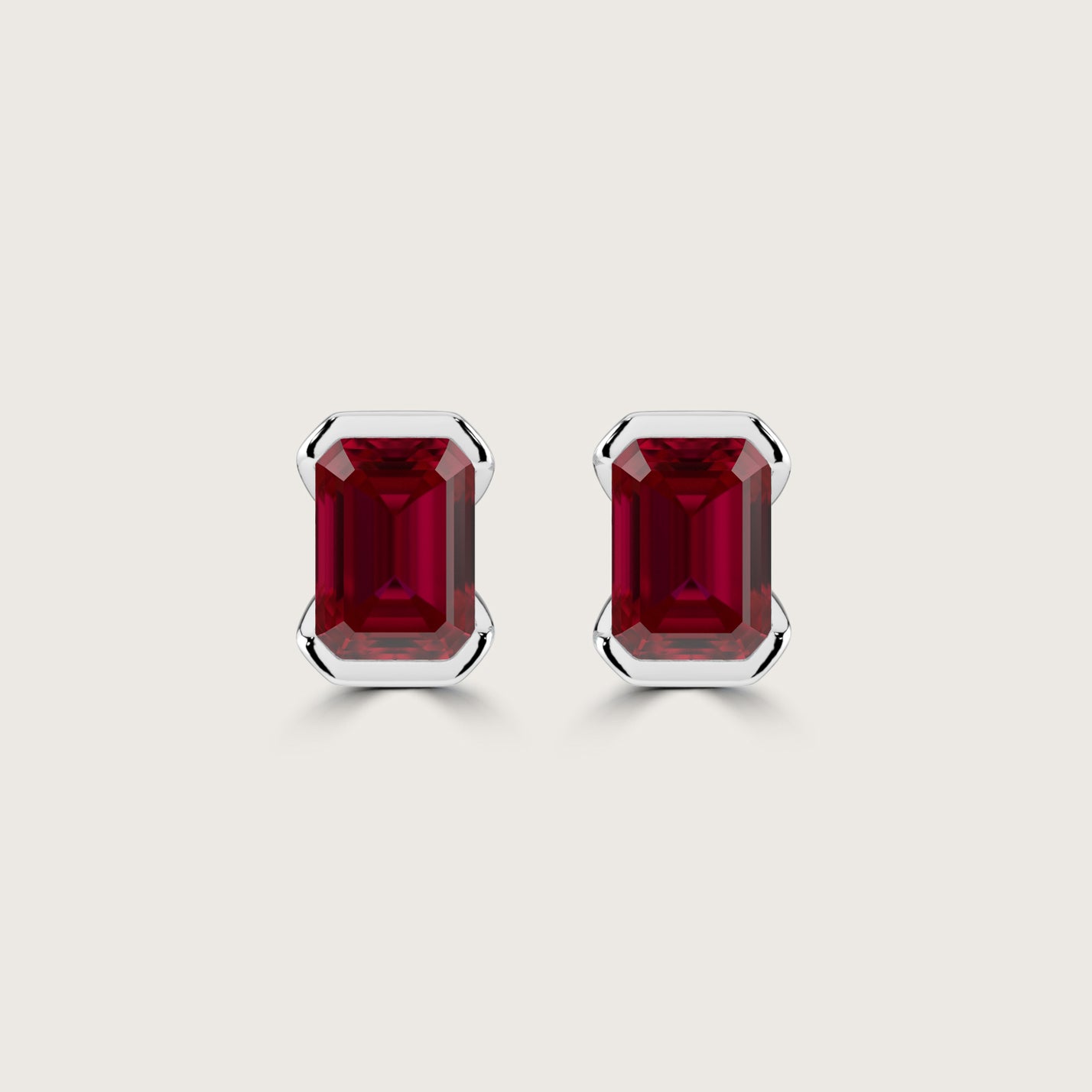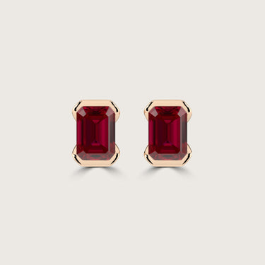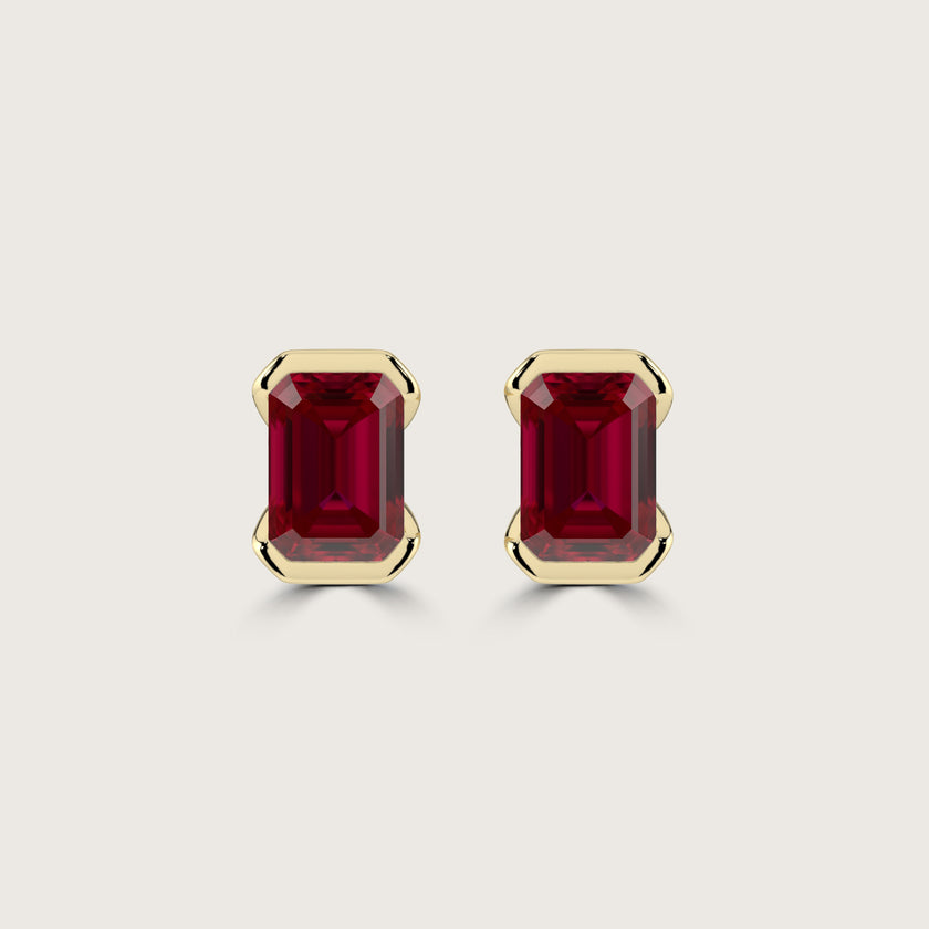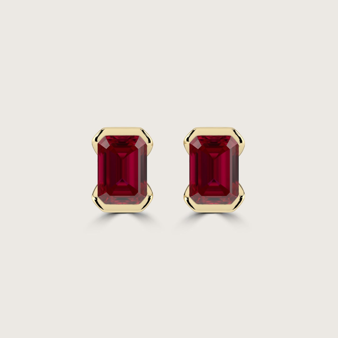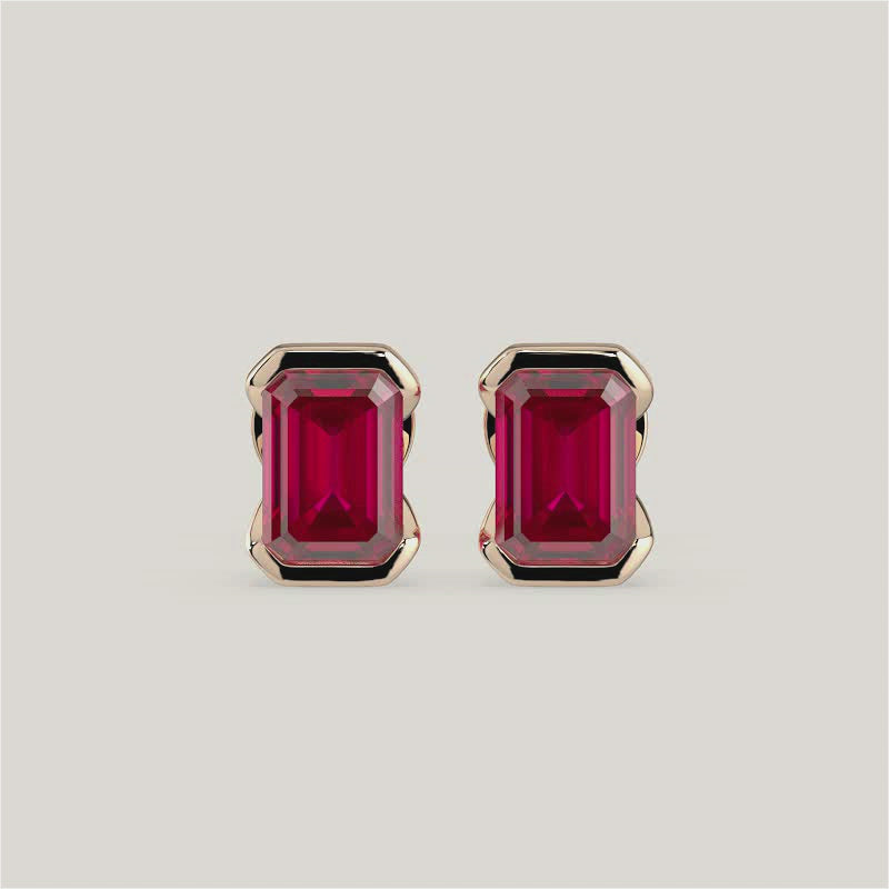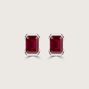 Half Bezel Set Emerald Cut Ruby Stud Earrings