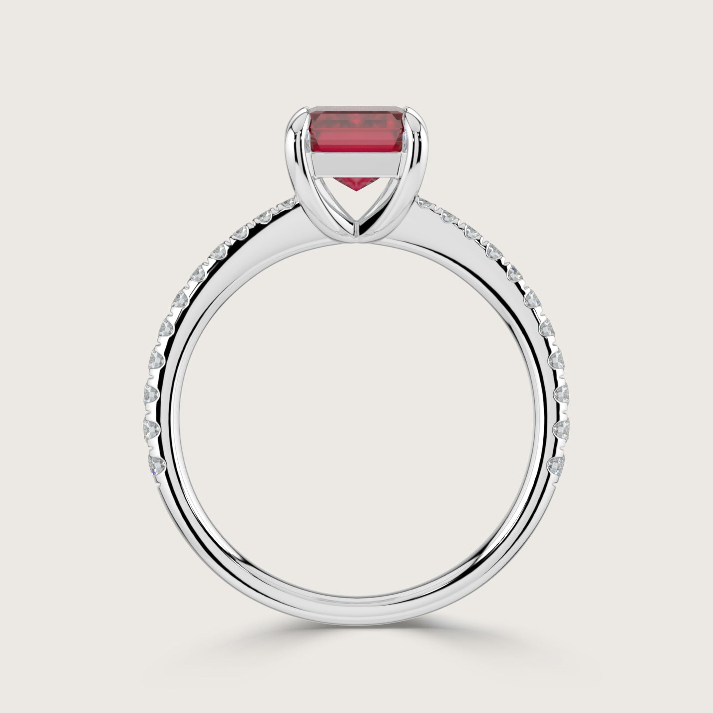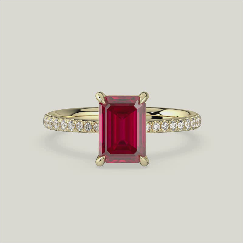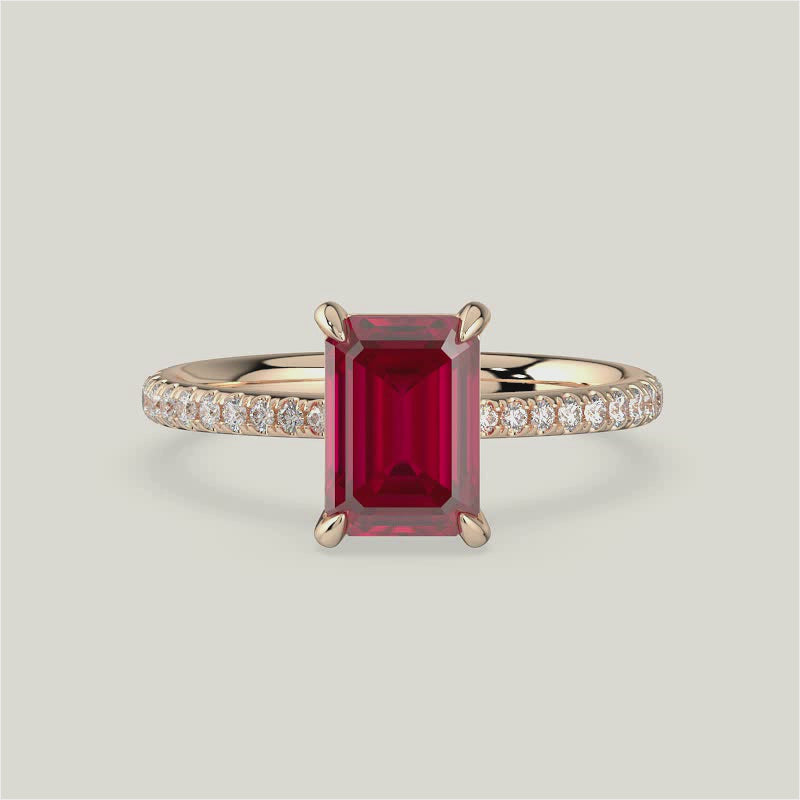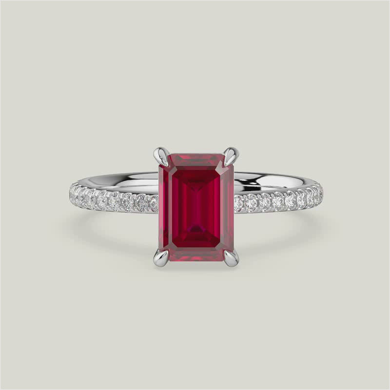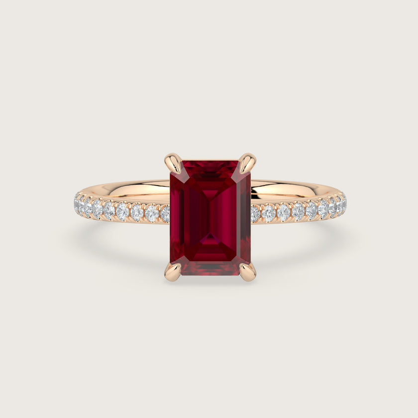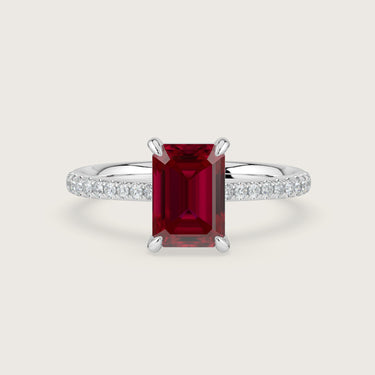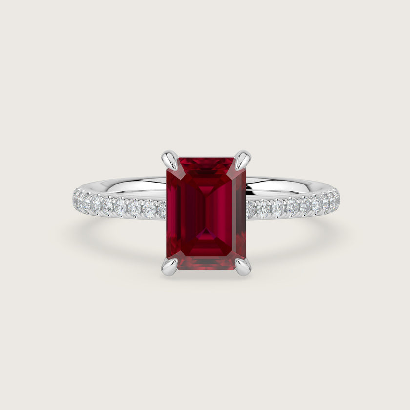 Helena, Emerald Cut Ruby Pavé Ring