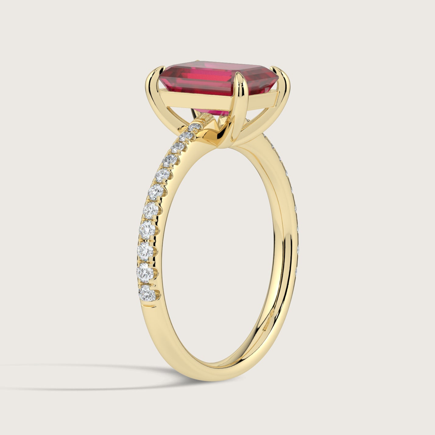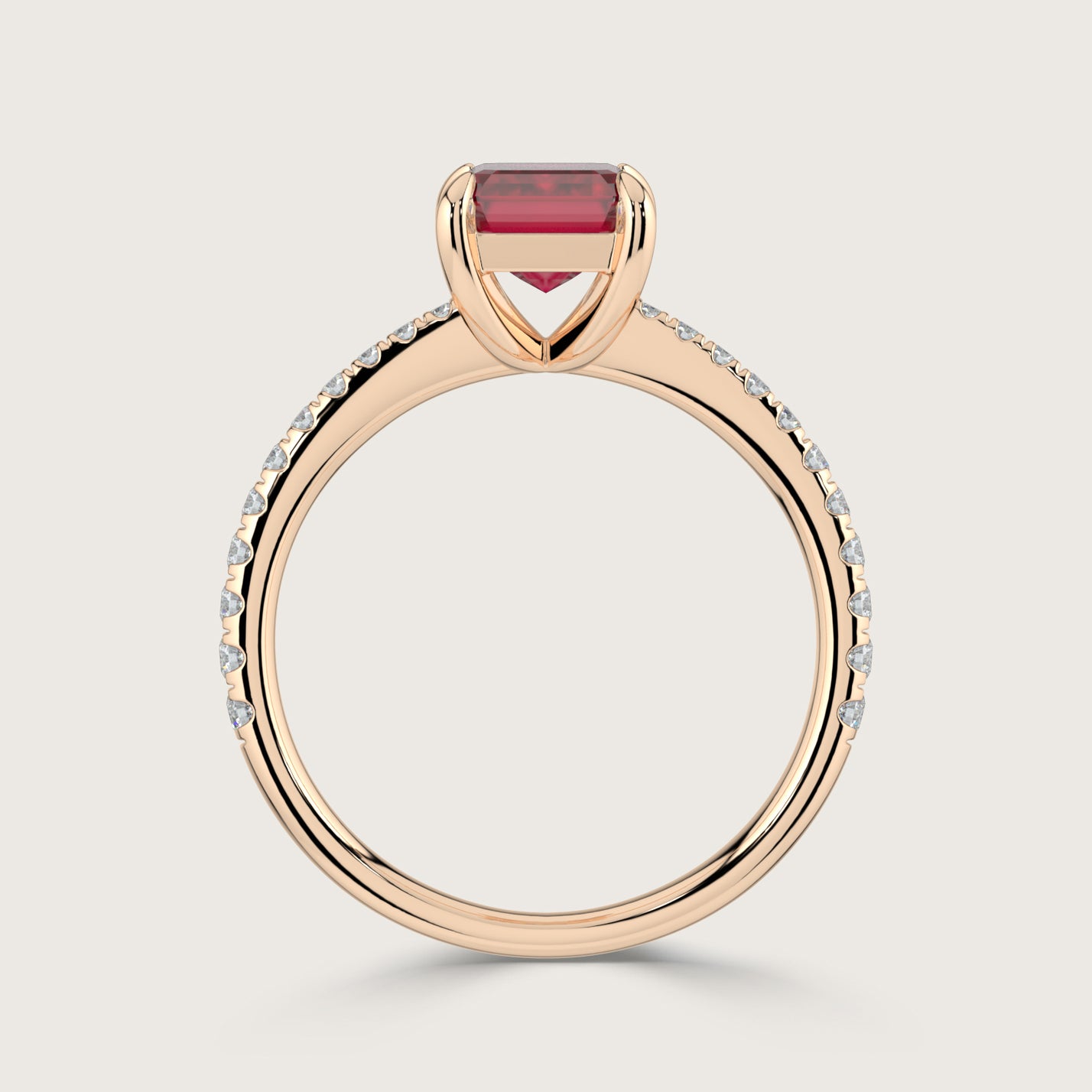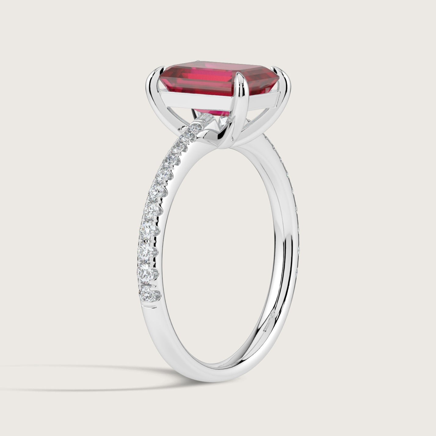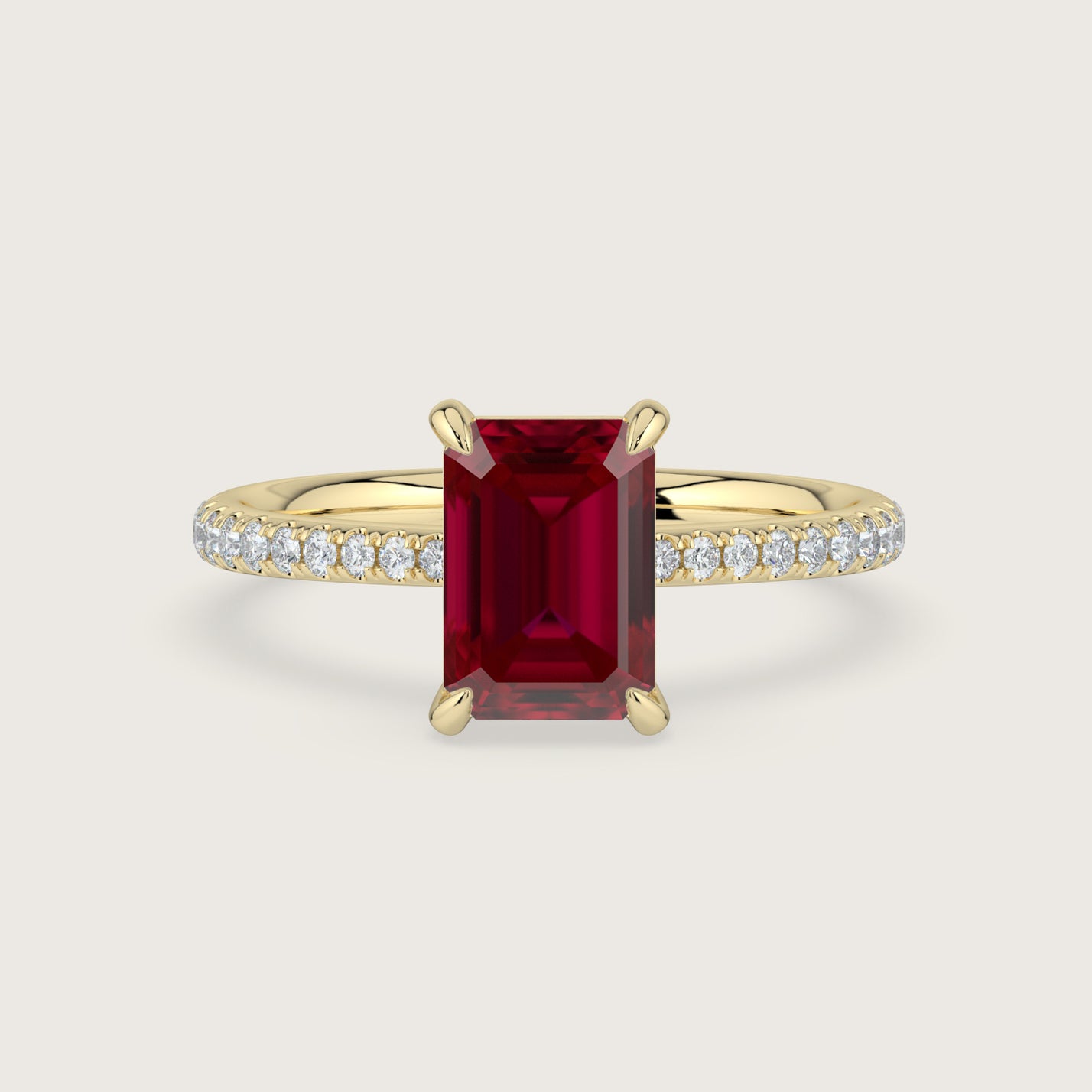 Helena, Emerald Cut Ruby Pavé Ring