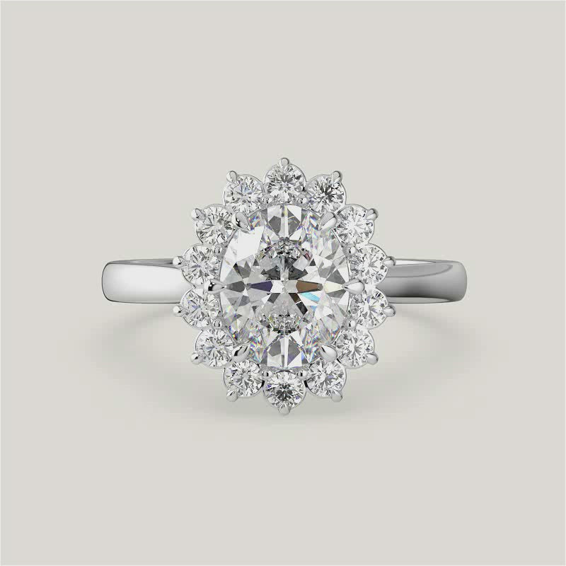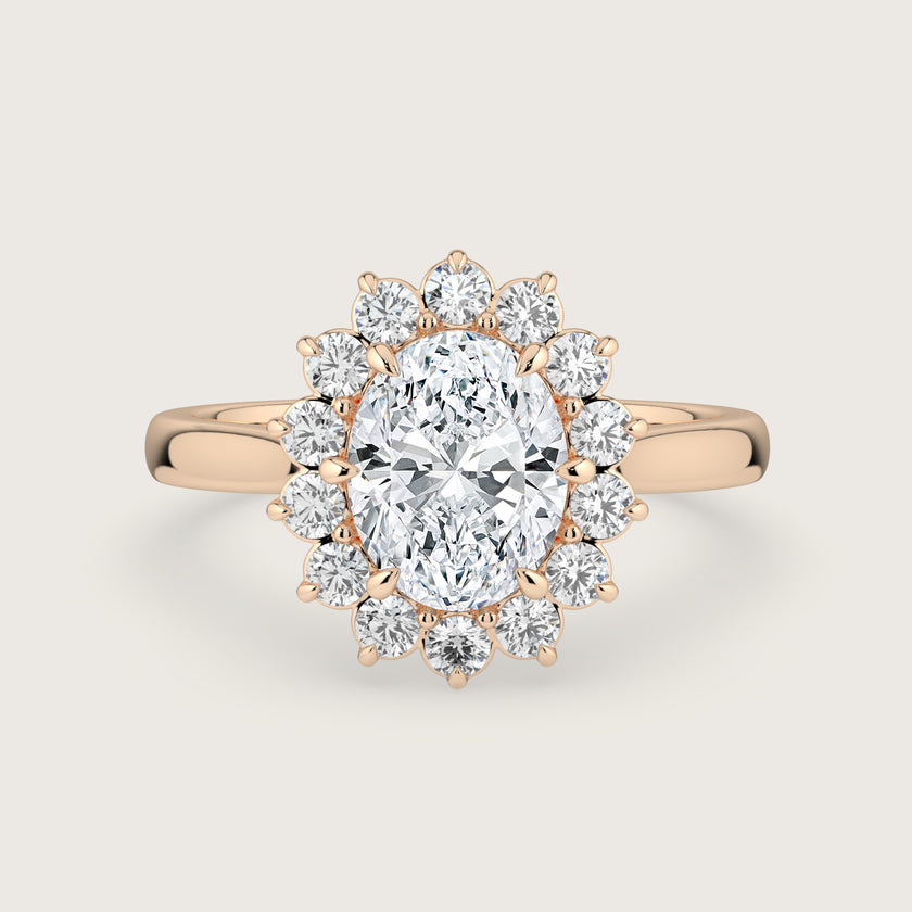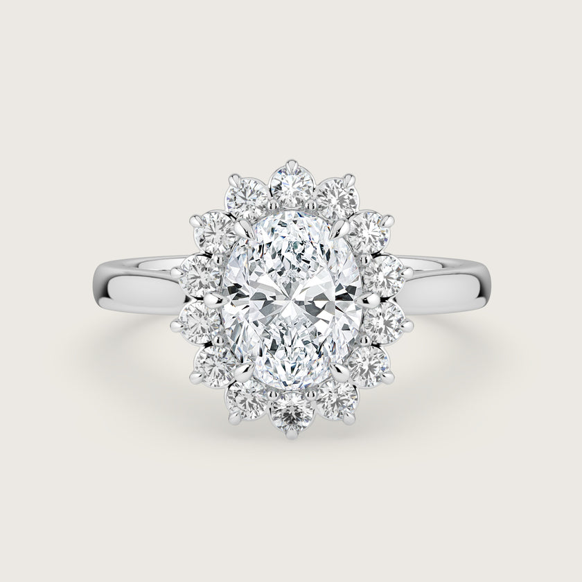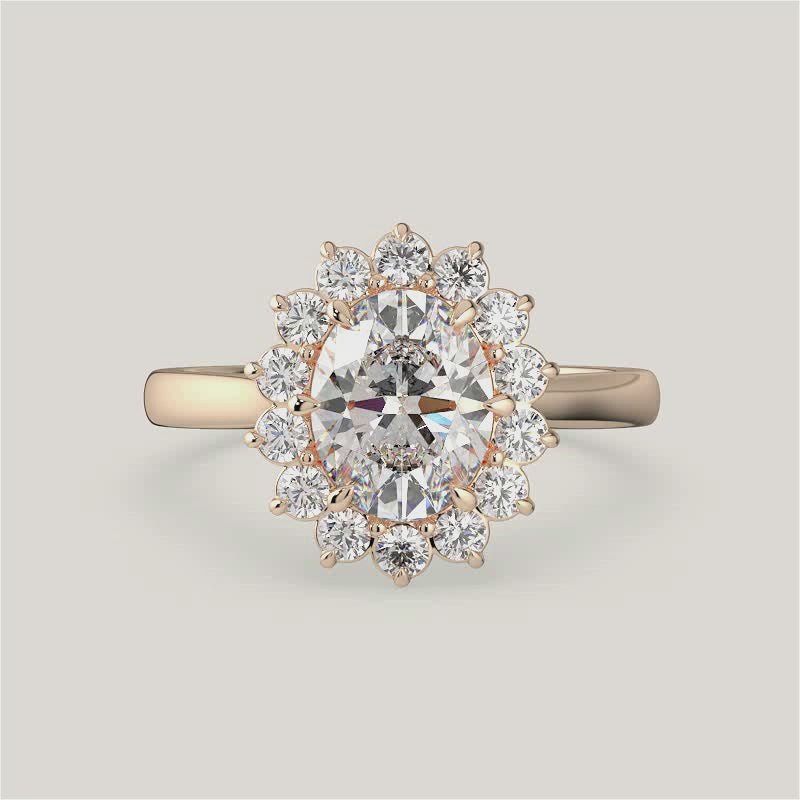 Lavinia, Vintage Oval Cut Diamond Halo Ring