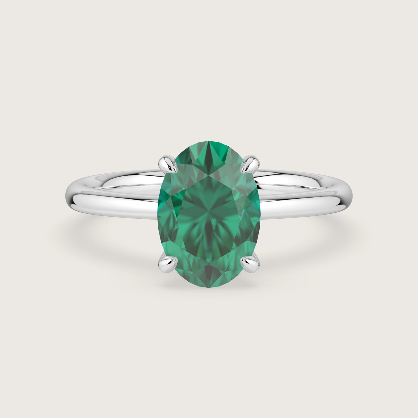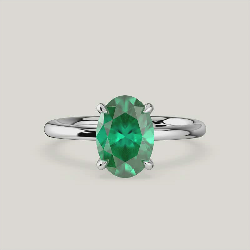 Lena, Oval Cut Emerald Solitaire Ring