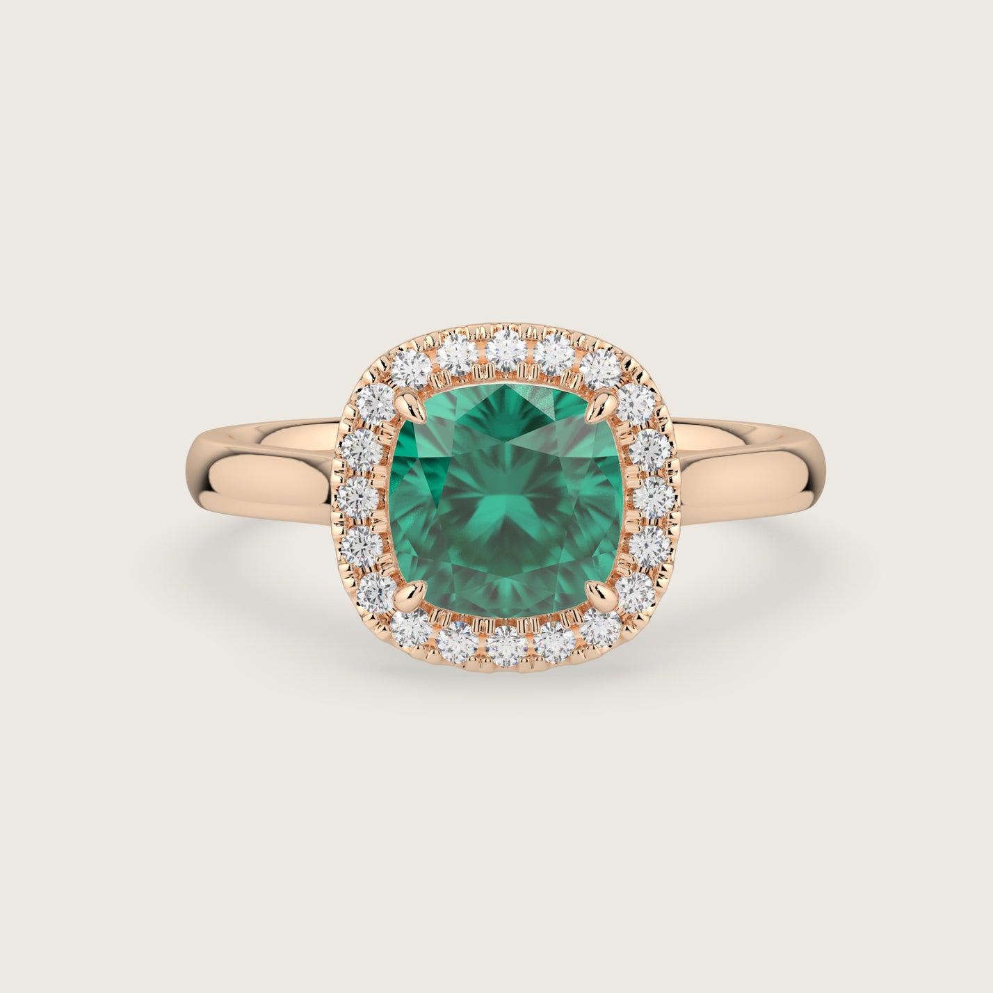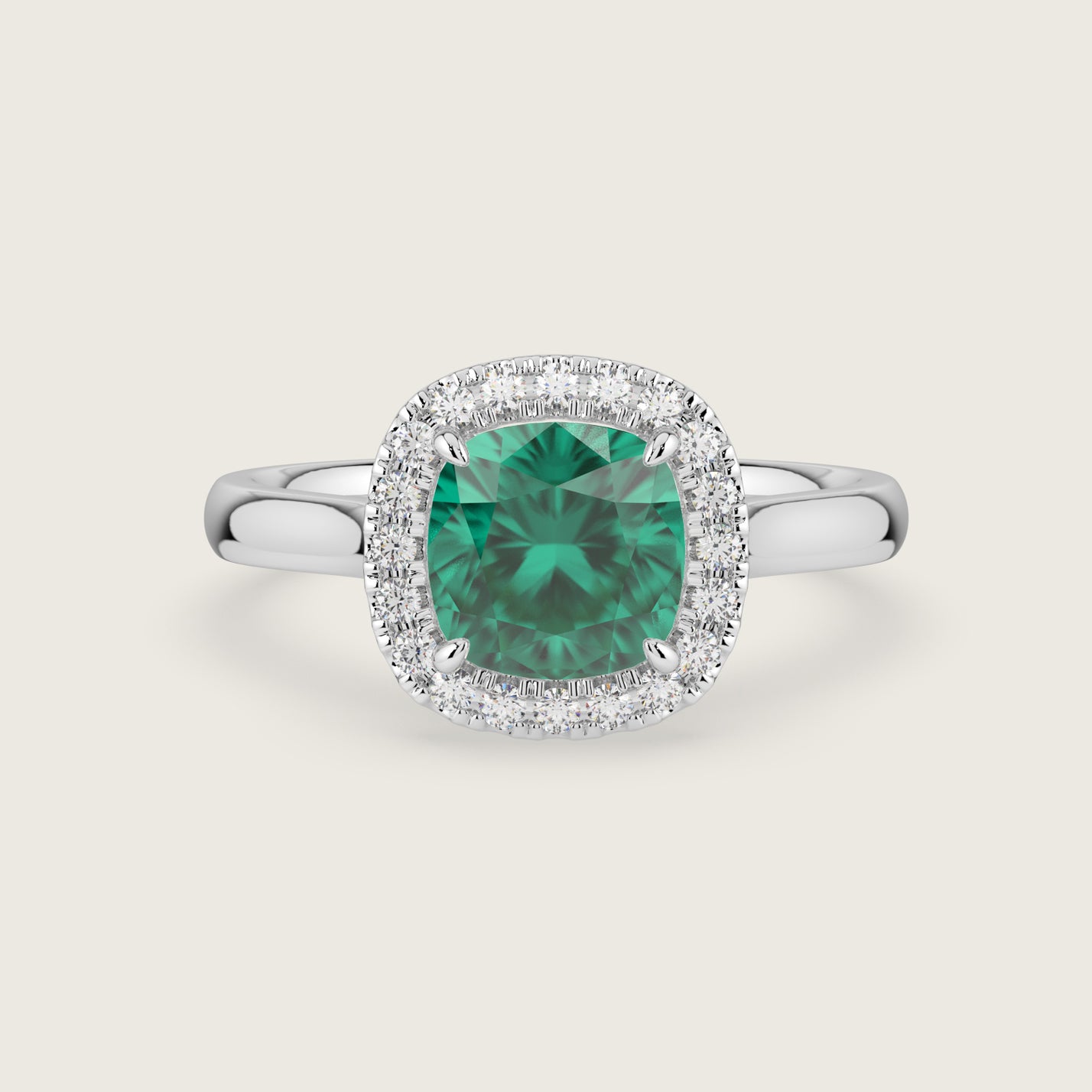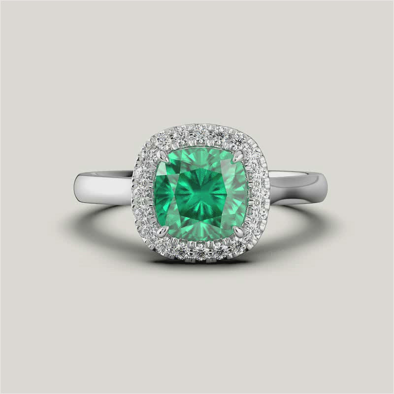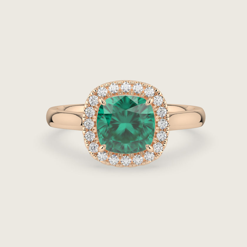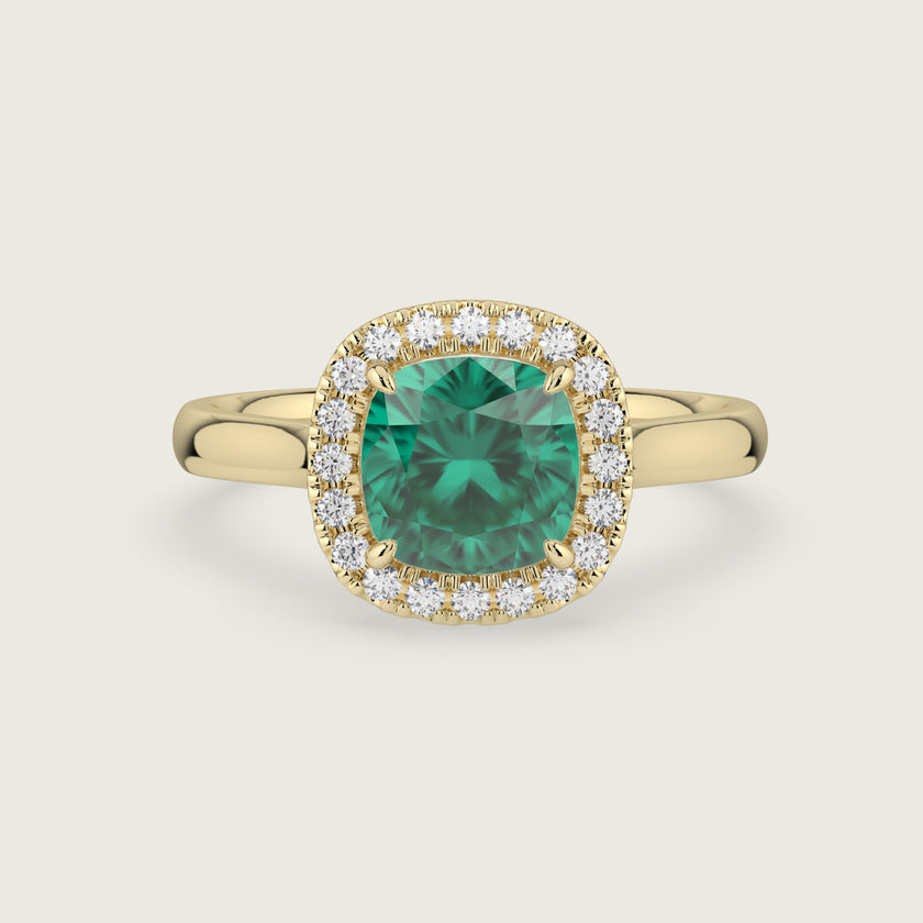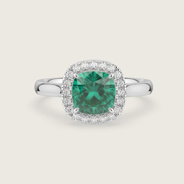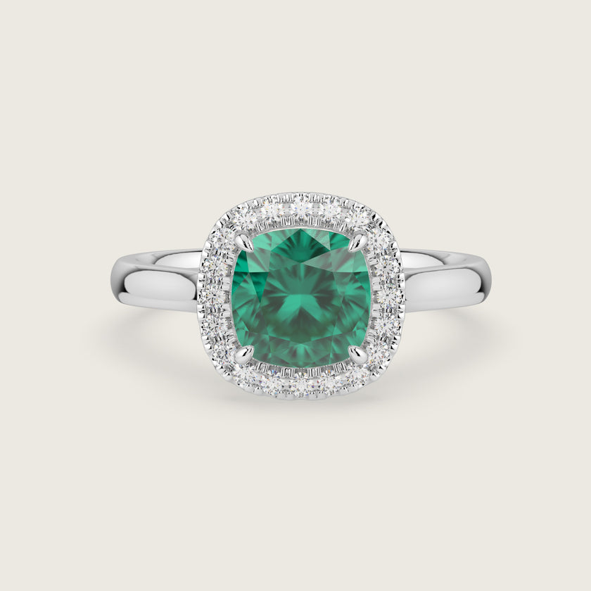 Luna, Cushion Cut Emerald Halo Ring