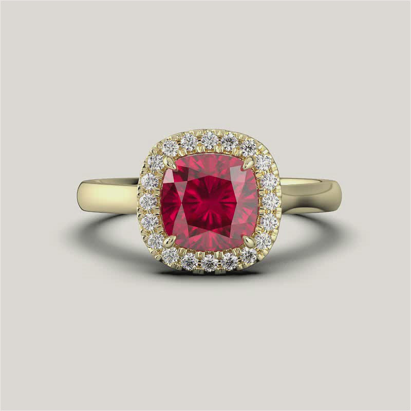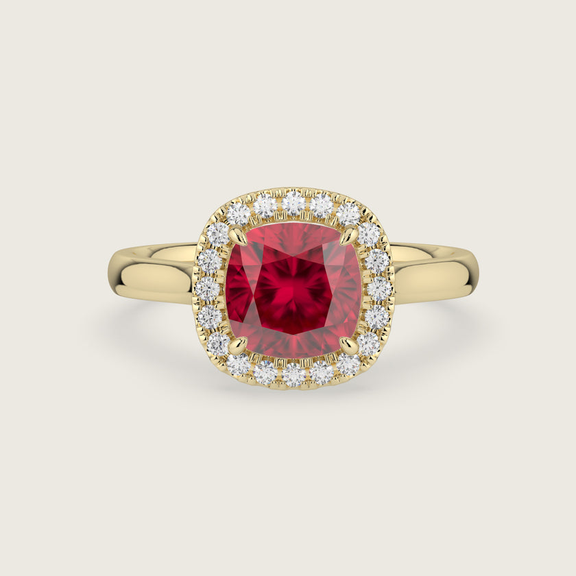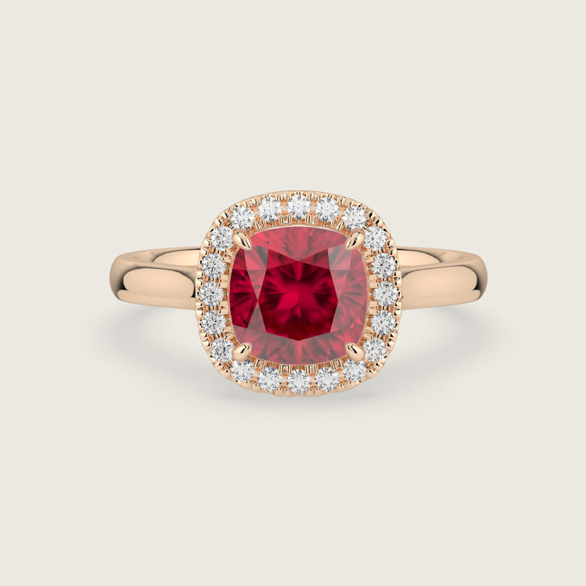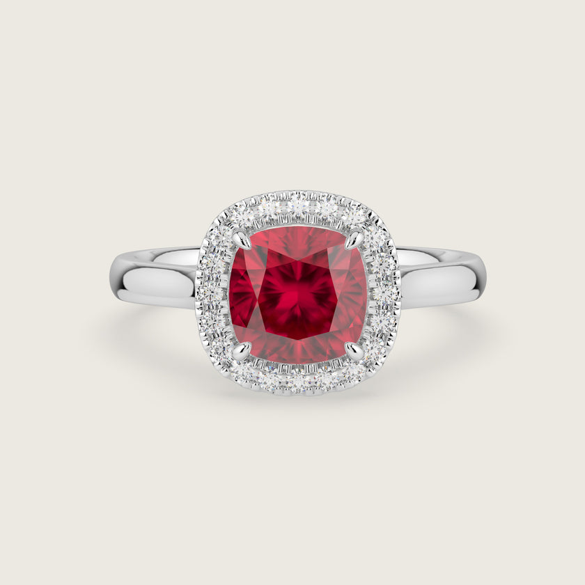 Luna, Cushion Cut Ruby Halo Ring