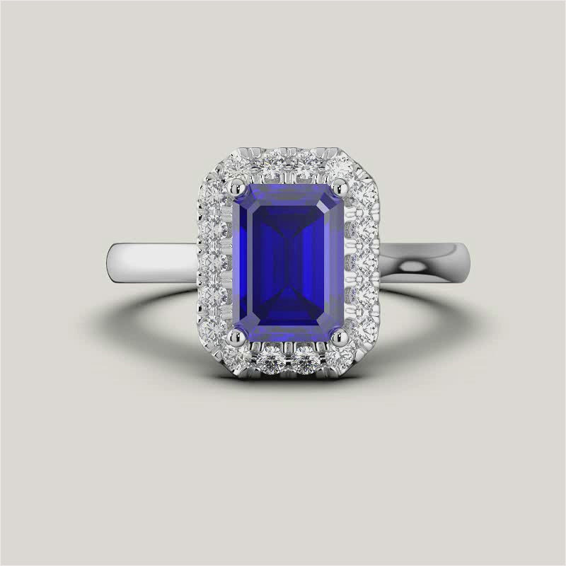 Luna, Emerald Cut Sapphire Halo Ring