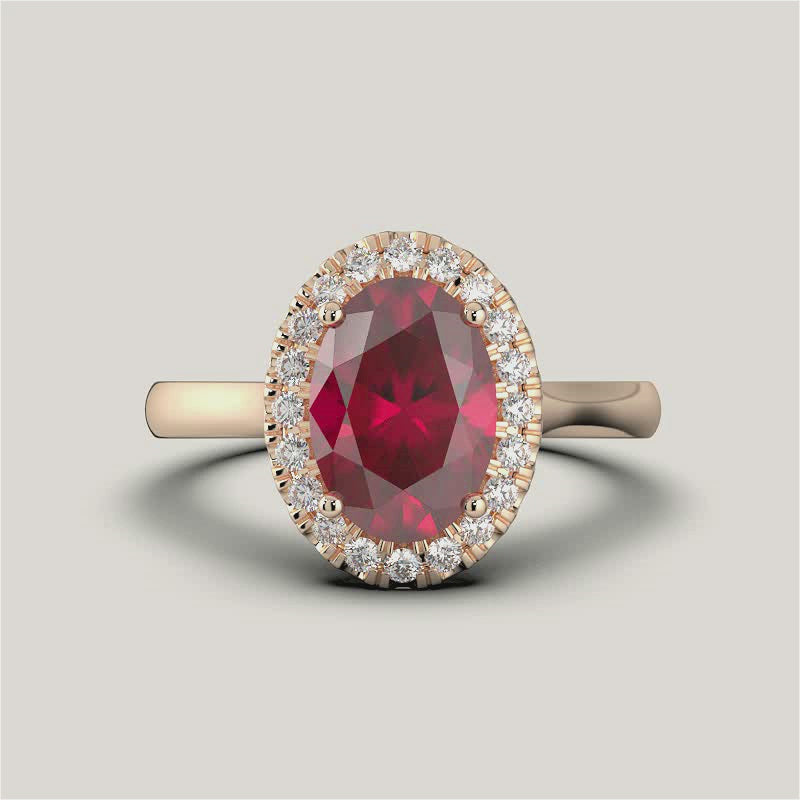Luna, Oval Cut Ruby Halo Ring