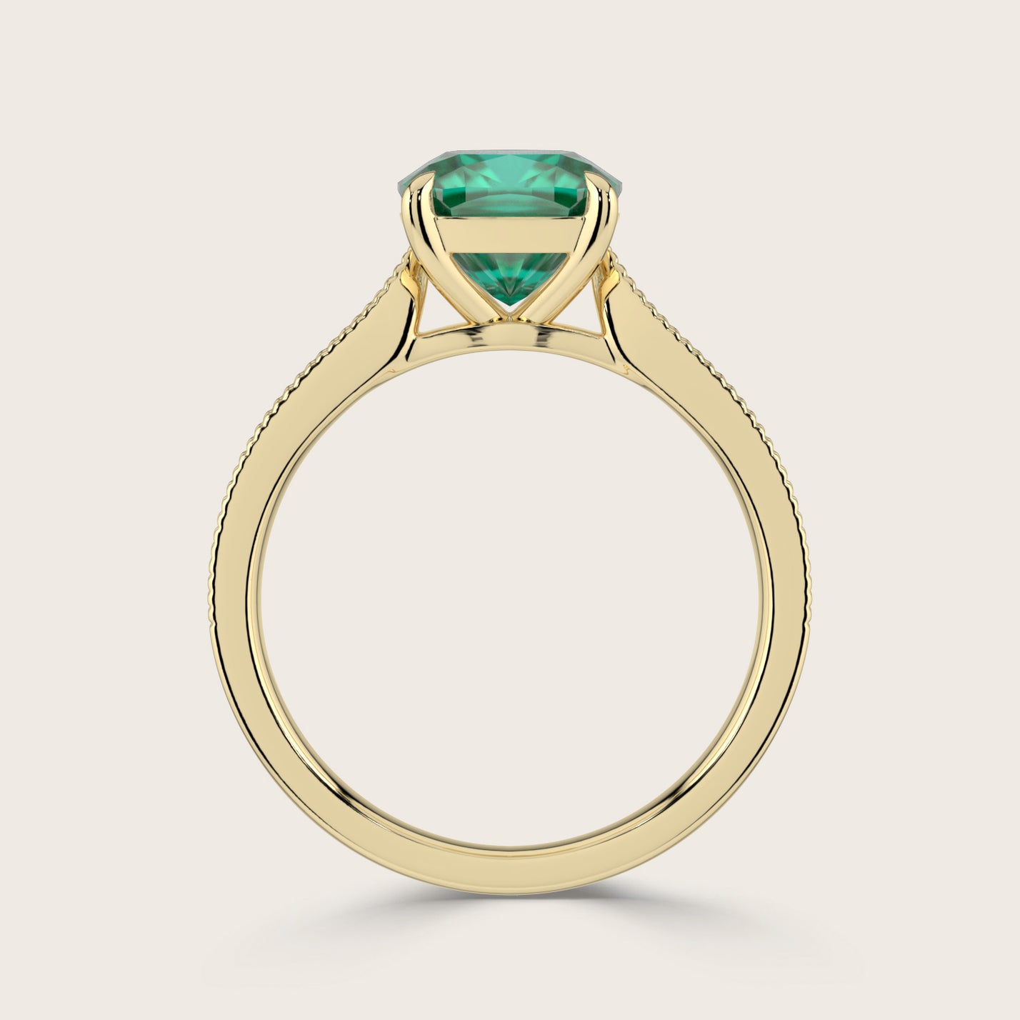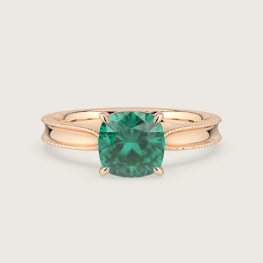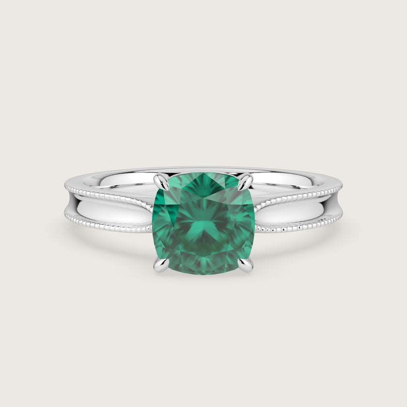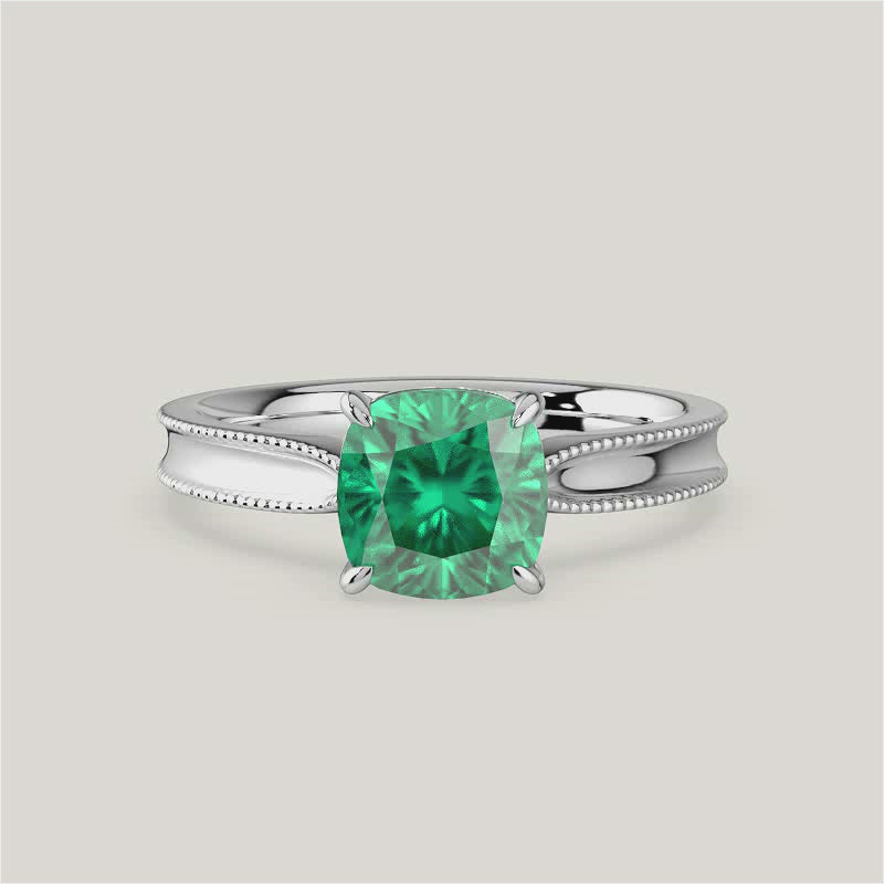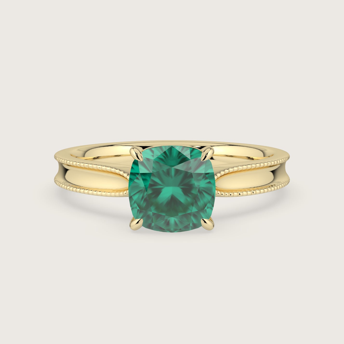 Millie, Vintage Milgrain Cushion Cut Emerald Solitaire Ring
