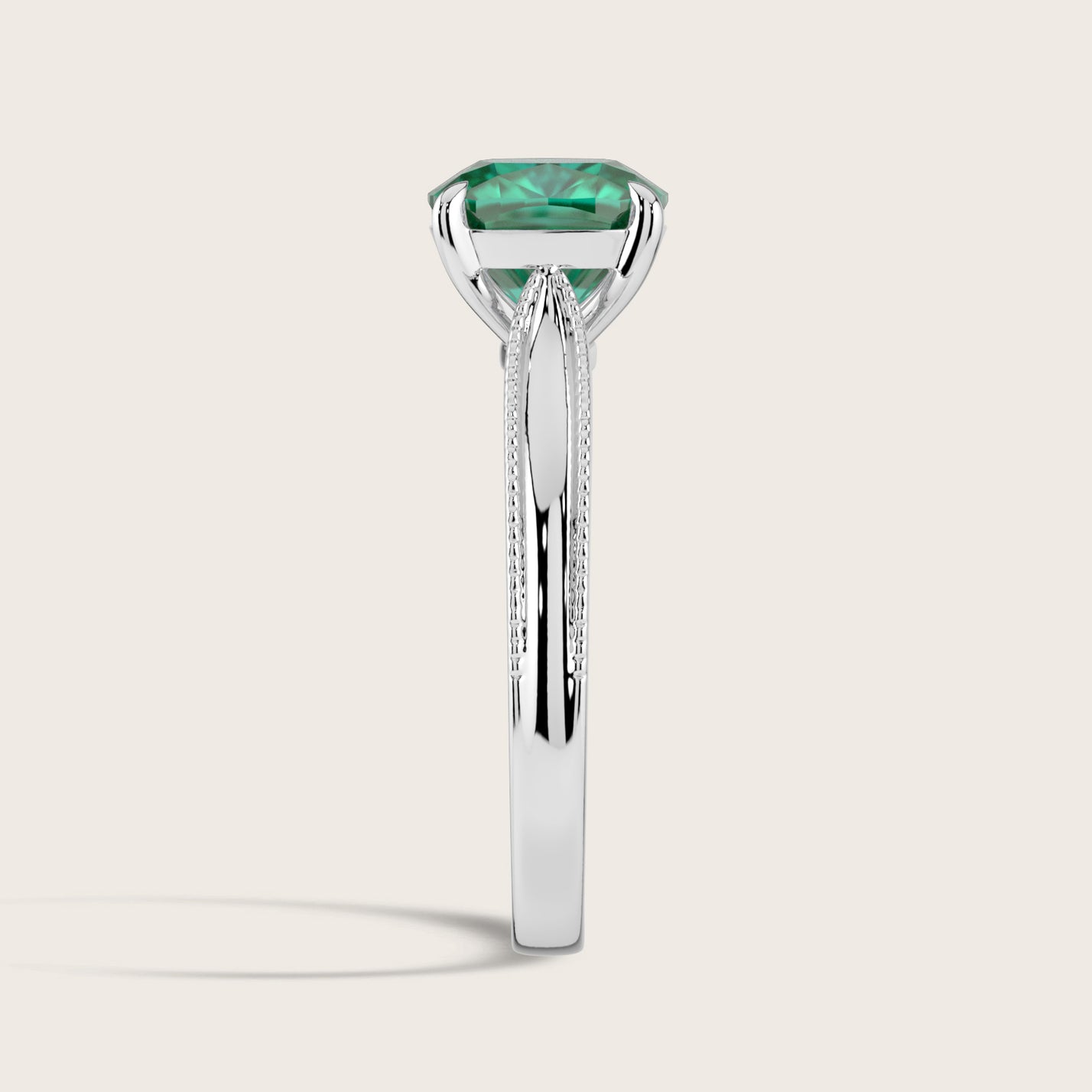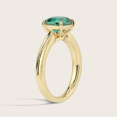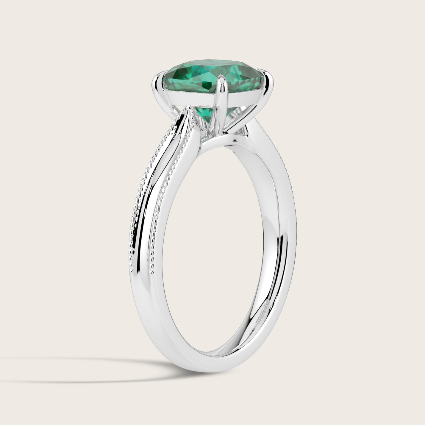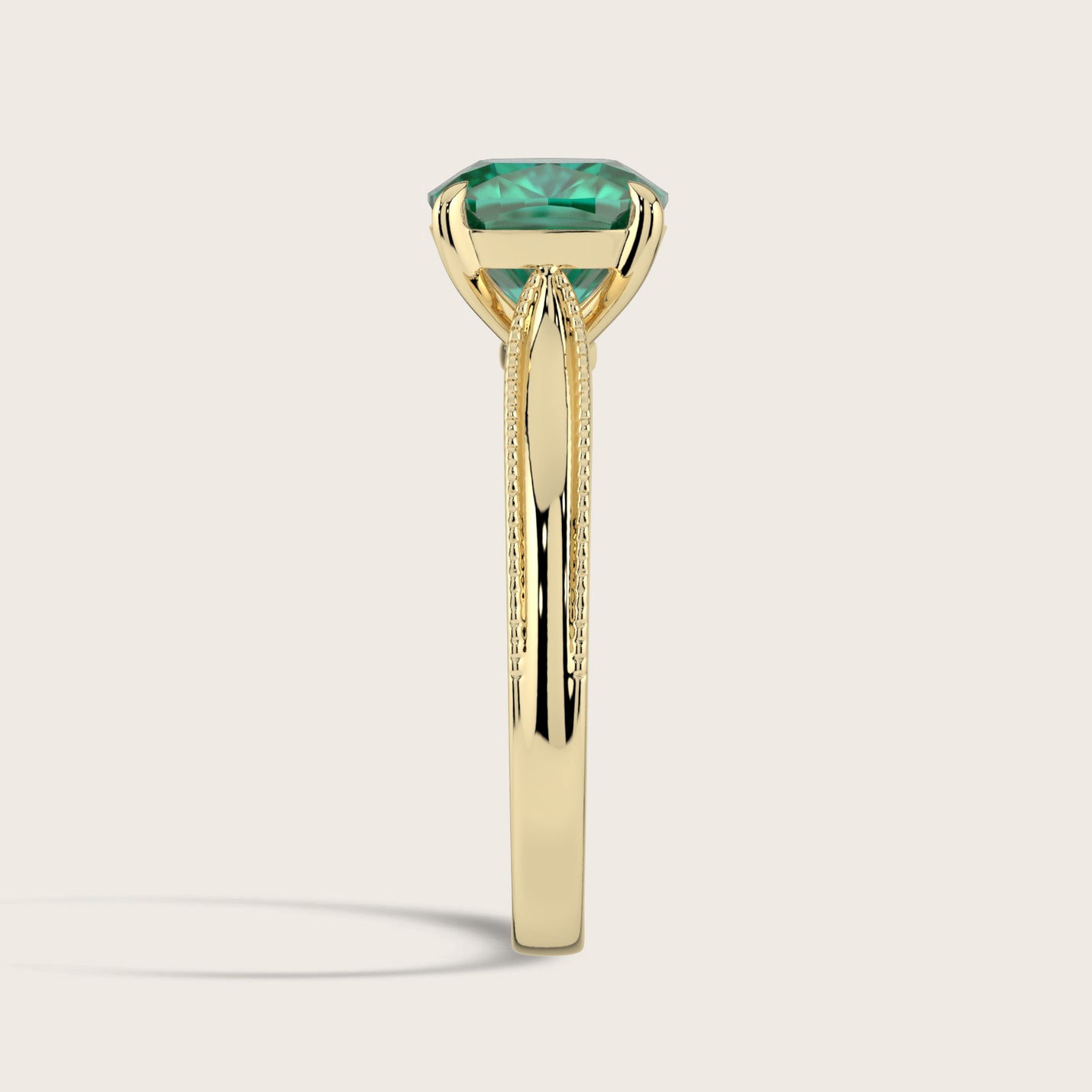 Millie, Vintage Milgrain Cushion Cut Emerald Solitaire Ring