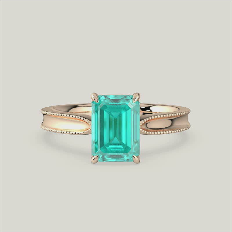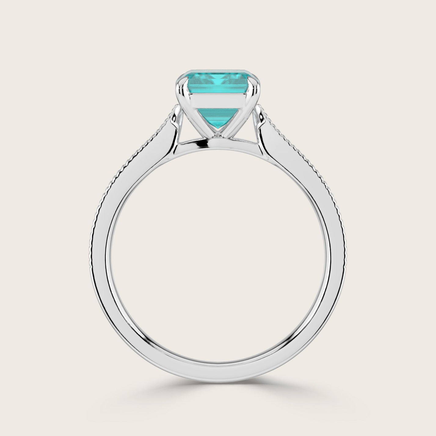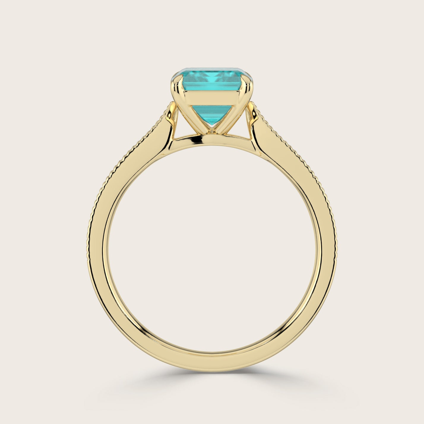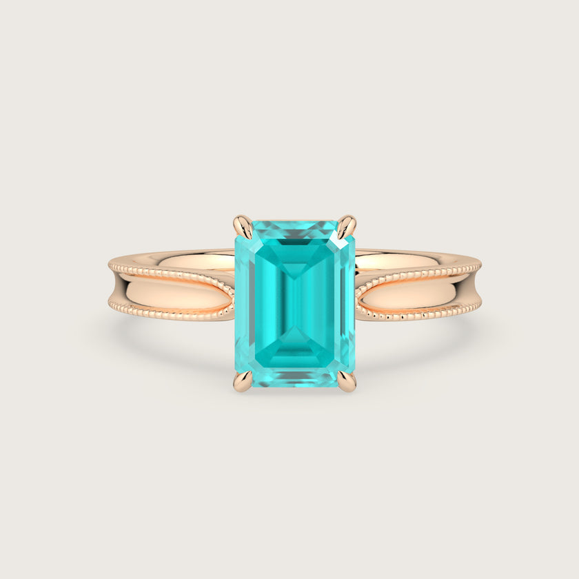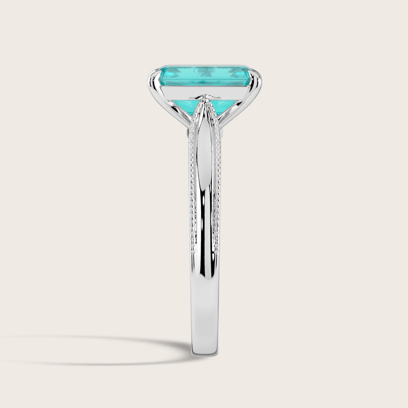 Millie, Vintage Milgrain Emerald Cut Paraiba Solitaire Ring