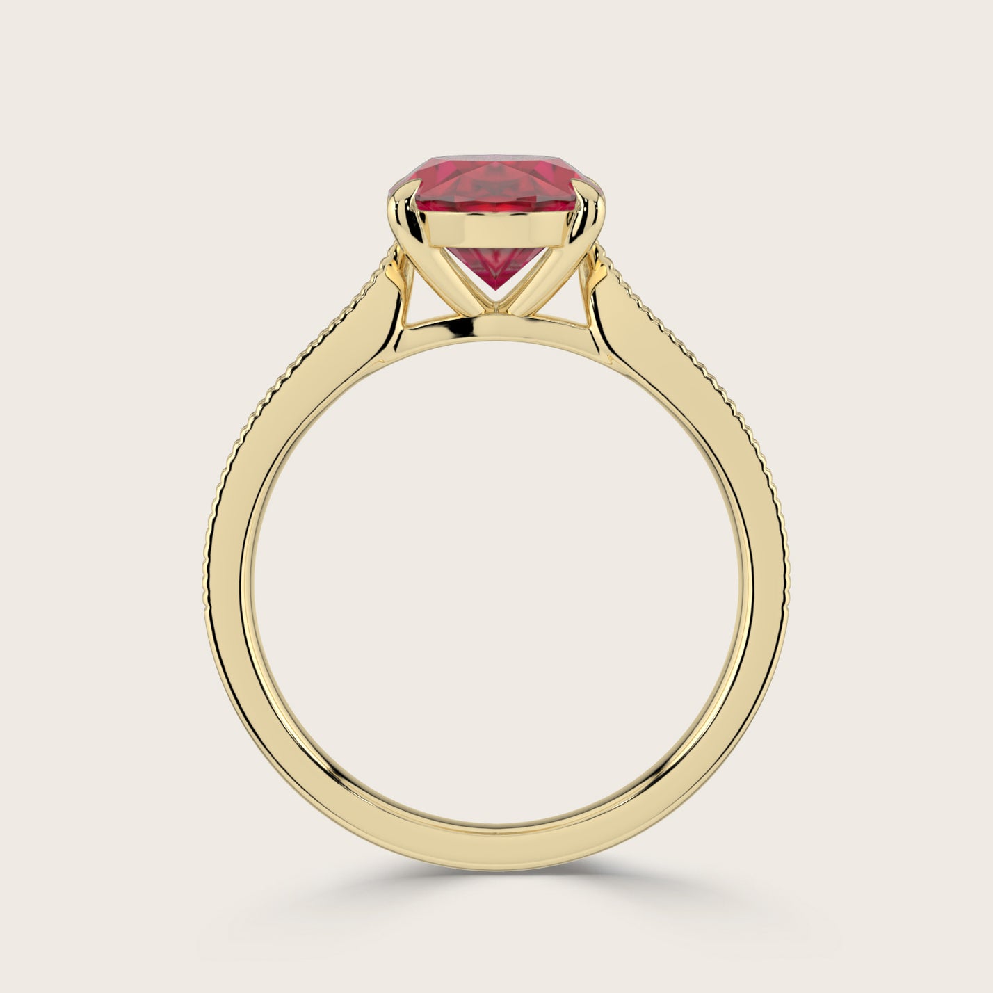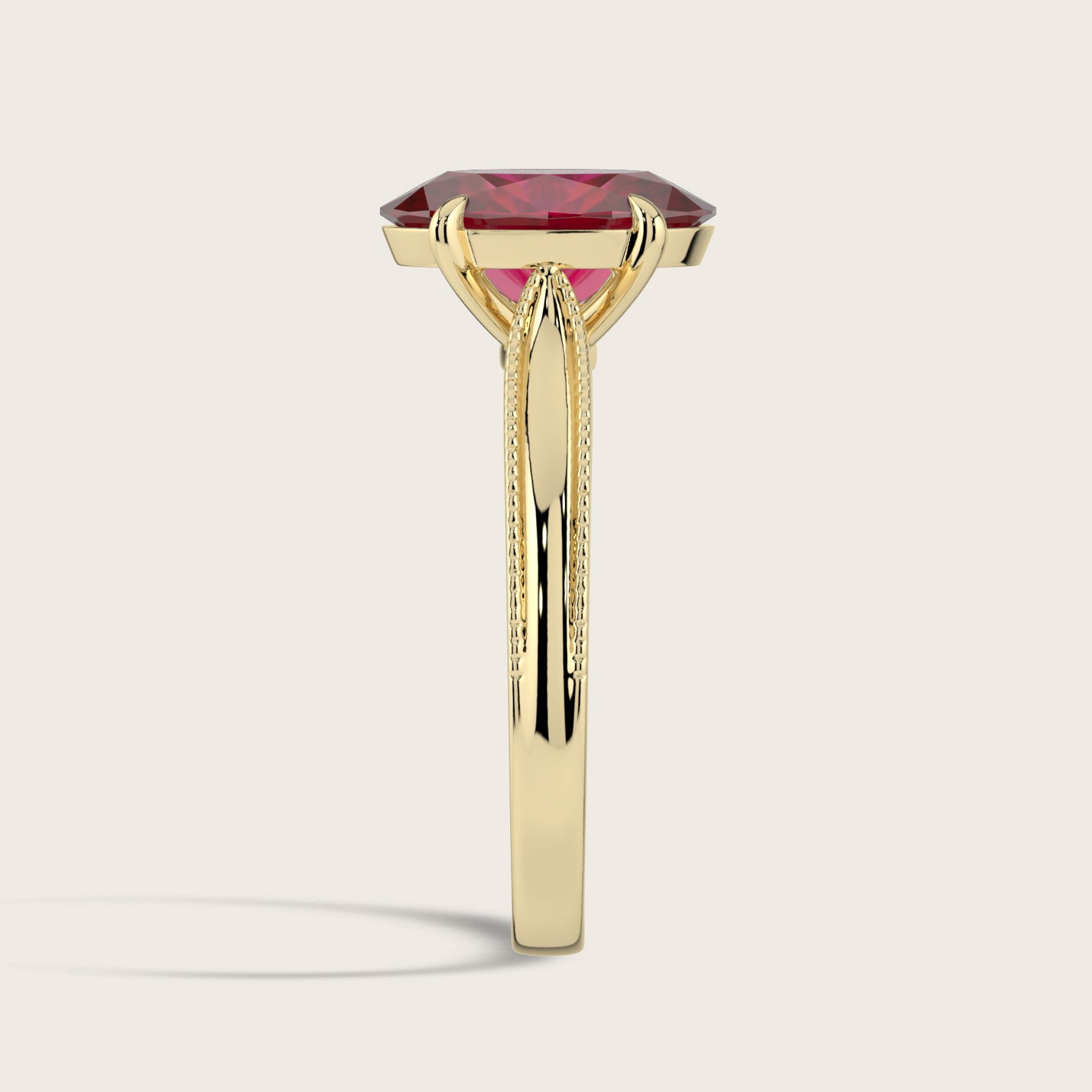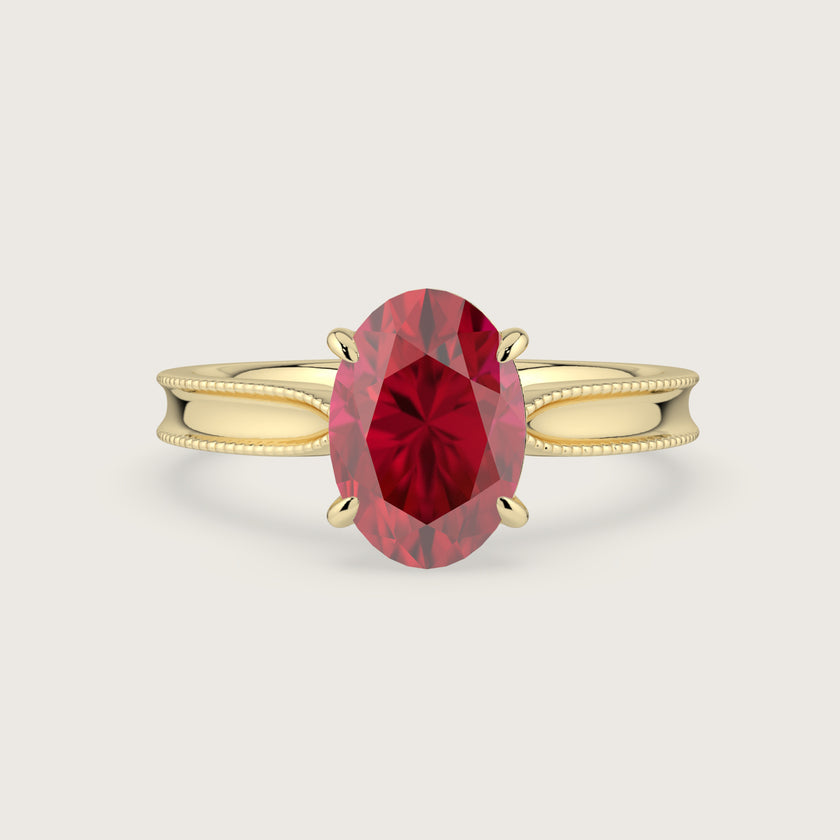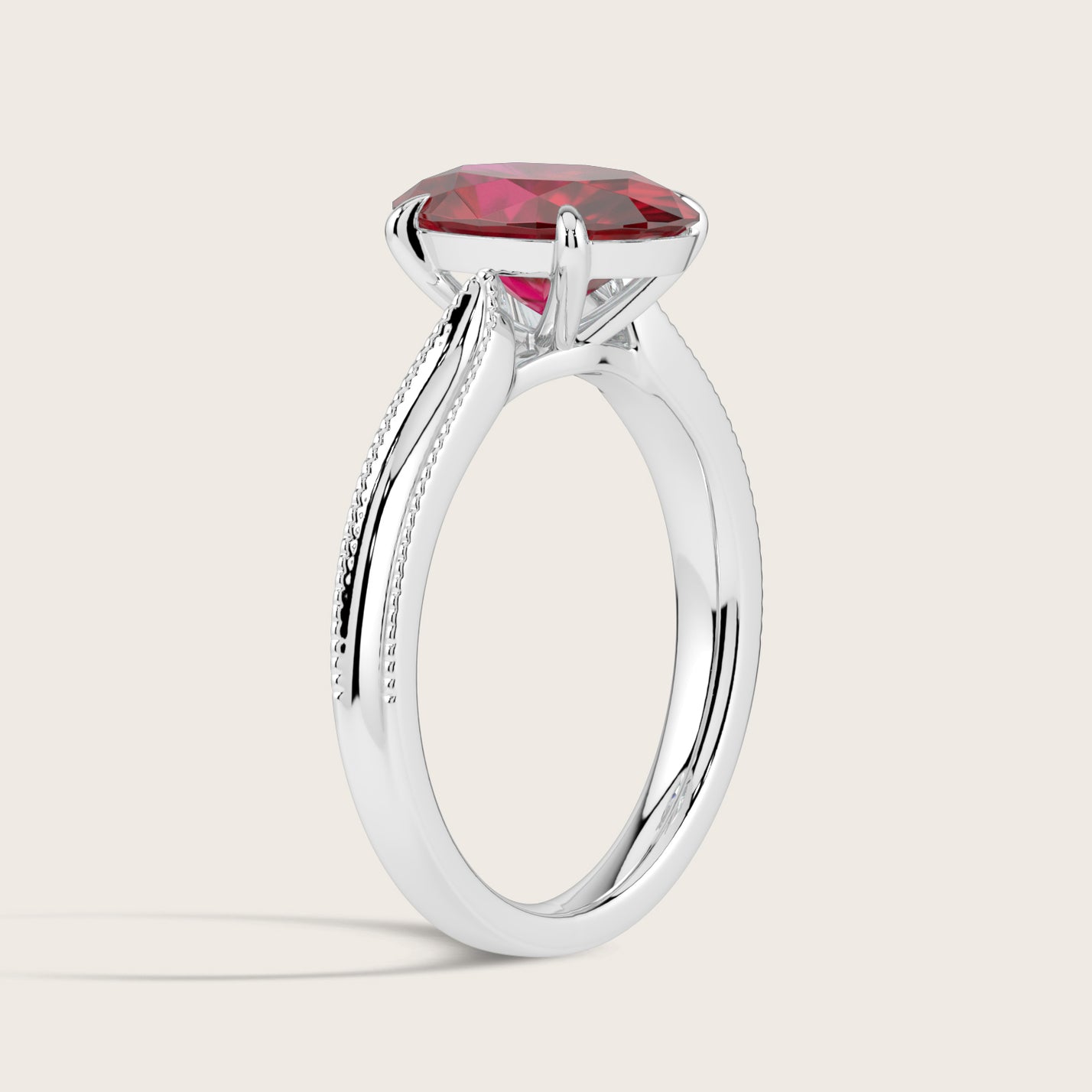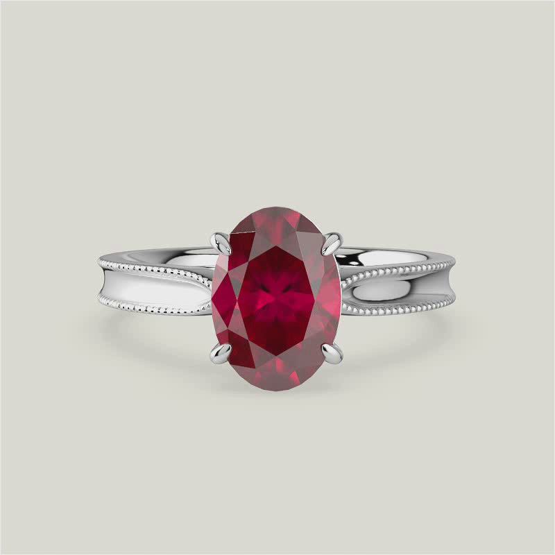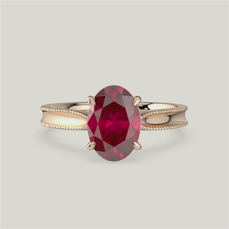 Millie, Vintage Milgrain Oval Cut Ruby Solitaire Ring