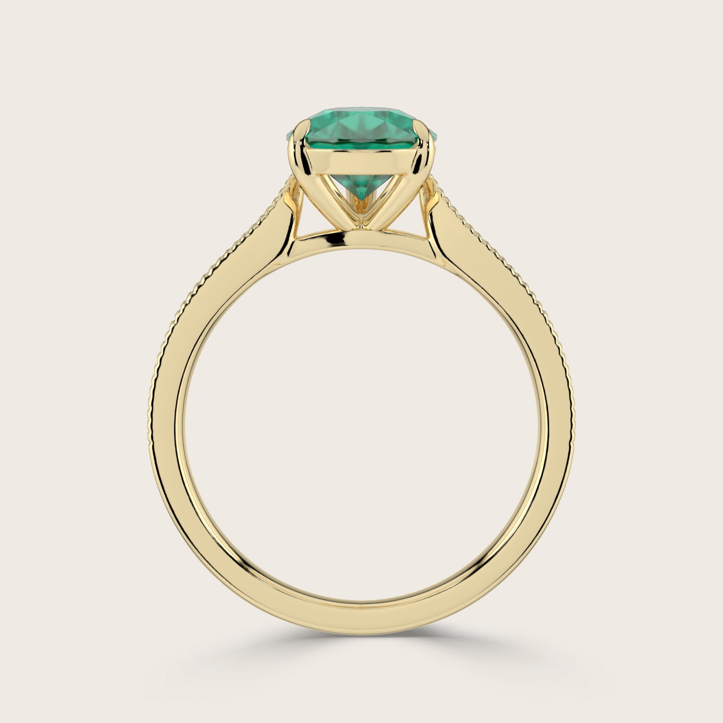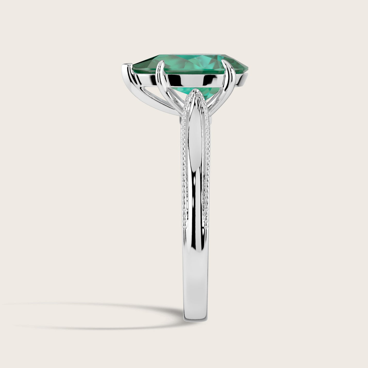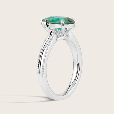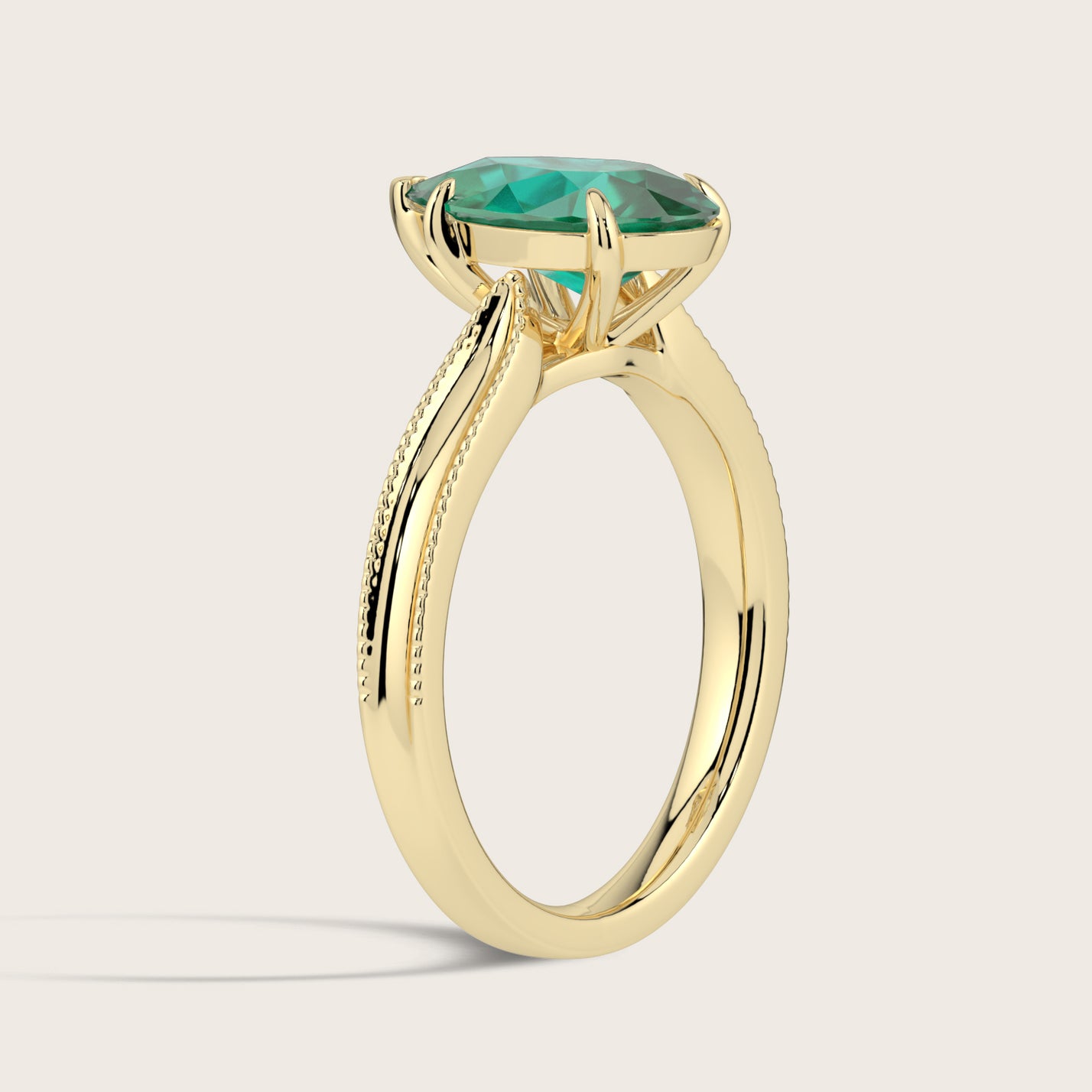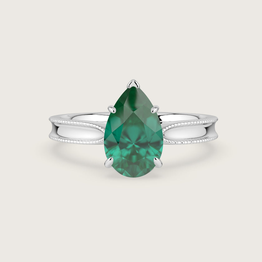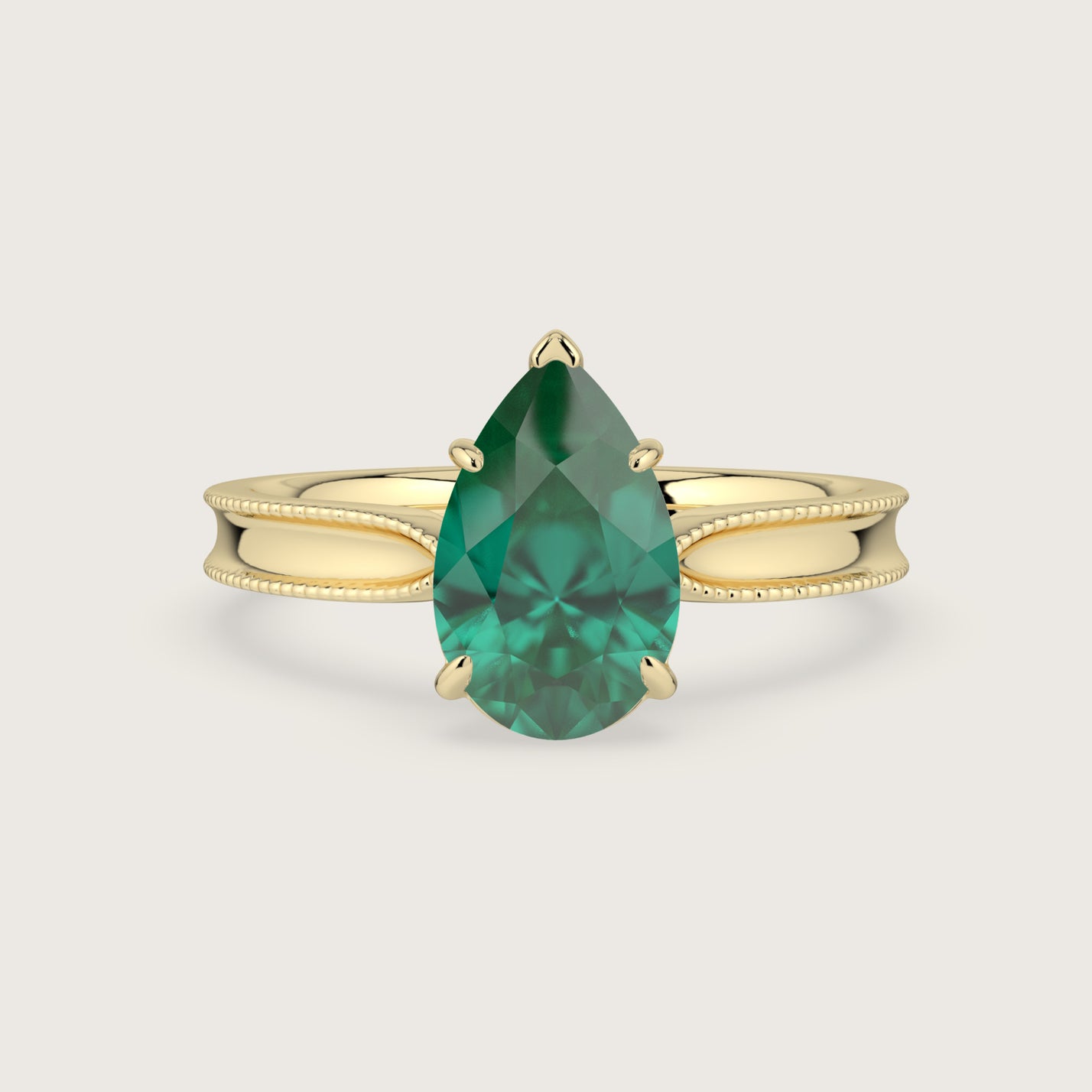 Millie, Vintage Milgrain Pear Cut Emerald Solitaire Ring