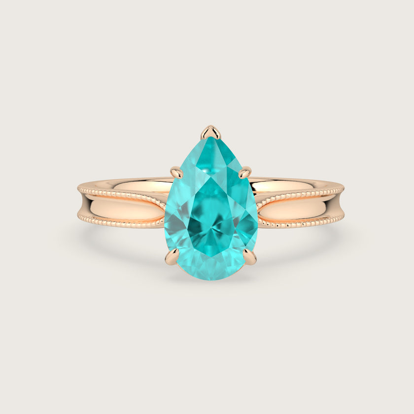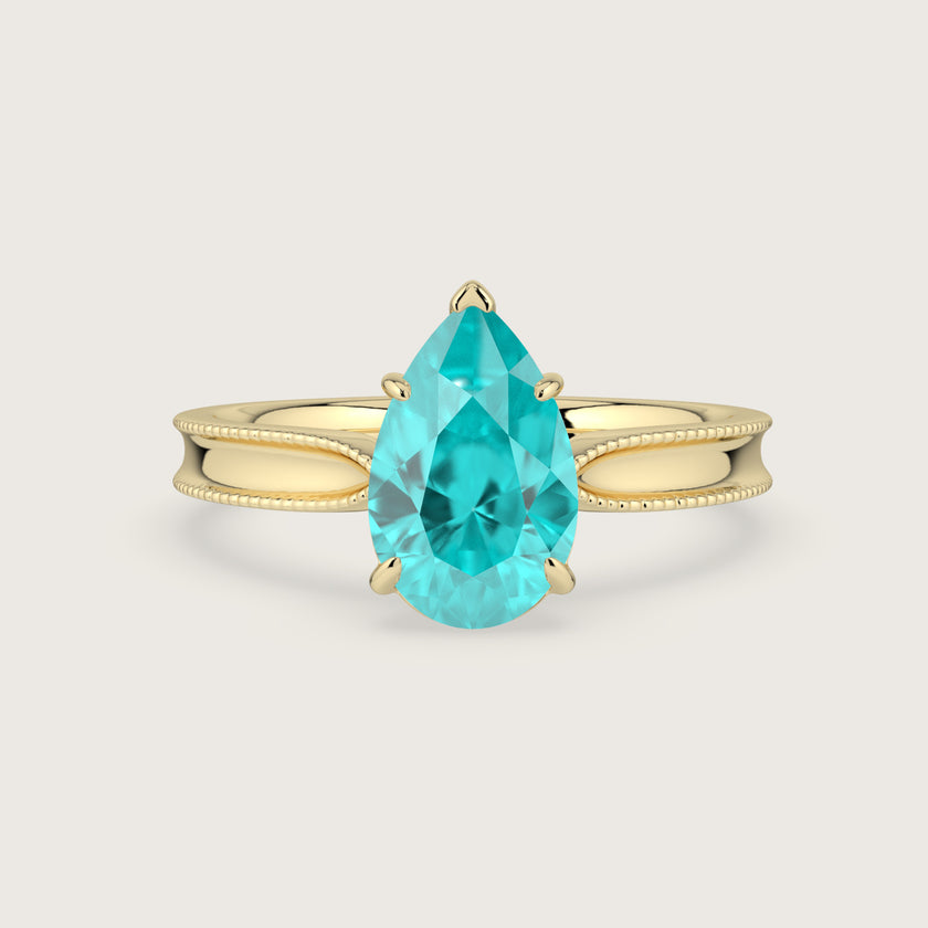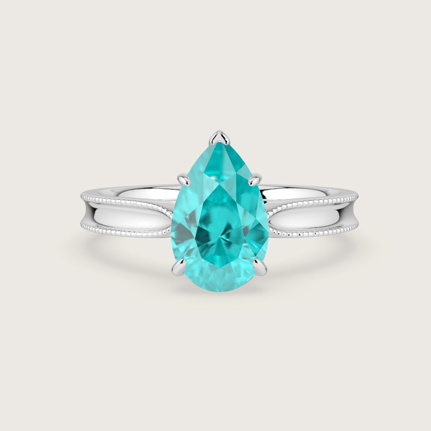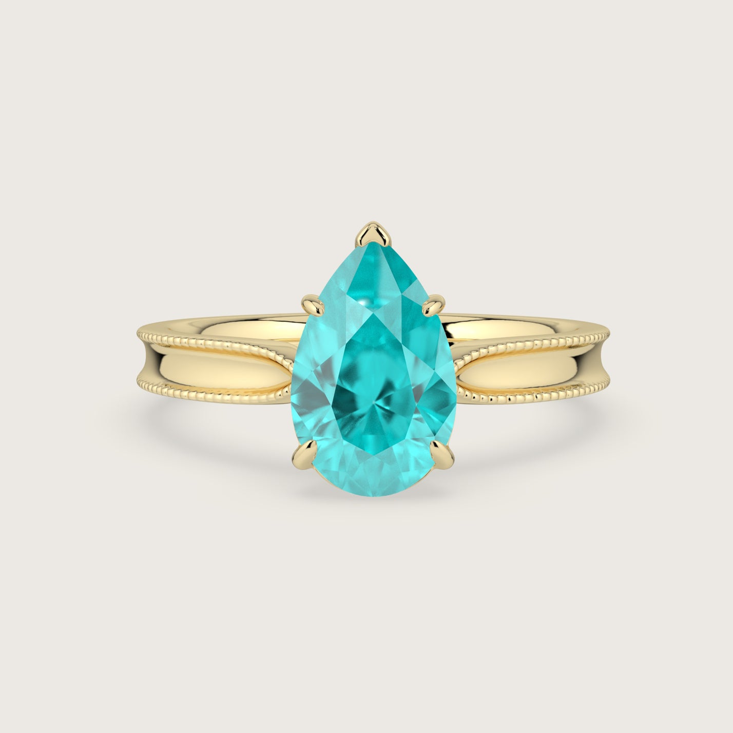 Millie, Vintage Milgrain Pear Cut Paraiba Solitaire Ring