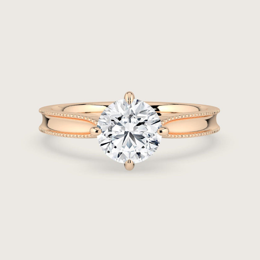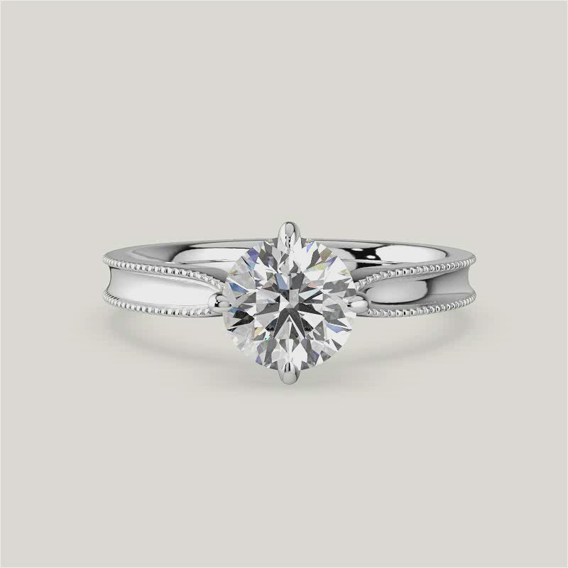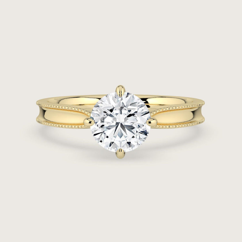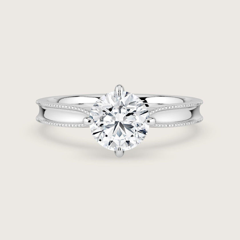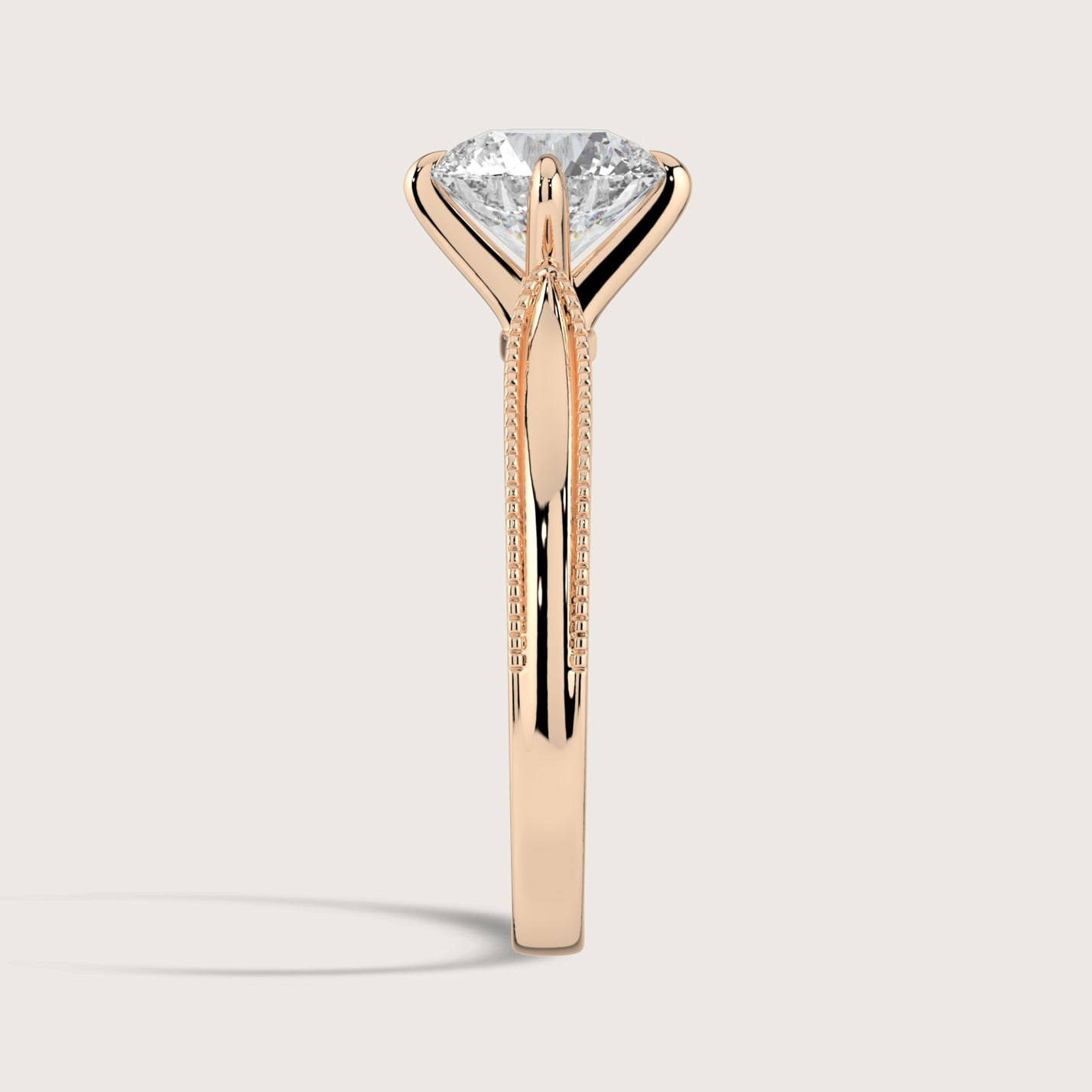Millie, Vintage Milgrain Round Brilliant Diamond Solitaire Ring